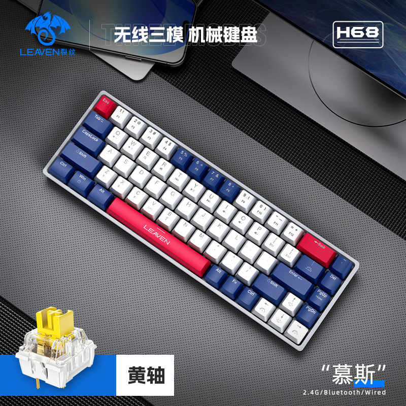 • H68 안개 블루 옐로우 샤프트 업그레이드 (BT5.0 무선 2.4G 유선 유형-c 트리플 모드)