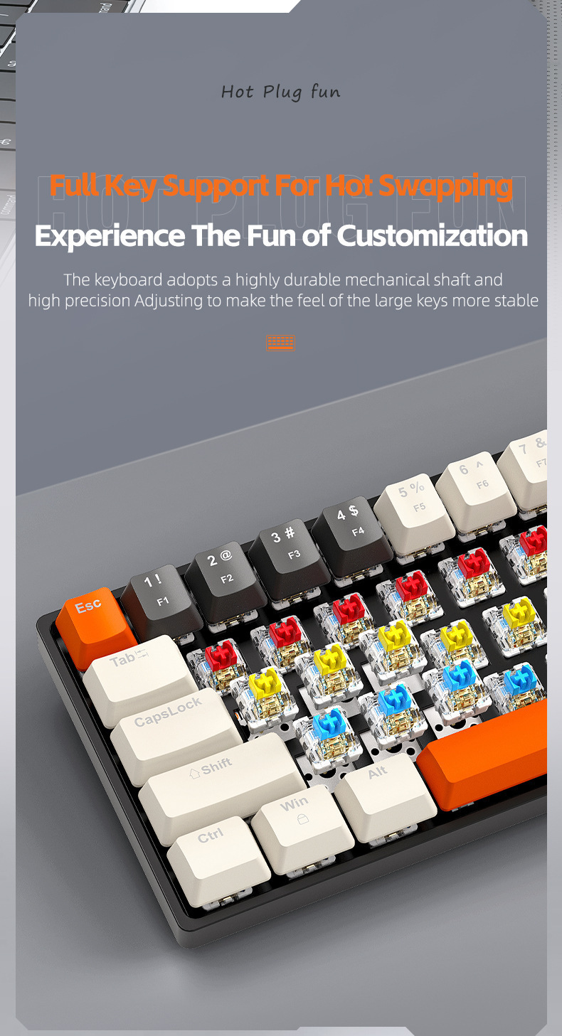 • H68 화이트 그레이 오렌지 옐로우 샤프트 업그레이드 (BT5.0 무선 2.4G 유선 유형-c 트리플 모드)