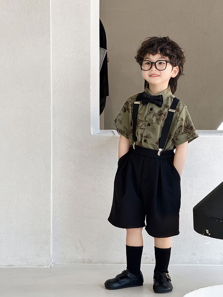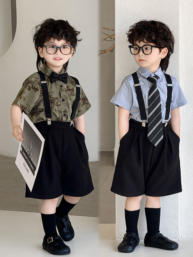 아동복 2025 여름 신작 반팔 셔츠 투피스 세트 소년의 멋진 한국 스타일 공연 의상 꽃 소녀 드레스