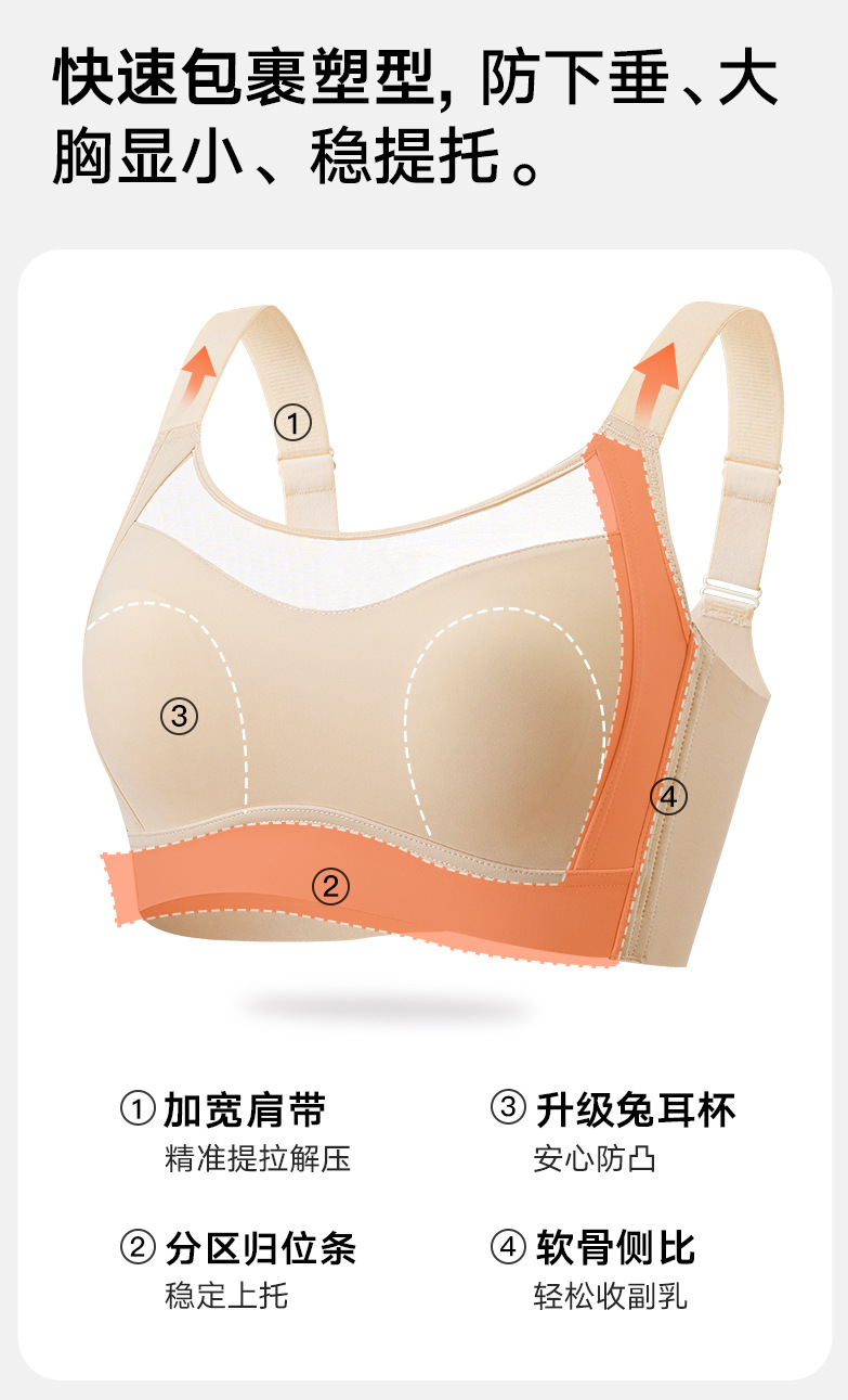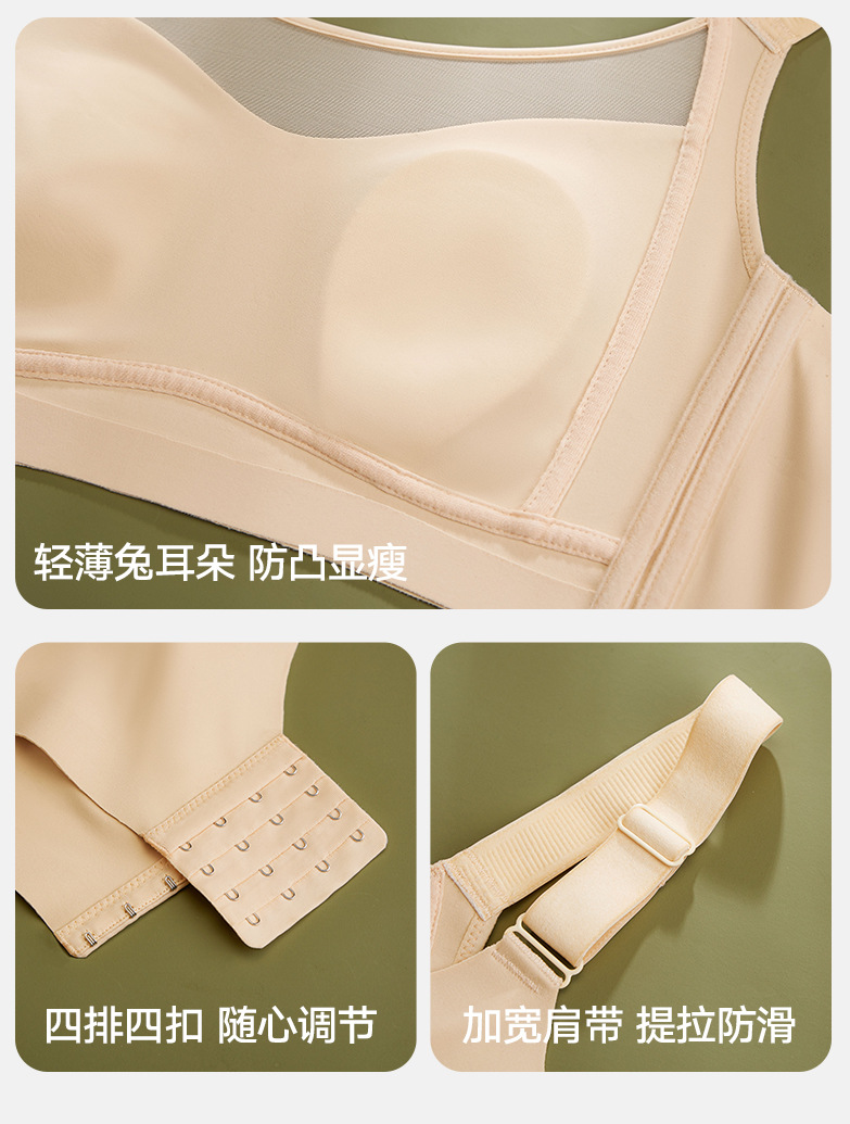 토끼 귀 끈이없는 속옷 여성의 큰 가슴 쇼이 작은 추적없는 유방 폐쇄 방지 처짐 조정 가능한 얇은 브래지어