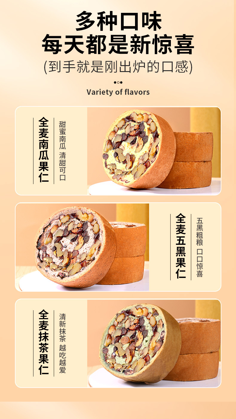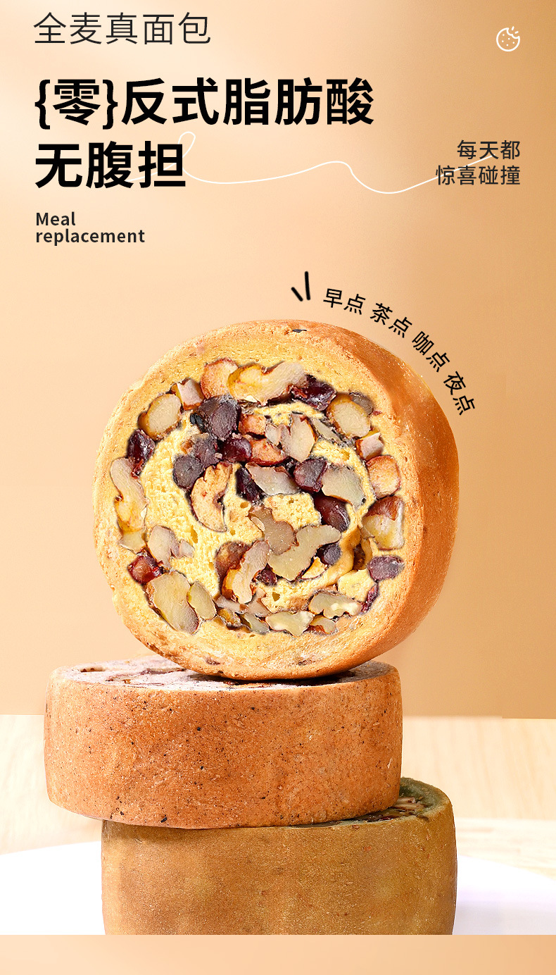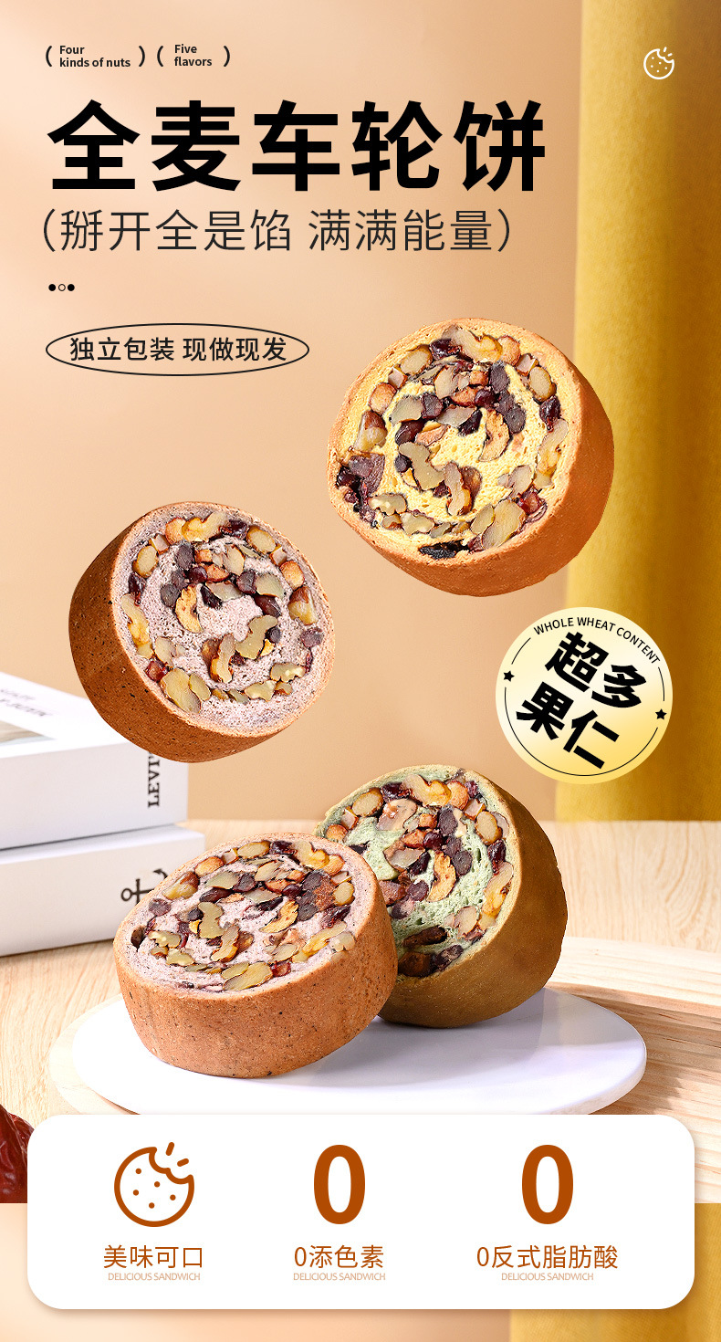 통밀 빵 너트 휠 너트 데어 바 거친 아침 식사 빵 Opak 간식 토스트 설탕 없음