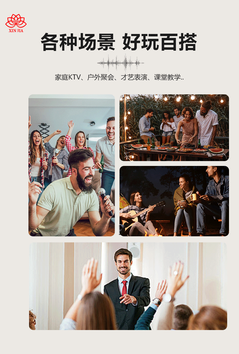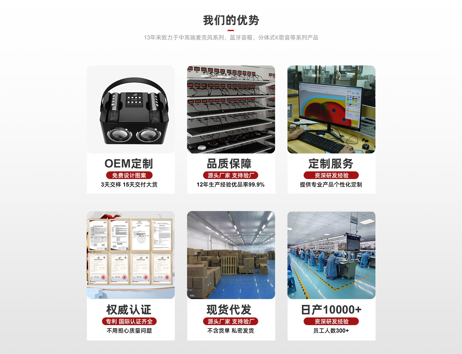 12) 装箱单:说明书*1,充电线*1,音频线*1,麦克风*2