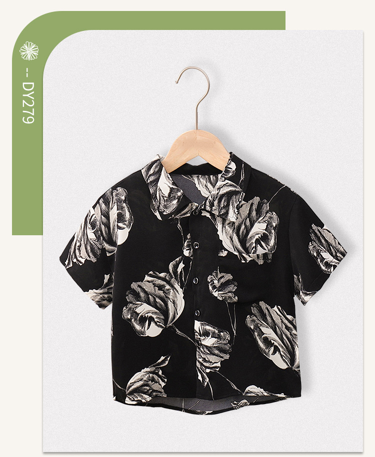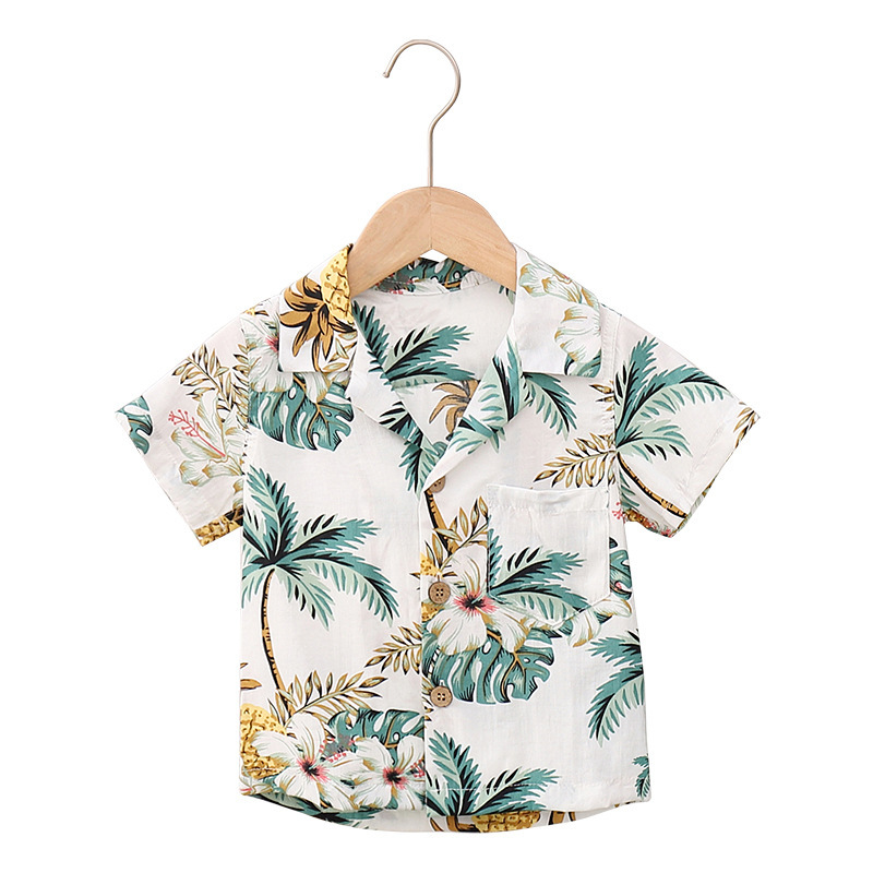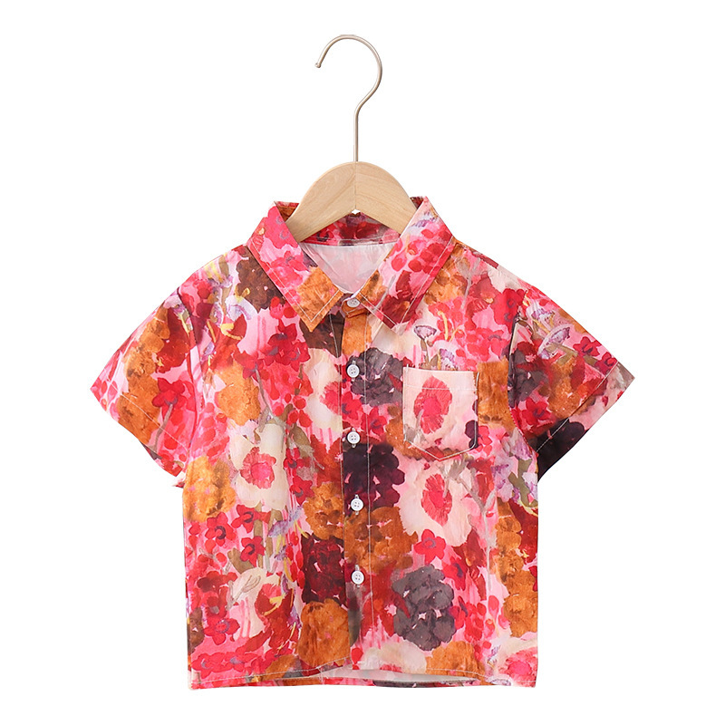 국경 간 대외 무역 어린이 여름 새로운 한국식 홀리데이 스타일 보이즈 비치 반팔 인쇄 캐주얼 꽃 셔츠