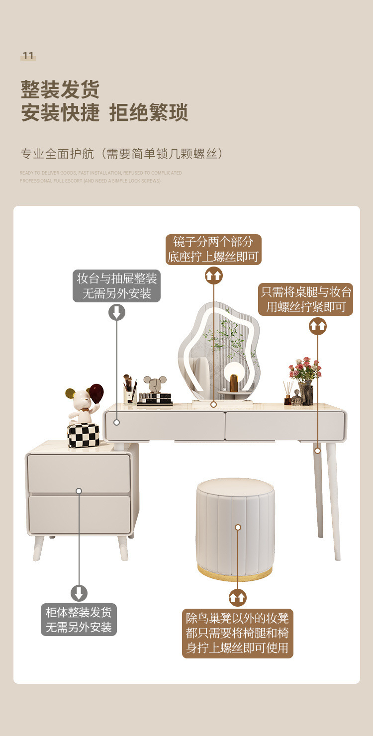 • 120CM 테이블 캐비닛 구름 거울 꽃잎 의자