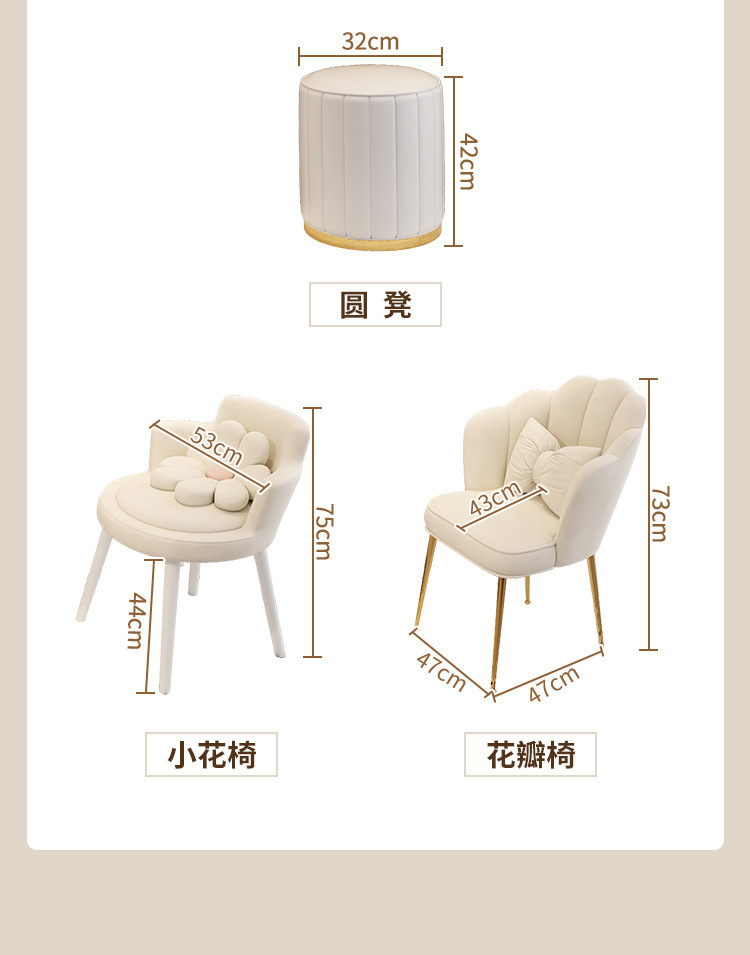 • 80CM 테이블 캐비닛 구름 거울 꽃 꽃잎 의자