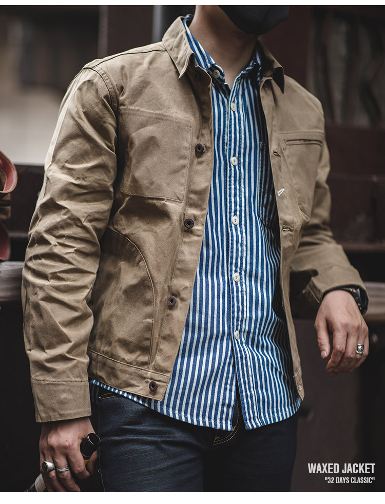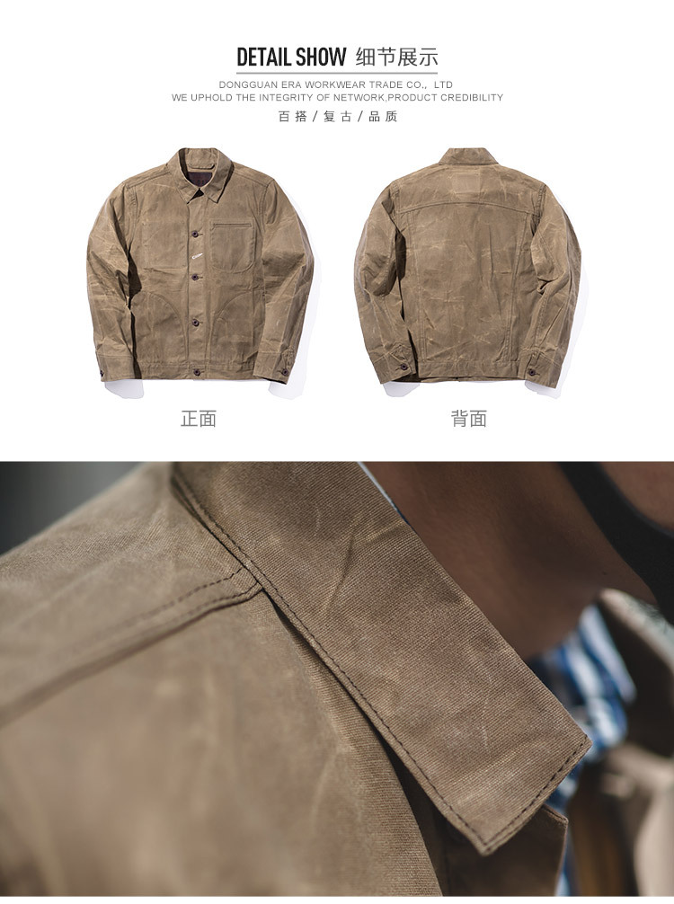 Qing Tian Tooling 미국 무거운 고대 옐로 스톤 카키 캔버스 Ami Kaji 오일 왁스 재킷 하드 재킷 남성복스토어 가기