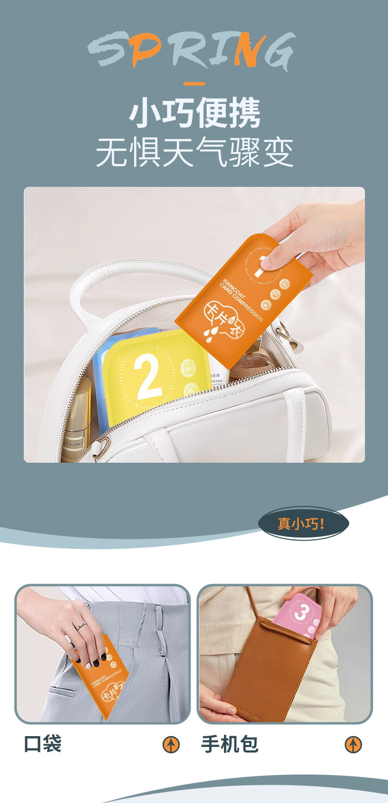 • 성인용 프리사이즈 카드 레인코트(키 150~190cm에 적용 가능)
