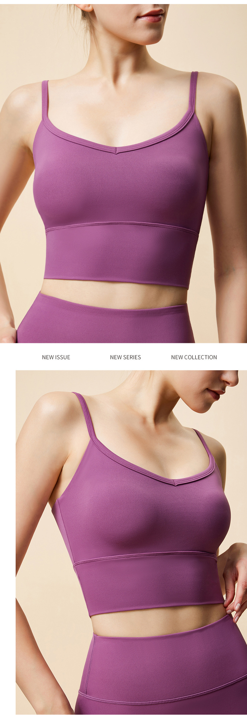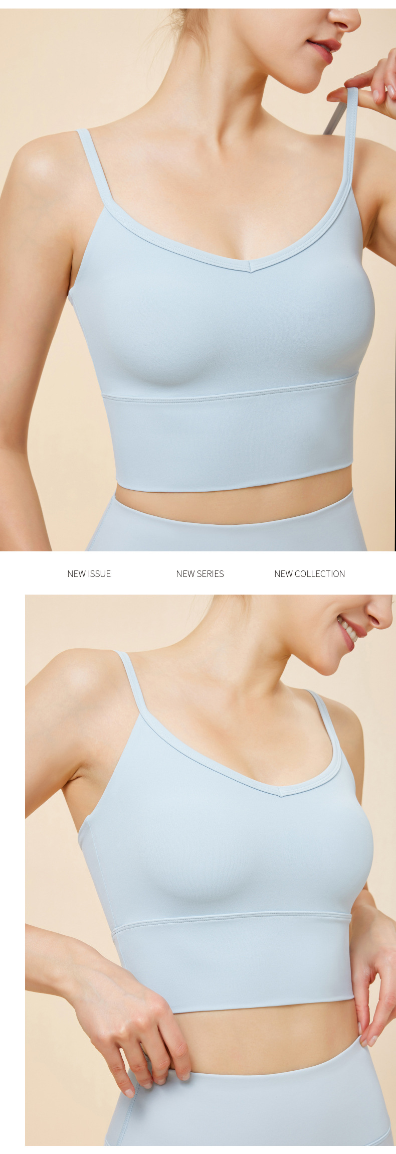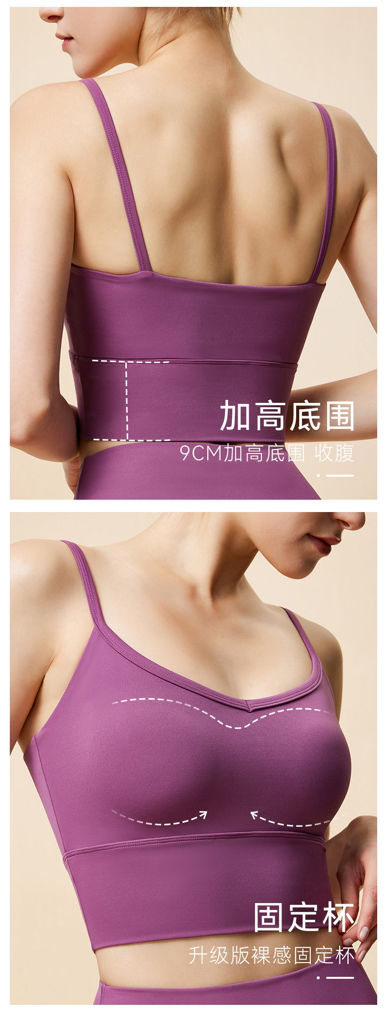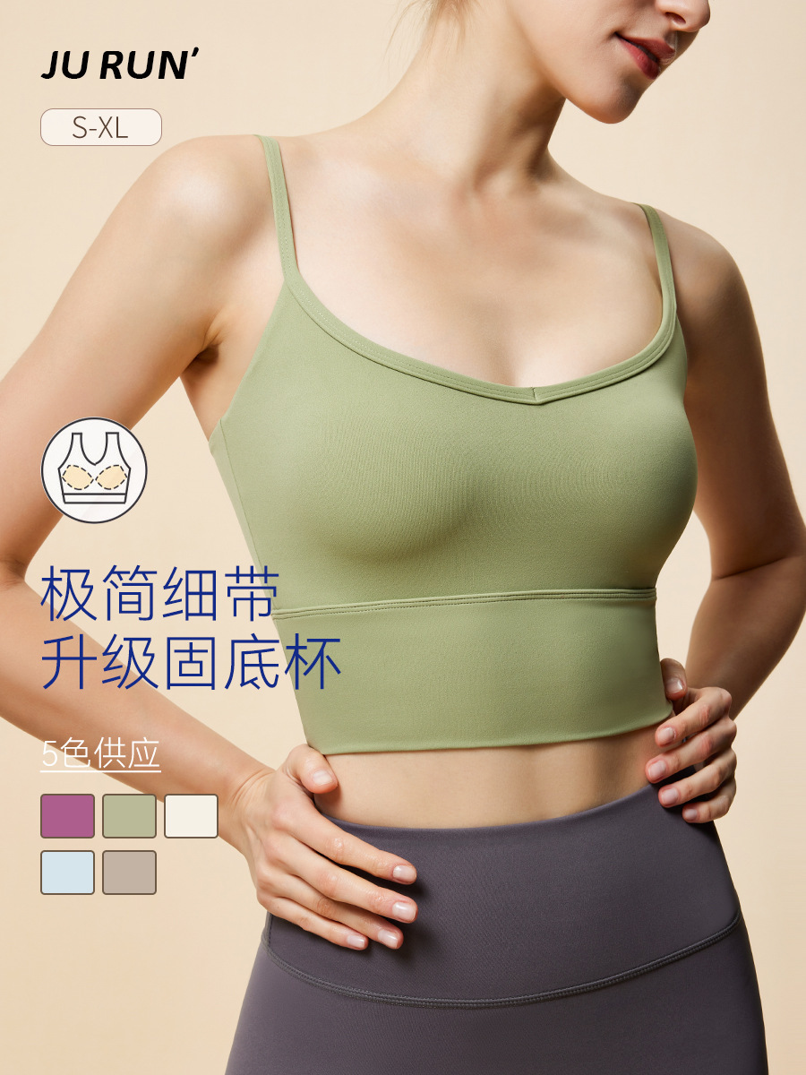 국경 간 새로운 V 넥 스포츠 러닝 브라 섹시한 얇은 어깨 스트랩 요가 조끼 알몸 고정 컵 복부 가방