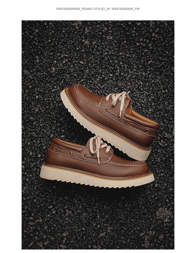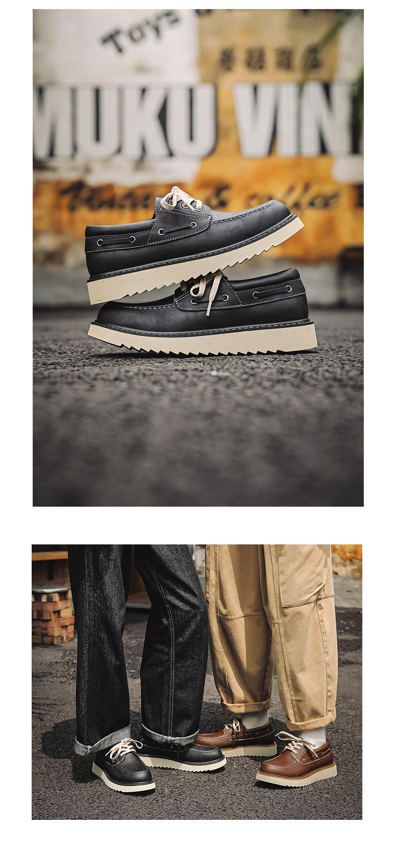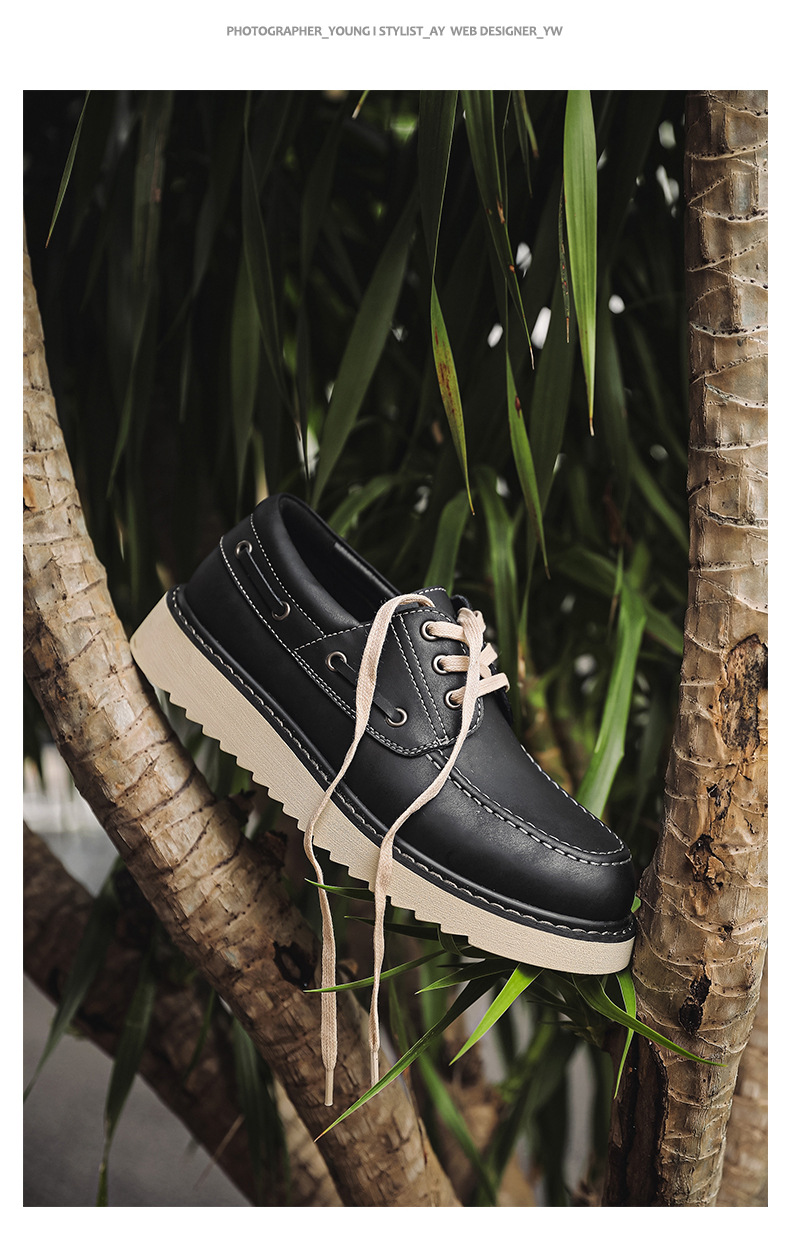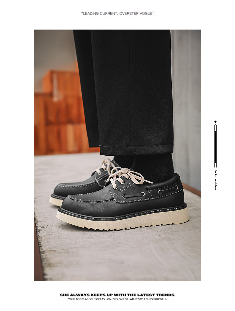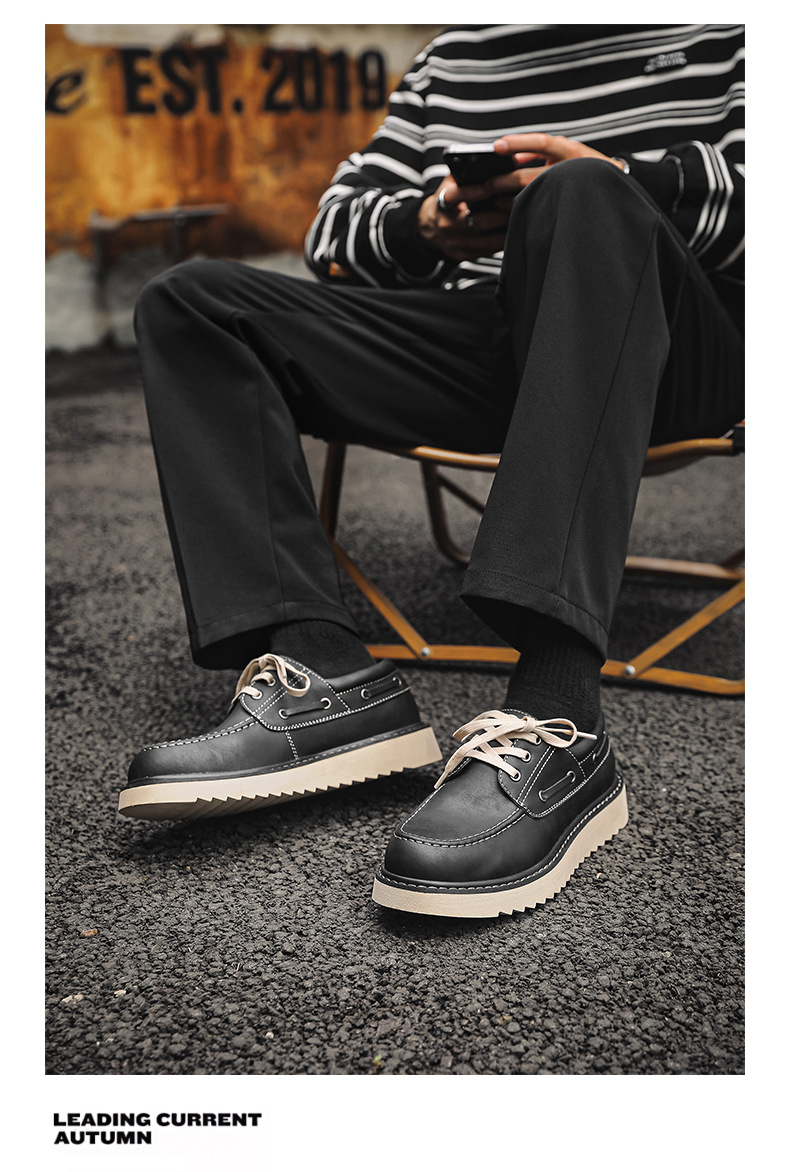 두꺼운 단독 보드 신발 로우 탑 작업복 남성 신발 비즈니스 신발 레이스 업 올 매치 봄과 가을 편안한 남성 신발 어부 신발 나무 신발