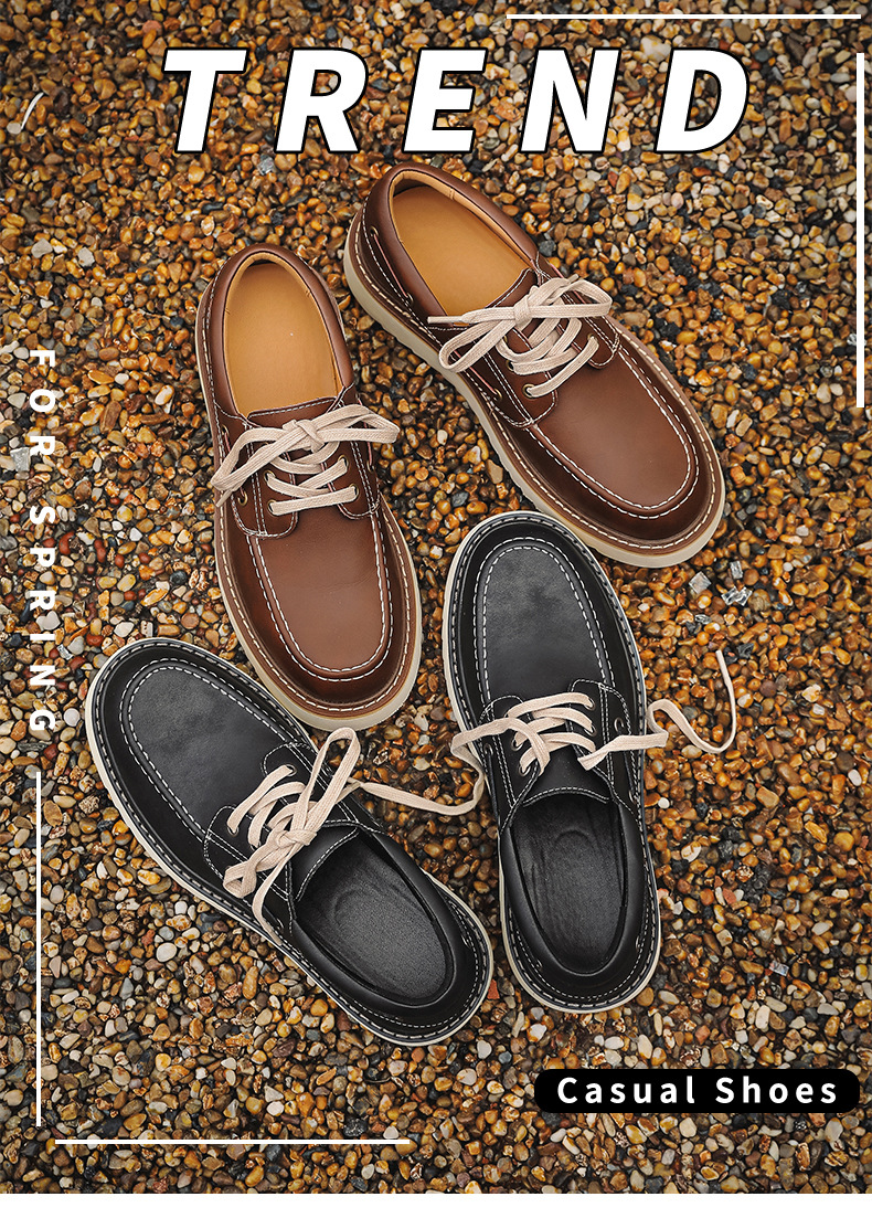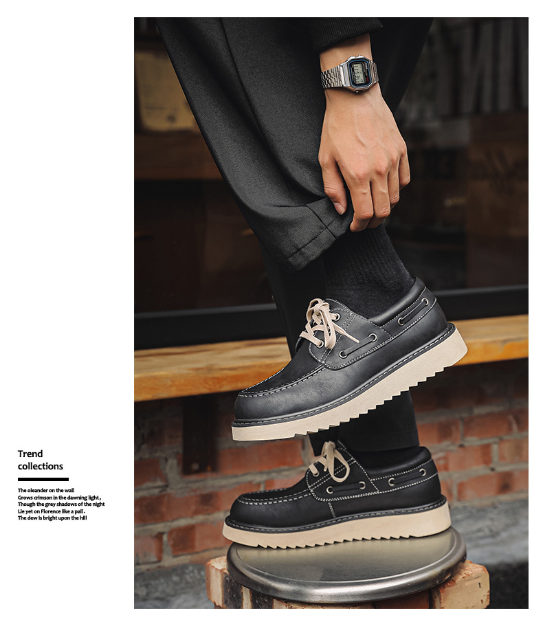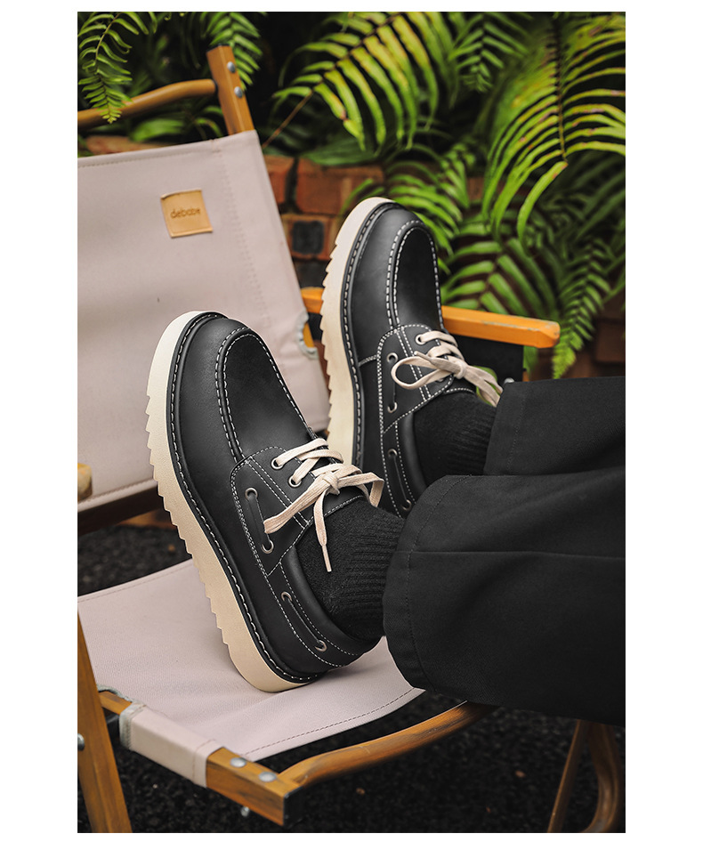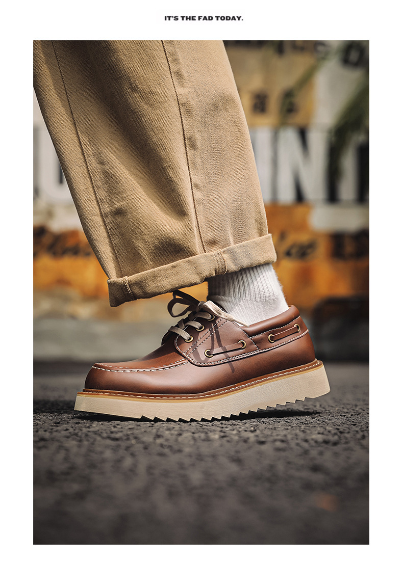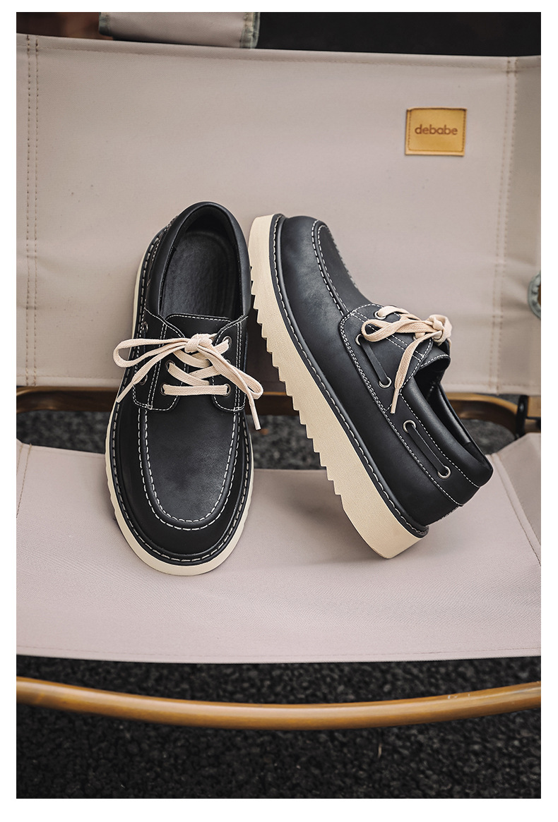 두꺼운 단독 보드 신발 로우 탑 작업복 남성 신발 비즈니스 신발 레이스 업 올 매치 봄과 가을 편안한 남성 신발 어부 신발 나무 신발