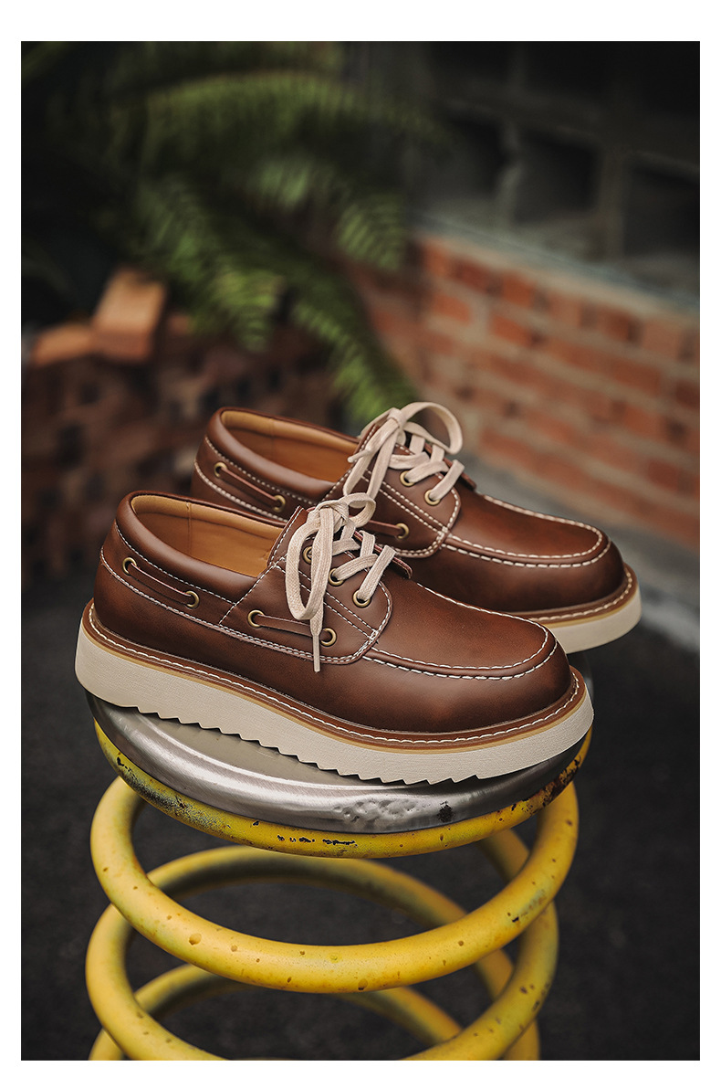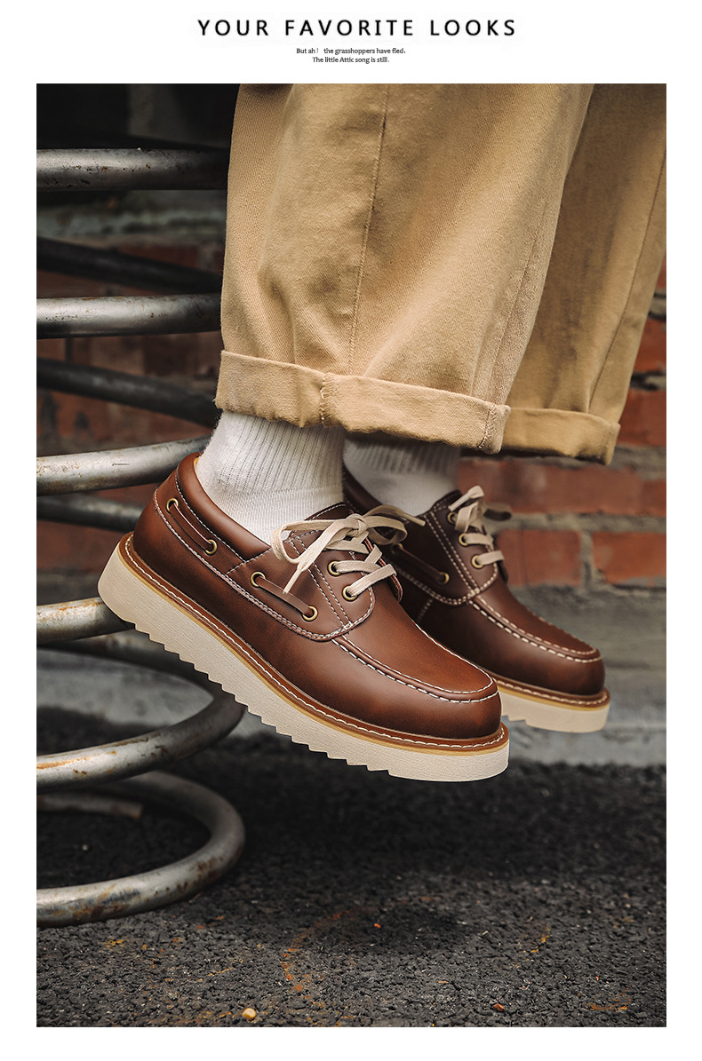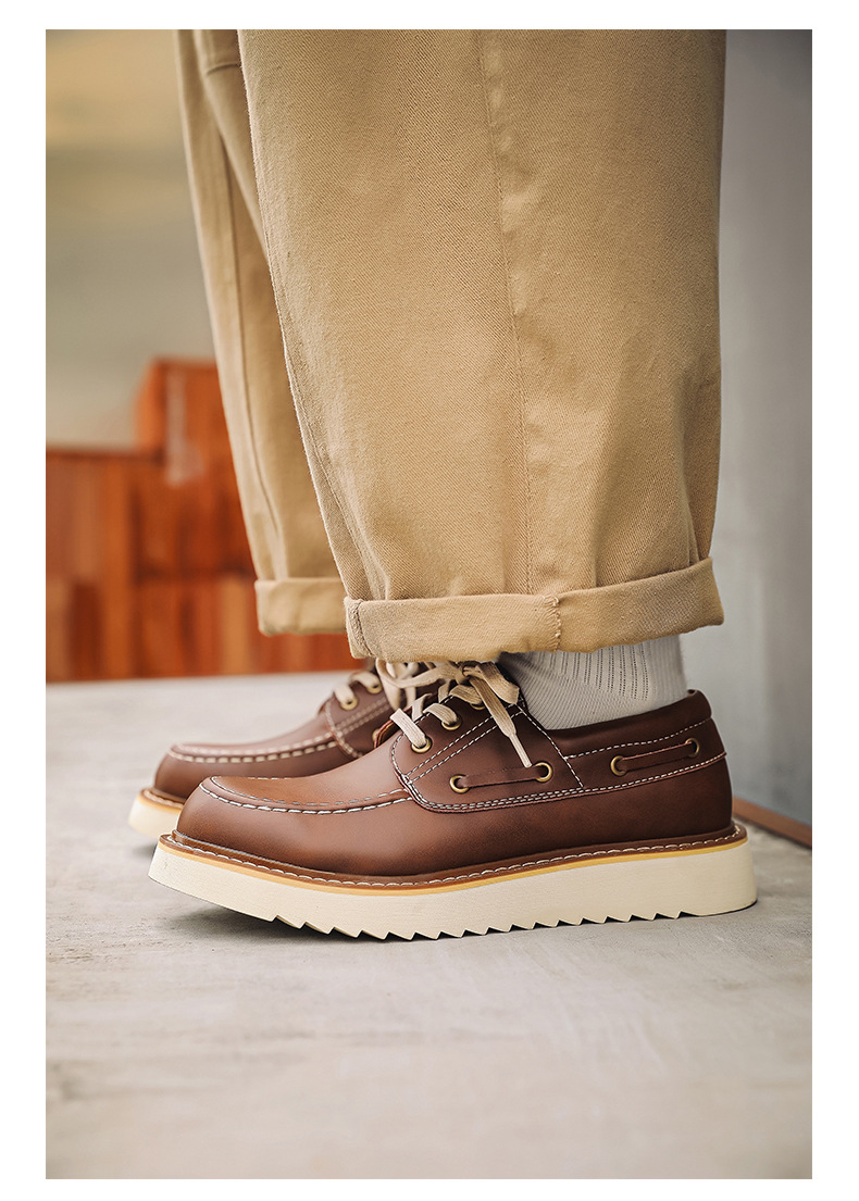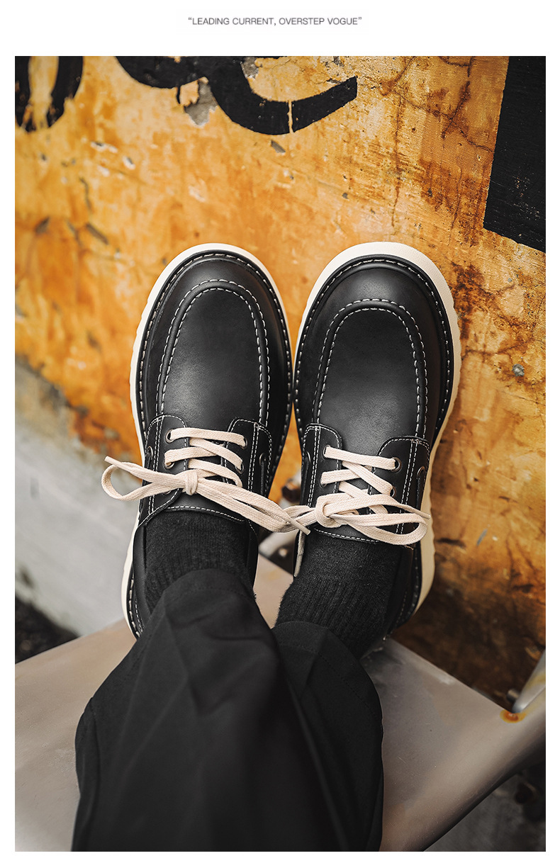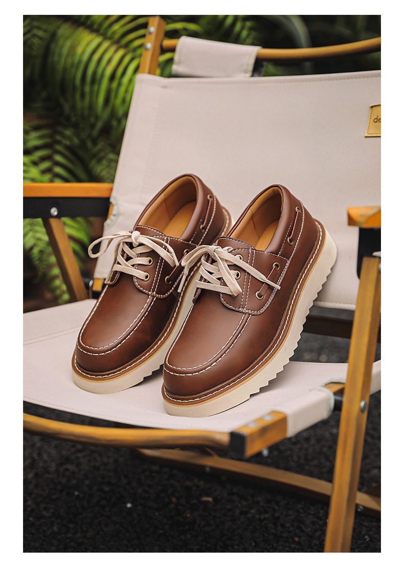 두꺼운 단독 보드 신발 로우 탑 작업복 남성 신발 비즈니스 신발 레이스 업 올 매치 봄과 가을 편안한 남성 신발 어부 신발 나무 신발