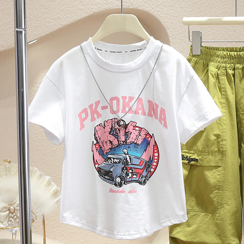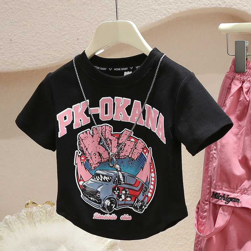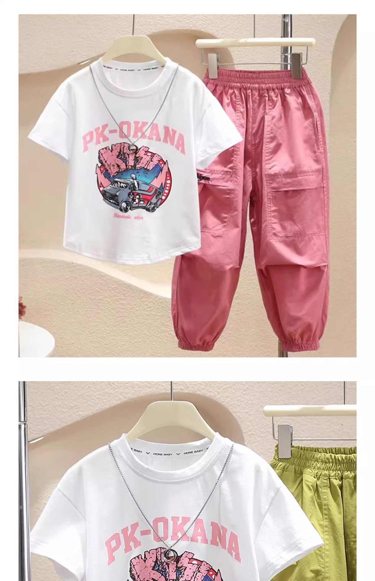 소녀 세트 여름 2024 새로운 서양식 어린이 온라인 인기 스포츠 아동복 여름 중 큰 어린이 여름 착용 화물 바지