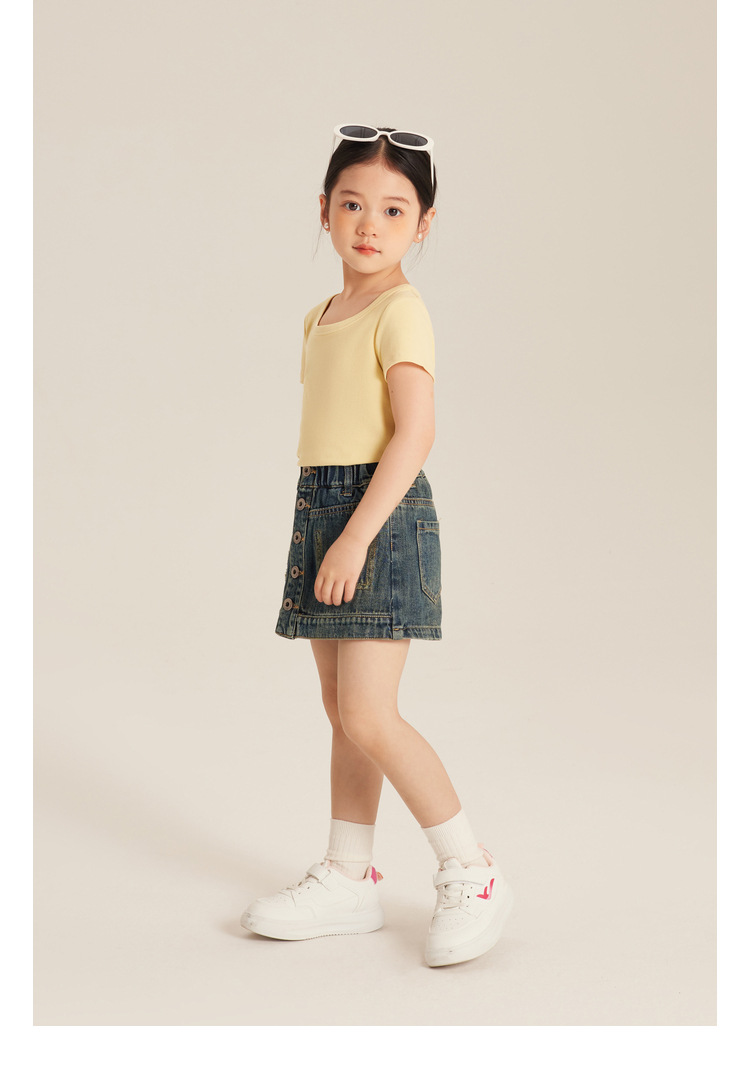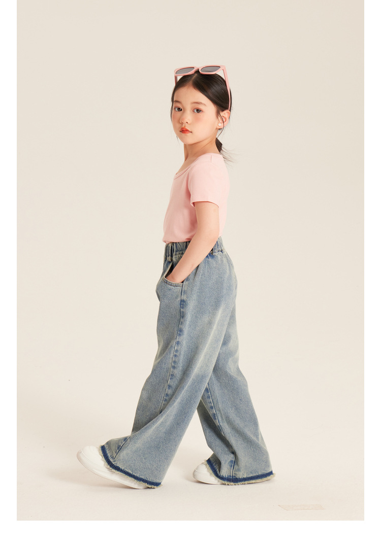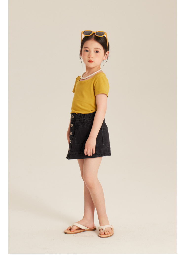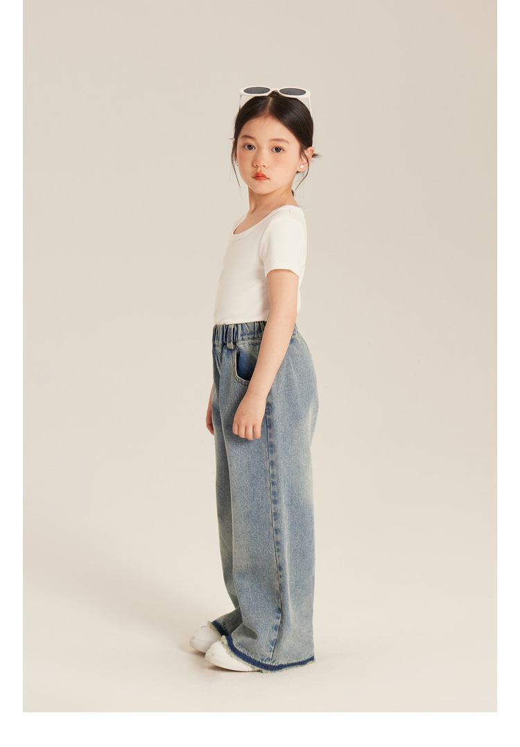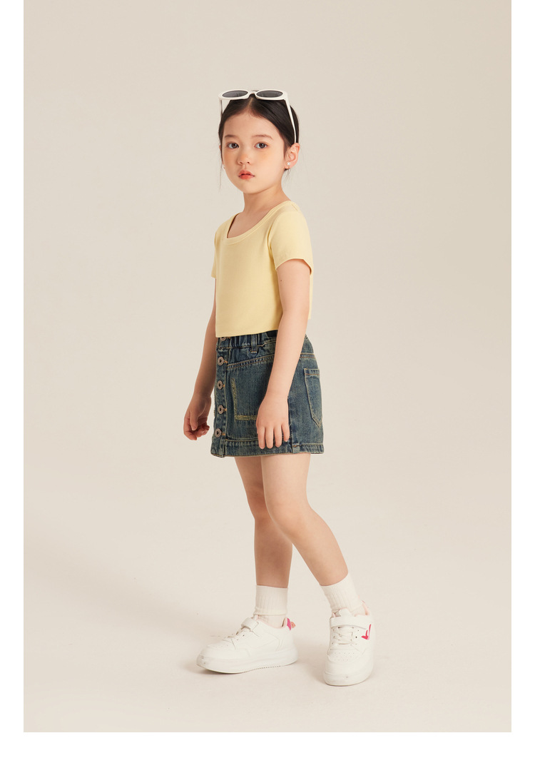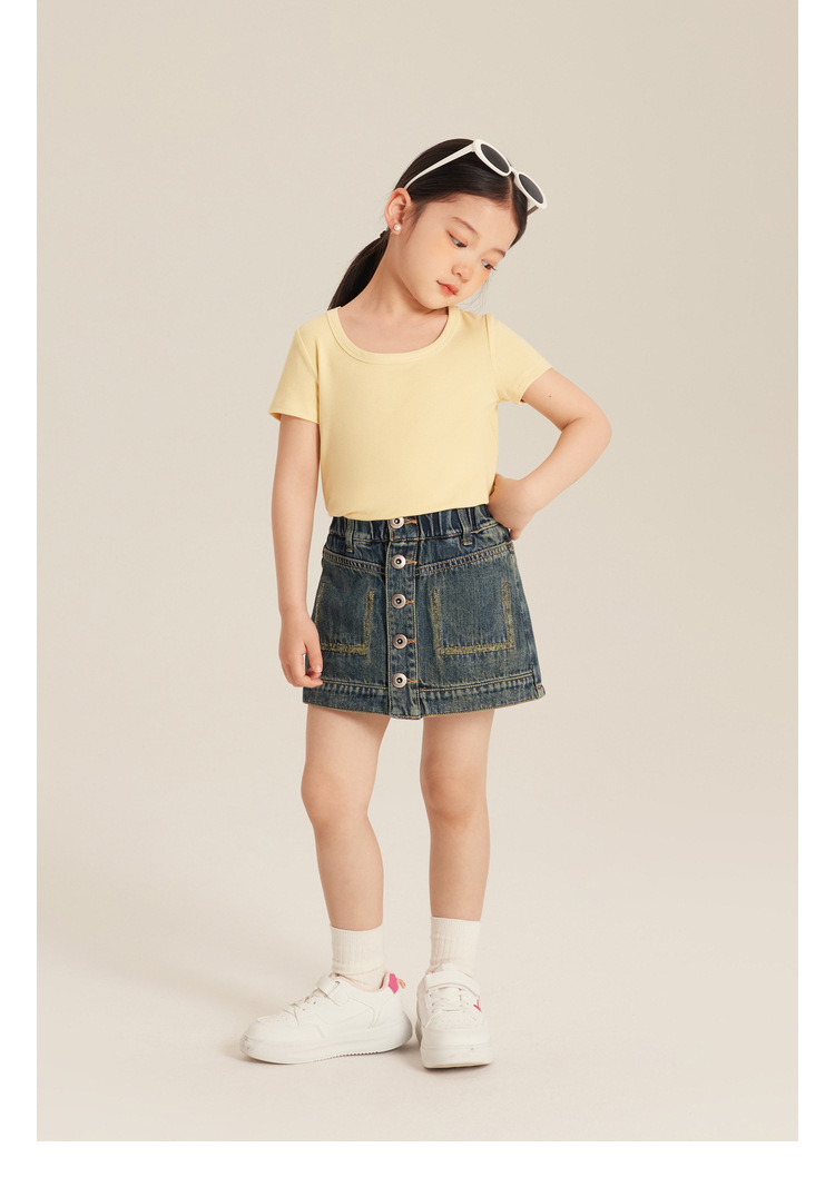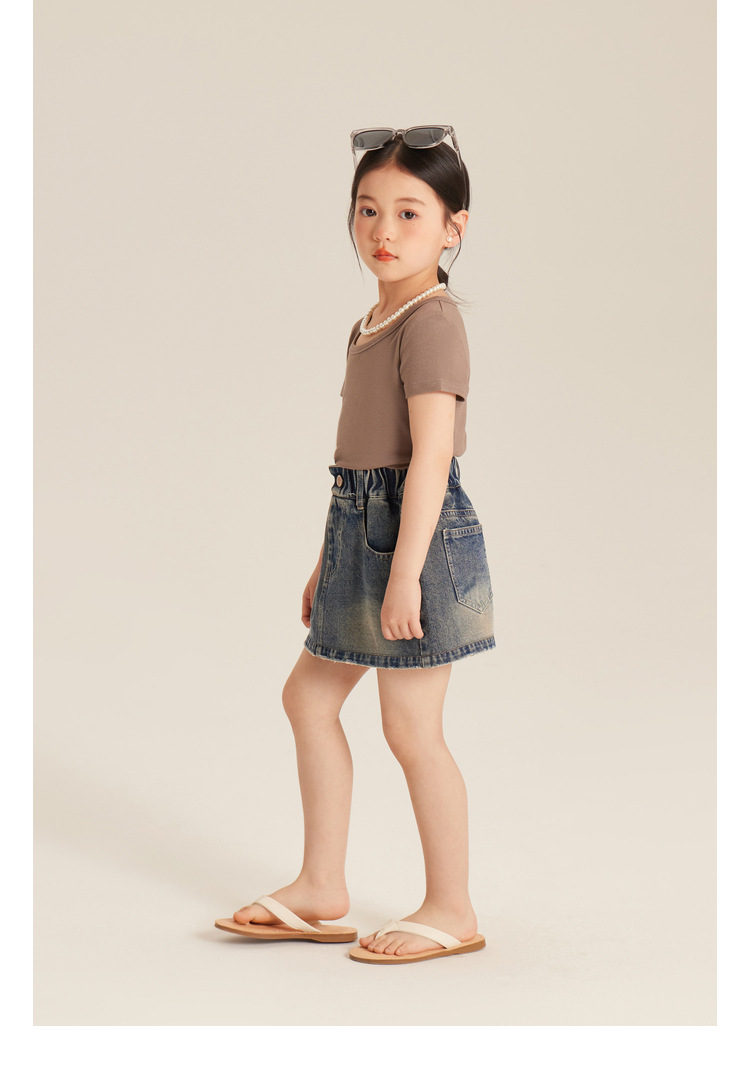 Amybaby Girls 반팔 티셔츠 2024 새로운 어린이 봄과 여름 간단한 캐주얼 솔리드 컬러 라운드 넥 탑스토어 가기