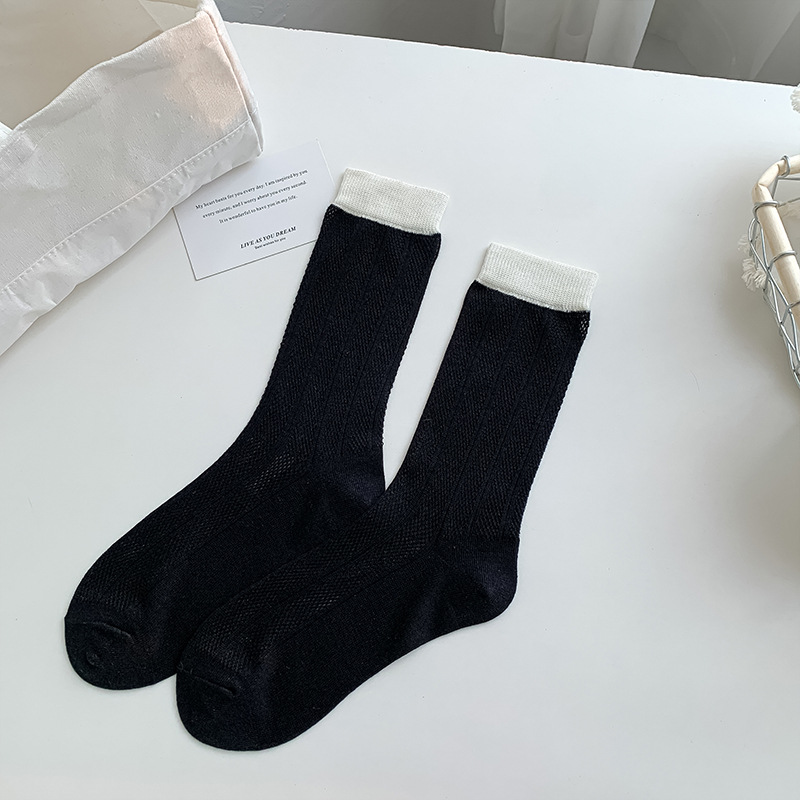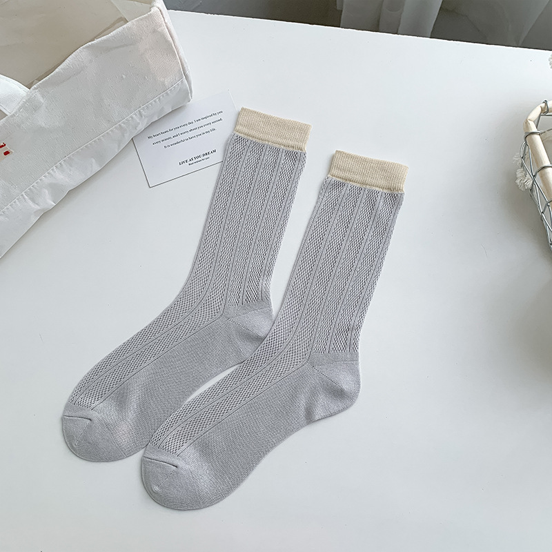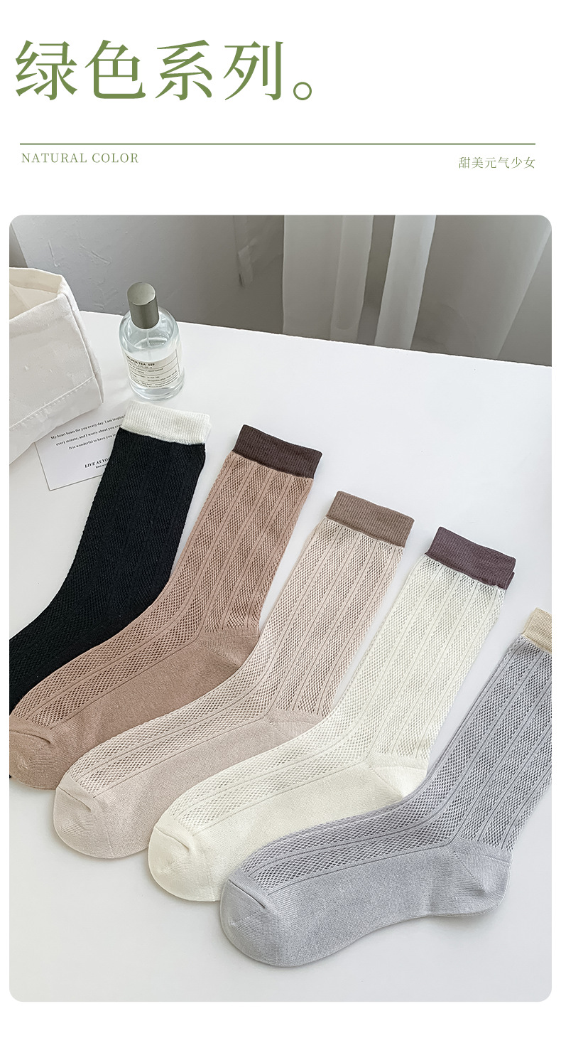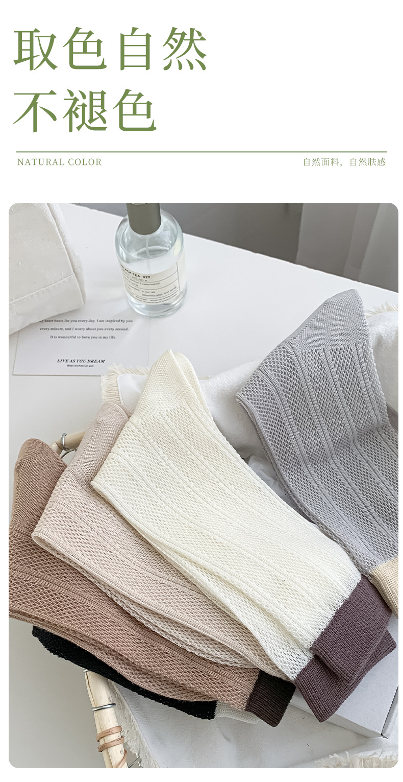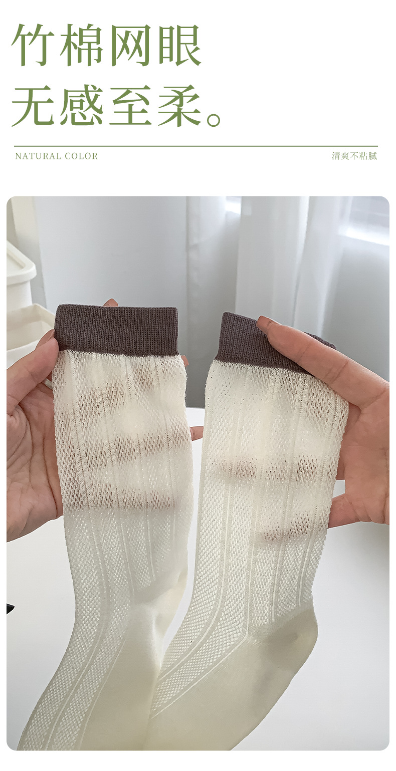2024 봄과 여름 새로운 한국 대나무 면 메쉬 대조 색상 간단한 얇은 중공 튜브 스태킹 양말 통기성 핀 양말