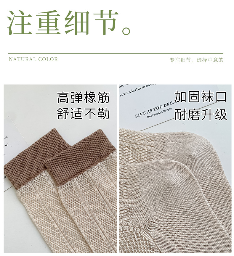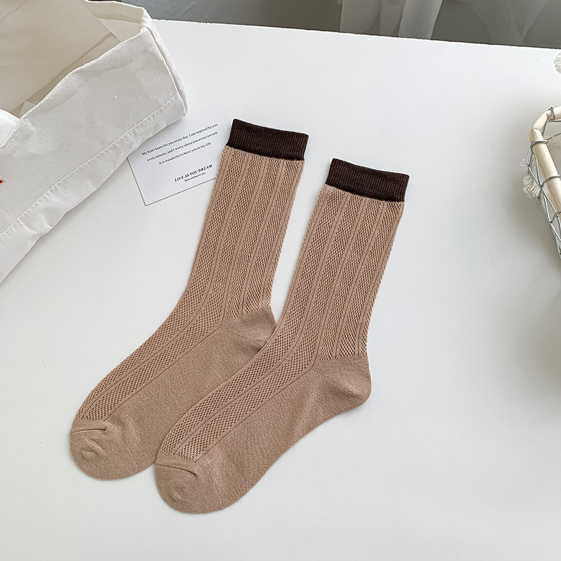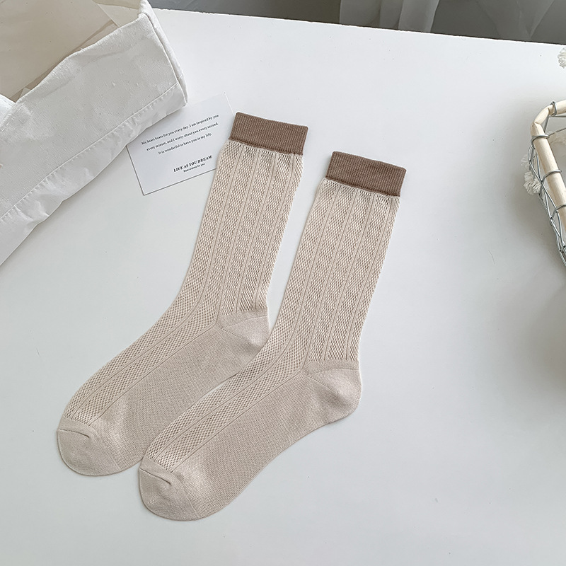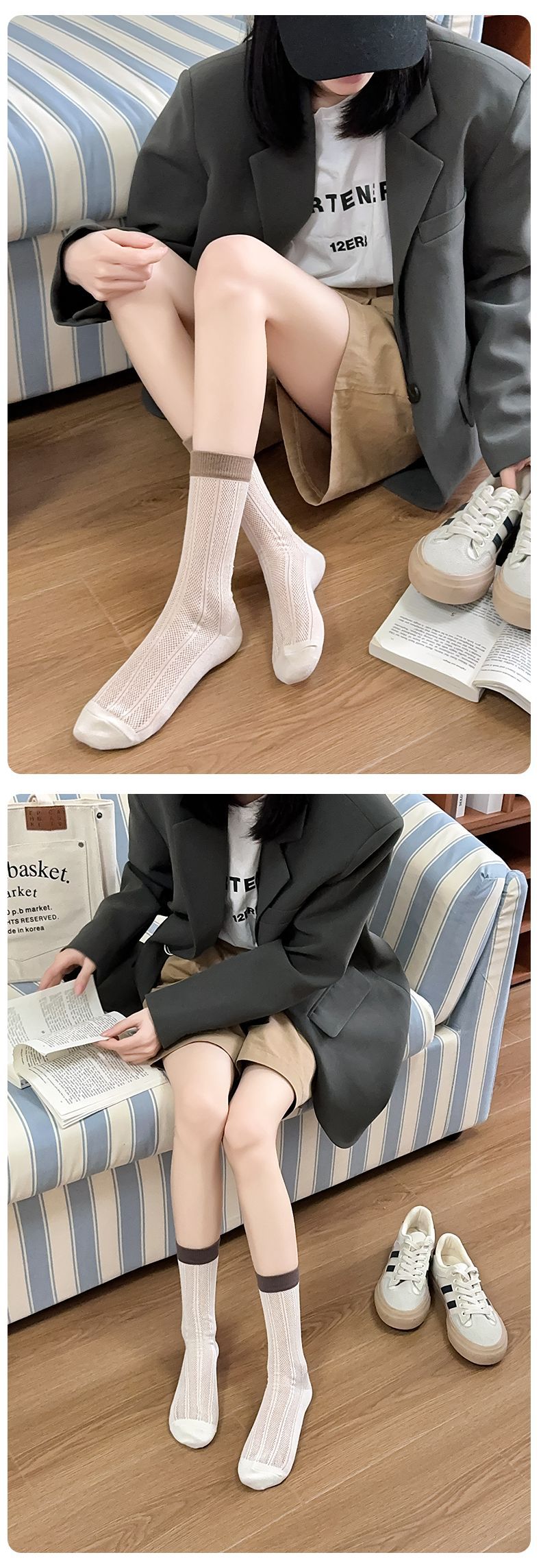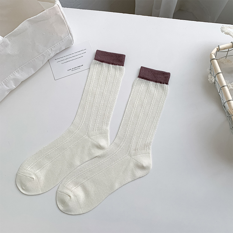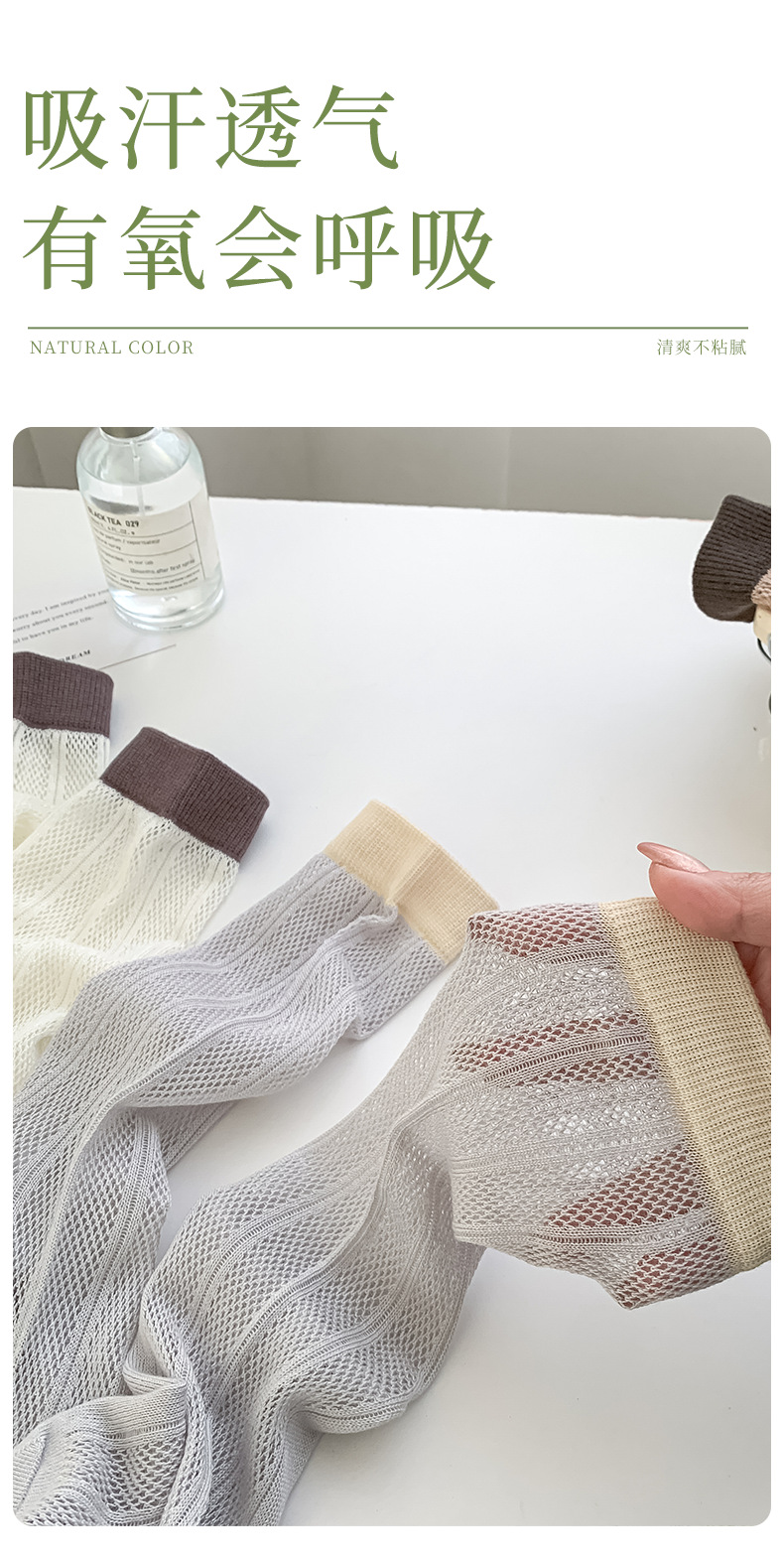 2024 봄과 여름 새로운 한국 대나무 면 메쉬 대조 색상 간단한 얇은 중공 튜브 스태킹 양말 통기성 핀 양말