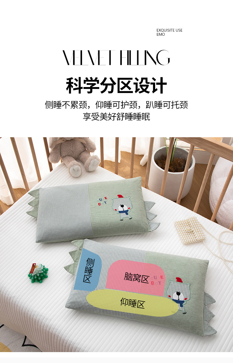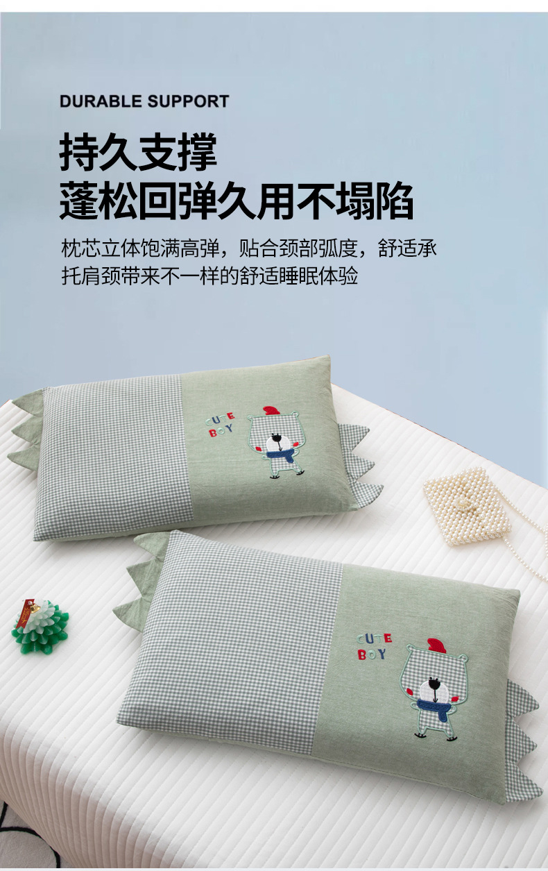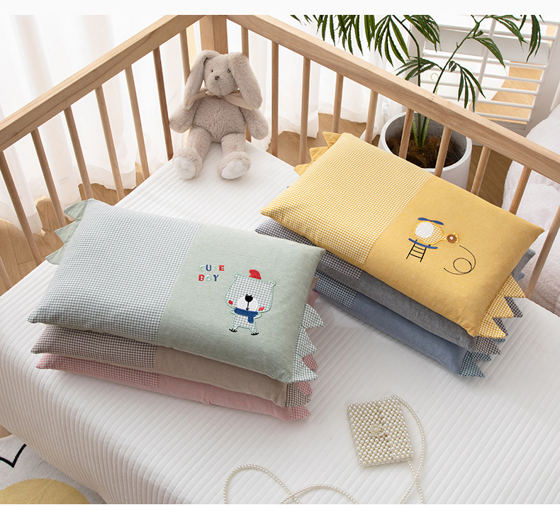 새로운 목화 씻은 면화 아기 베개 0-6-12 세 만화 패치 자수 베개 코어 30*50cm