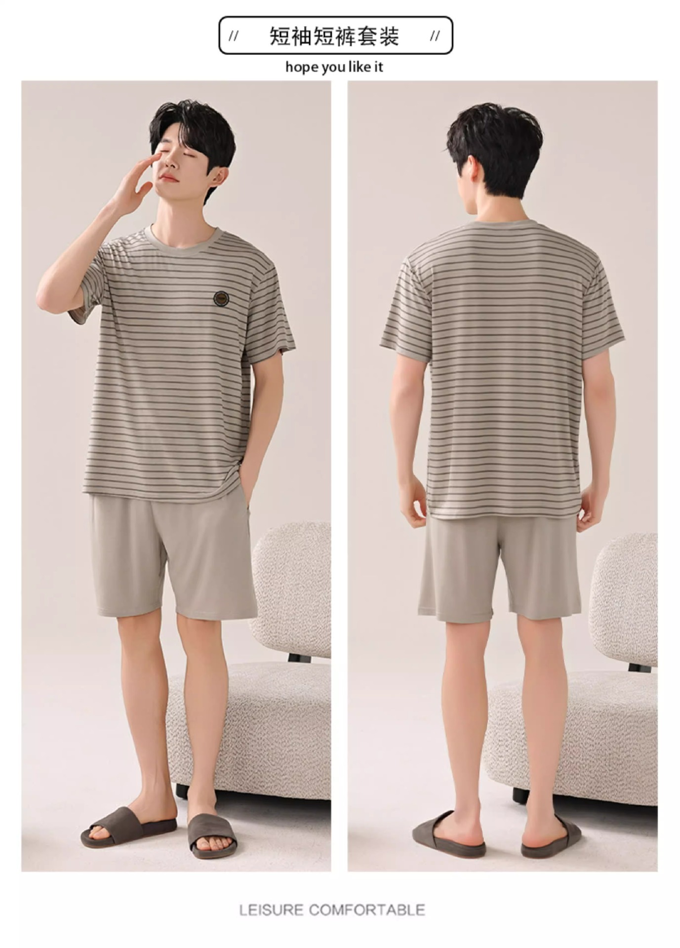 5XL 초대형 사이즈 모달 반팔 반바지 잠옷 남성 여름 뚱뚱한 플러스 사이즈 100kg 청소년 캐주얼 슈트