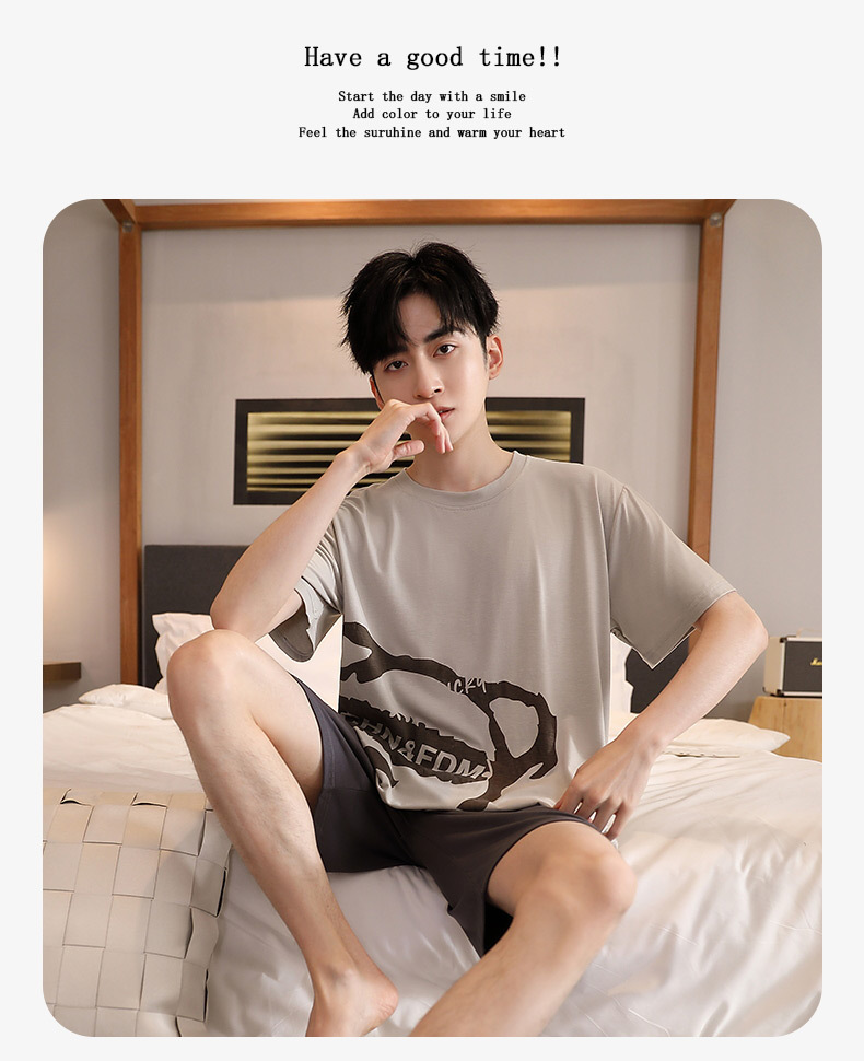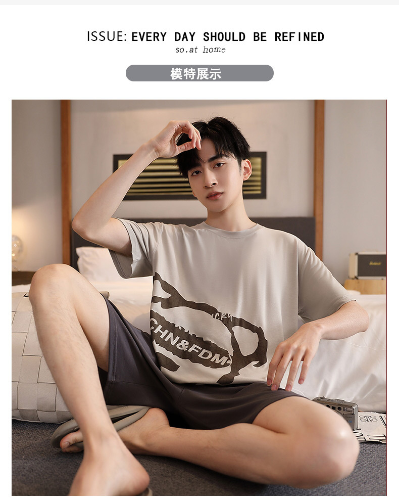 5XL 초대형 사이즈 모달 반팔 반바지 잠옷 남성 여름 뚱뚱한 플러스 사이즈 100kg 청소년 캐주얼 슈트스토어 가기
