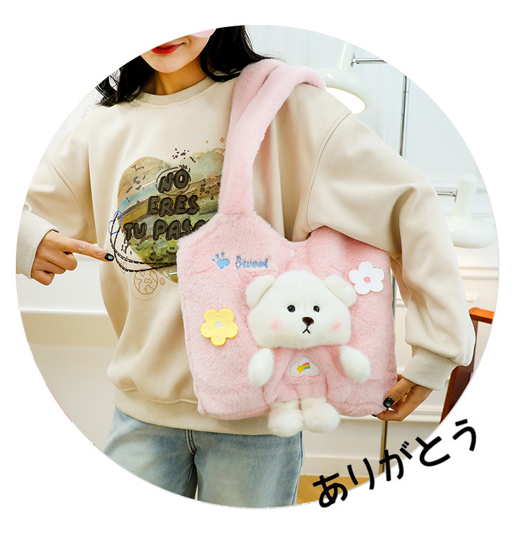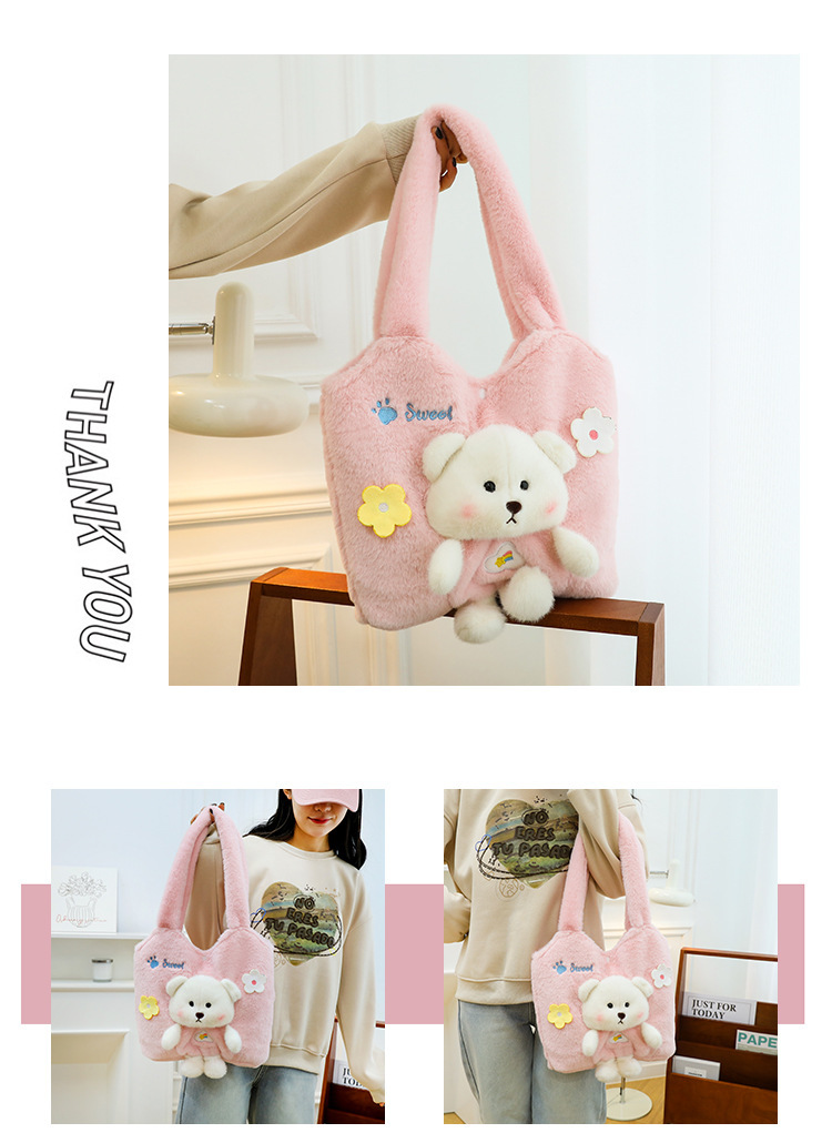 2024 새로운 곰 여성 가방 귀여운 봉제 인형 가방 휴대용 대용량 인형 장난감 크로스 바디 백