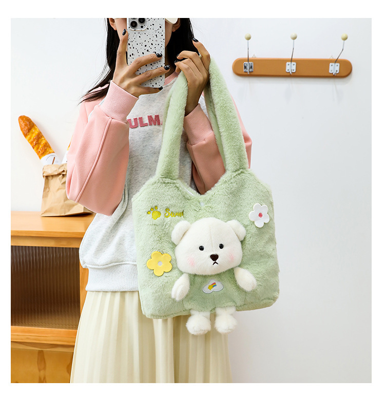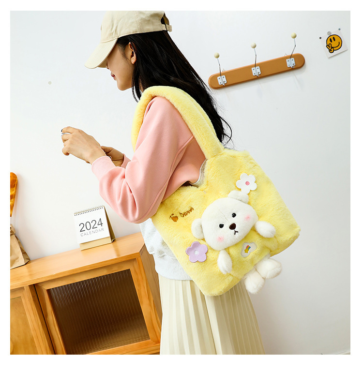 2024 새로운 곰 여성 가방 귀여운 봉제 인형 가방 휴대용 대용량 인형 장난감 크로스 바디 백스토어 가기