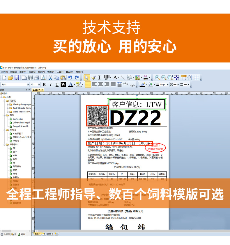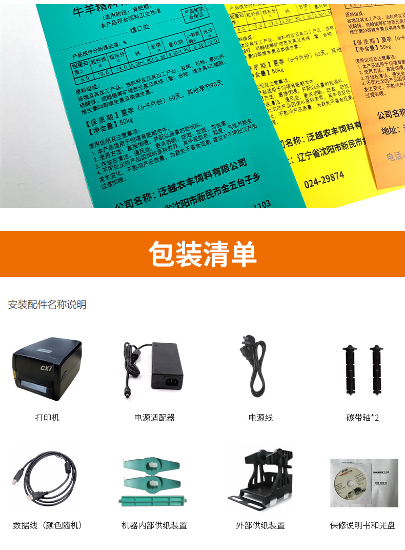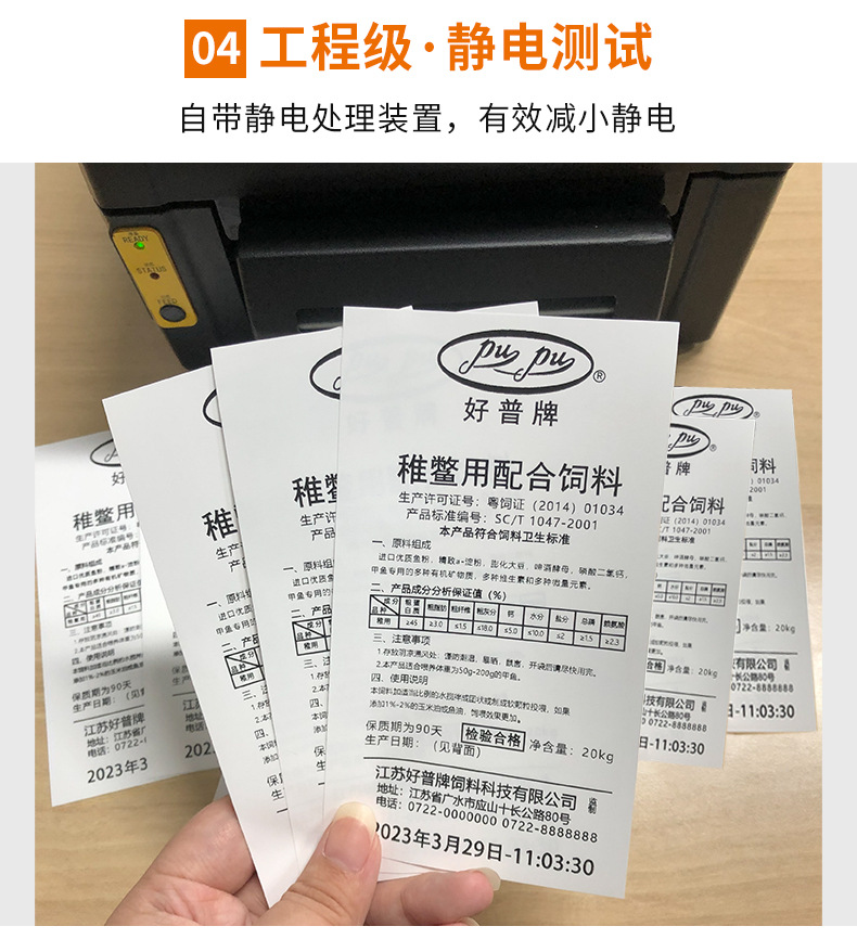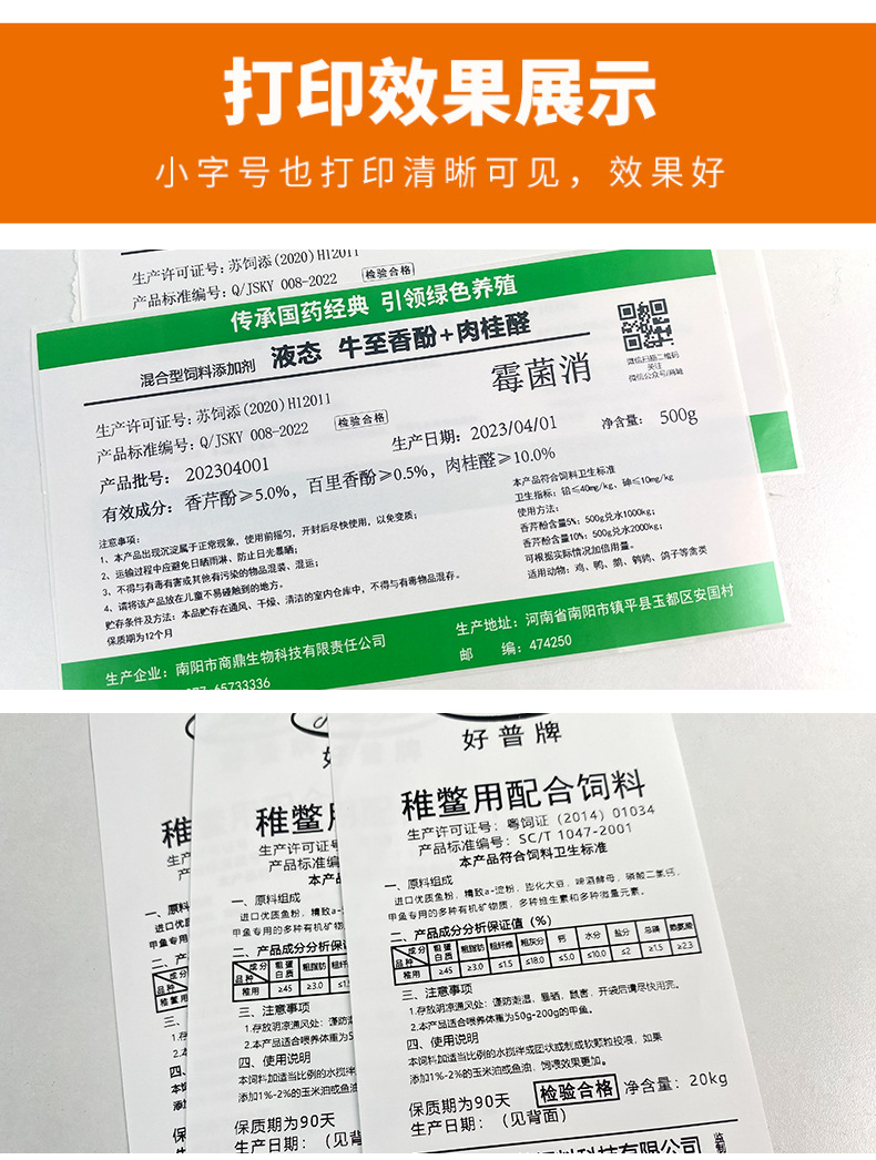 사료 라벨 프린터, 천 라벨, 직조 가방 밀봉 마크, 스트레치 필름, 절단기가 있는 자동 접착제 기계, 바코드스토어 가기