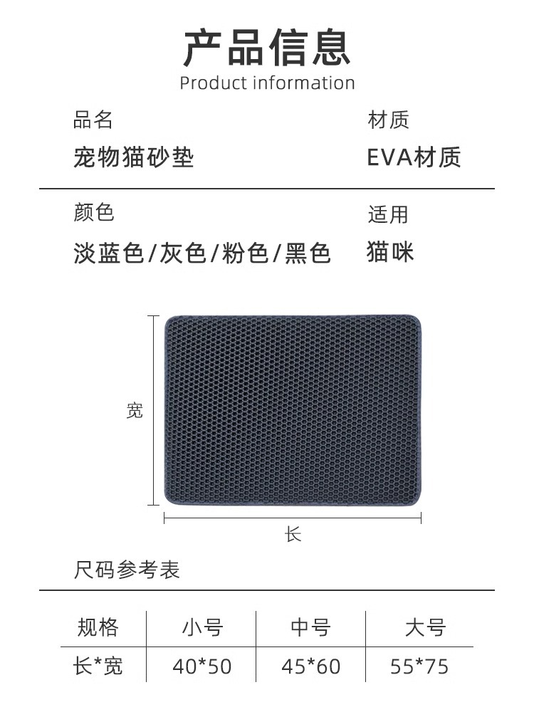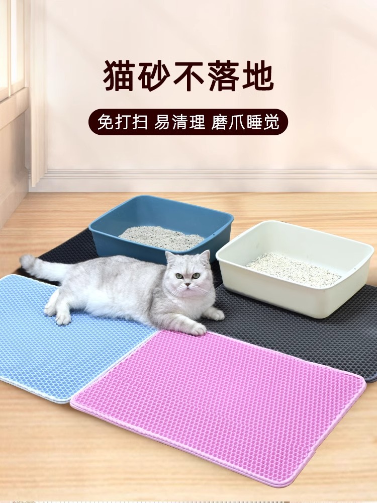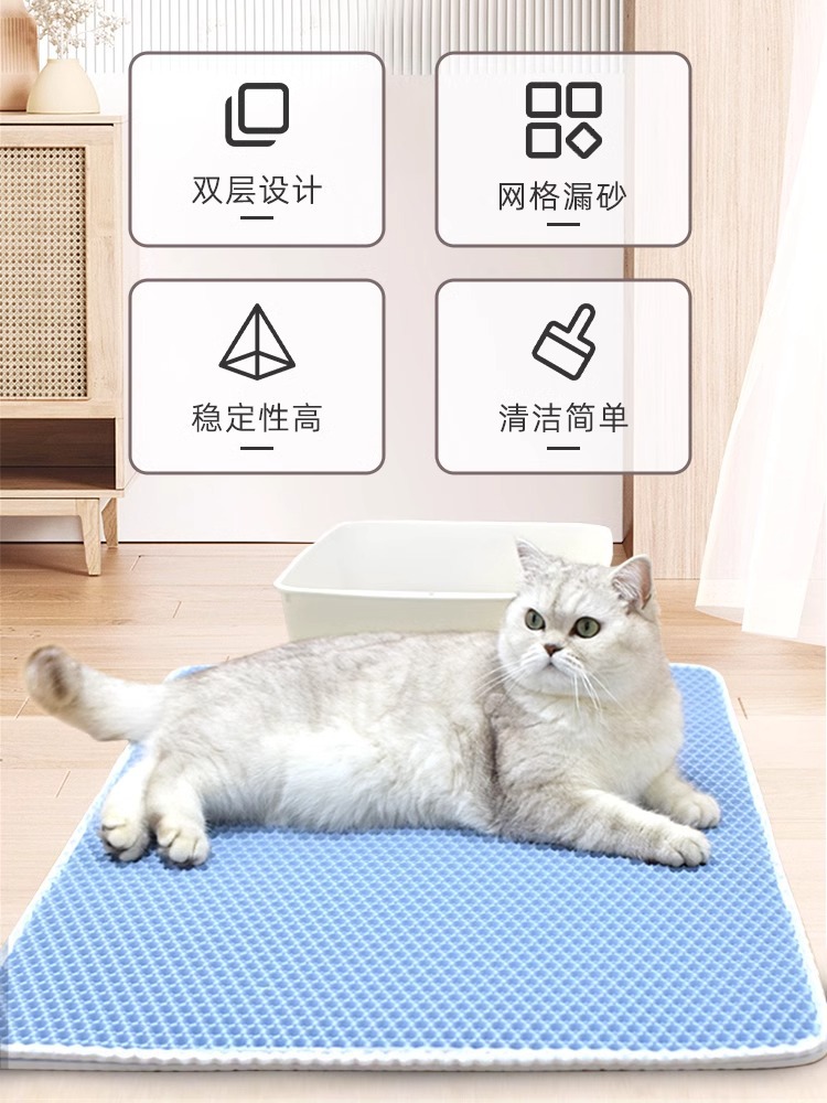 고양이 화장실 필수품 EVA 이중 필터 고양이 모래 매트, 흘림 방지, 세척 용이, 모래 튀김 방지, 모래 제어 매트, 벌집 구조스토어 가기