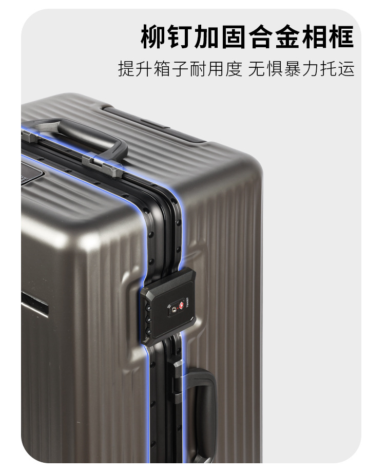 스포츠형 트롤리 캐리어 20inch 기내 반입 가능 충격흡수 대용량 회전식 바퀴 캐리어 비밀번호 잠금 알루미늄 프레임 여행용 캐리어