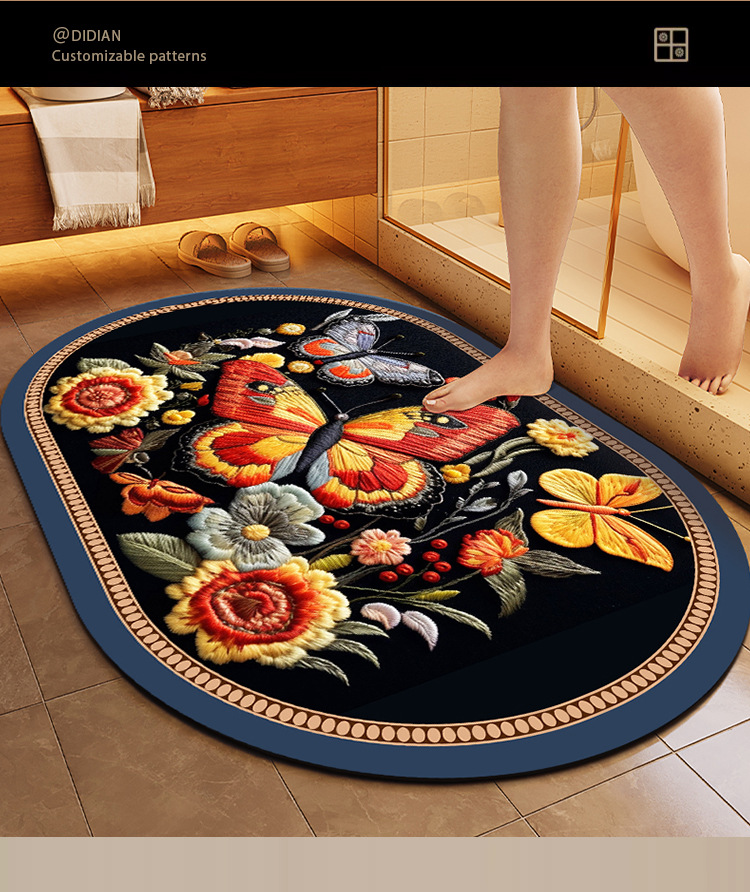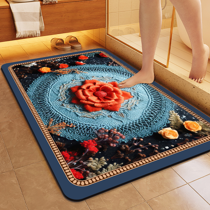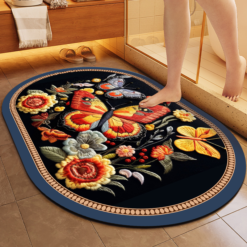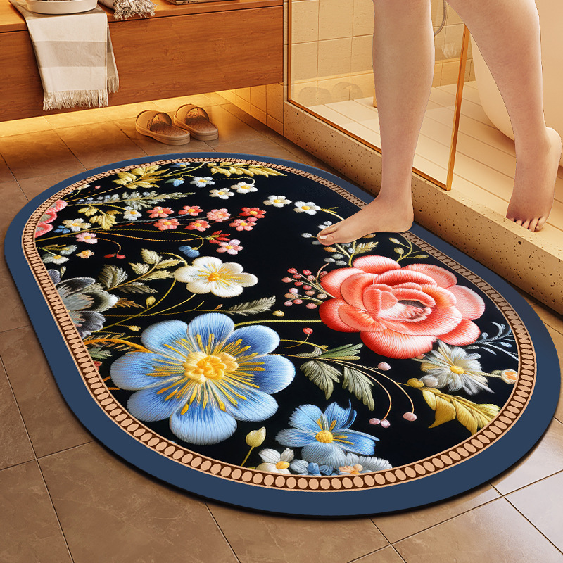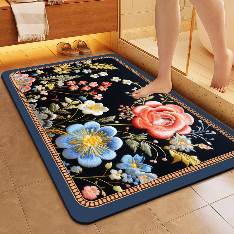 중국풍 자수 스타일 욕실 흡수 매트, 오염 방지, 가정용 미끄럼 방지 발 매트, 규조토 매트스토어 가기