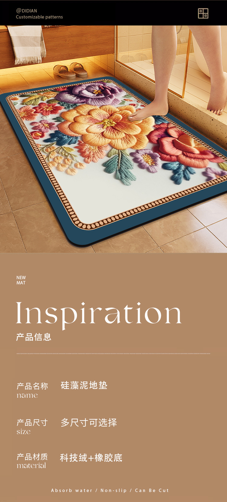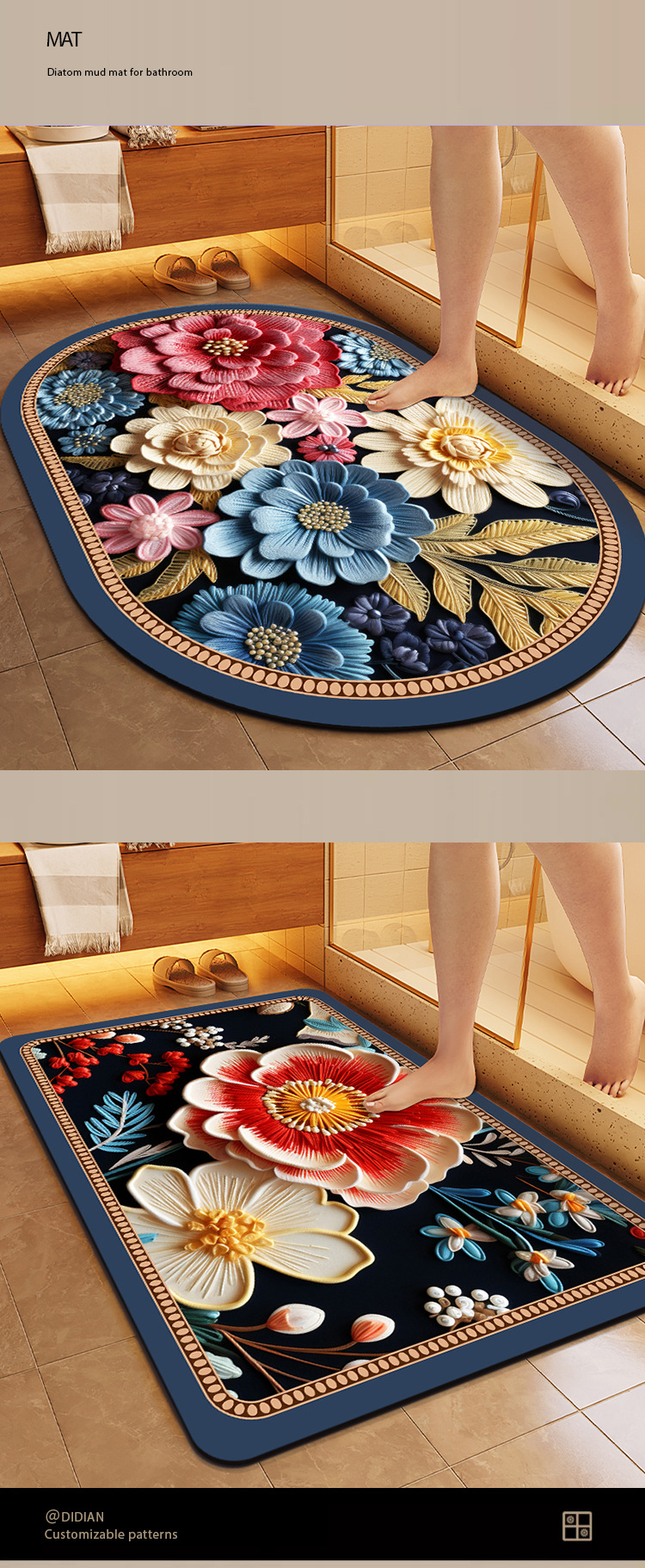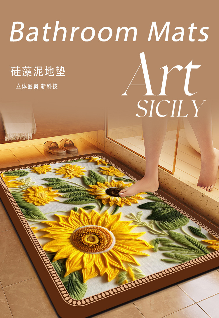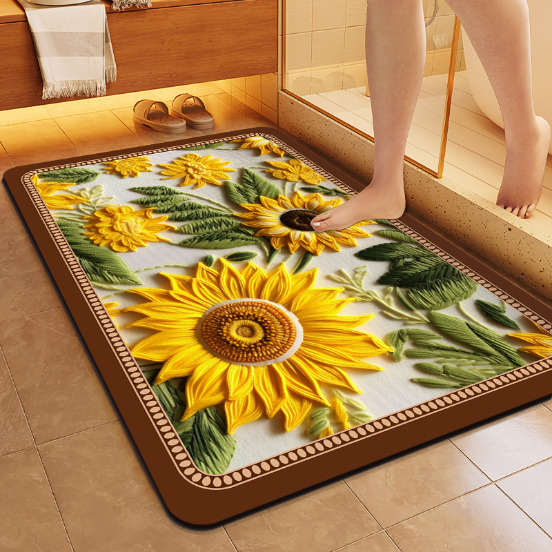 중국풍 자수 스타일 욕실 흡수 매트, 오염 방지, 가정용 미끄럼 방지 발 매트, 규조토 매트스토어 가기