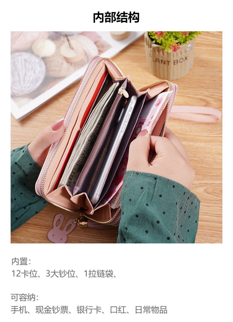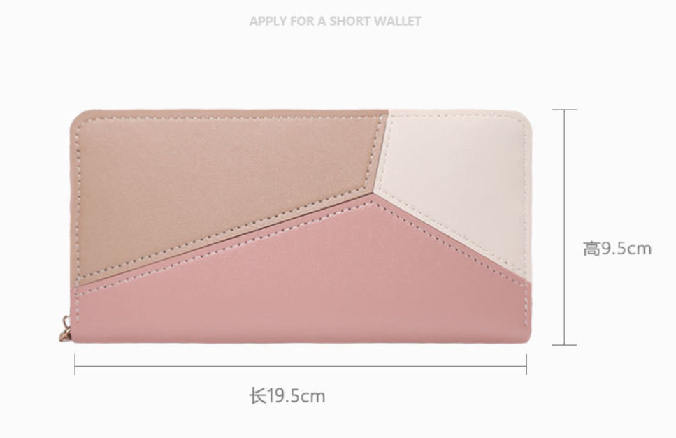 여성용 클러치 지갑, 여성용 롱 스타일, 세 가지 색상 배색, 대비되는 색상의 지퍼, 핸드폰 가방, 학생용 지갑, 소형 가방