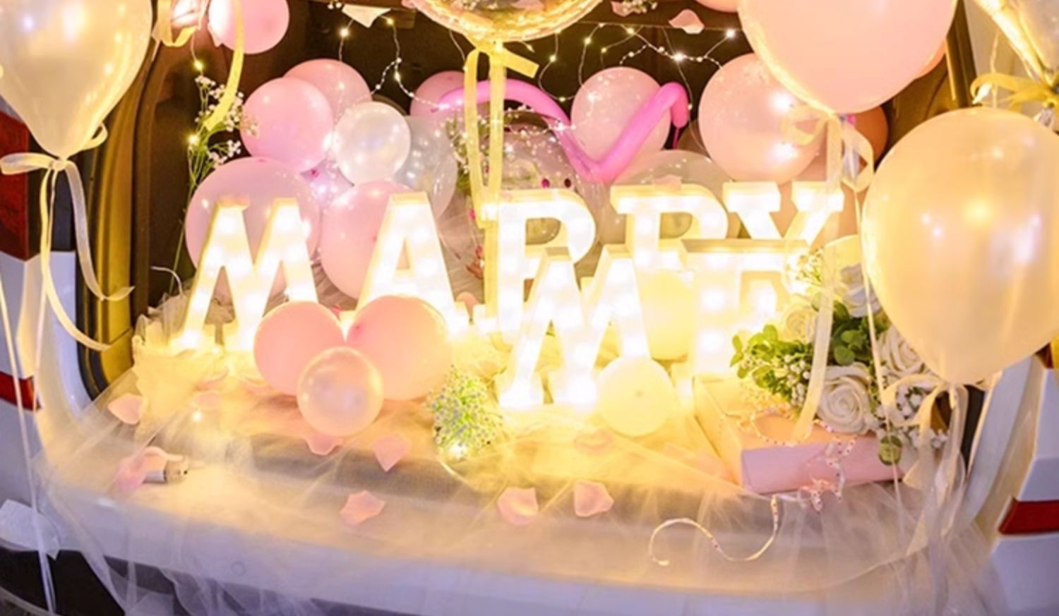중국 발렌타인 데이 자동차 트렁크 깜짝 장식 생일 고백 로맨틱 프로포즈 소녀 자동차 트렁크