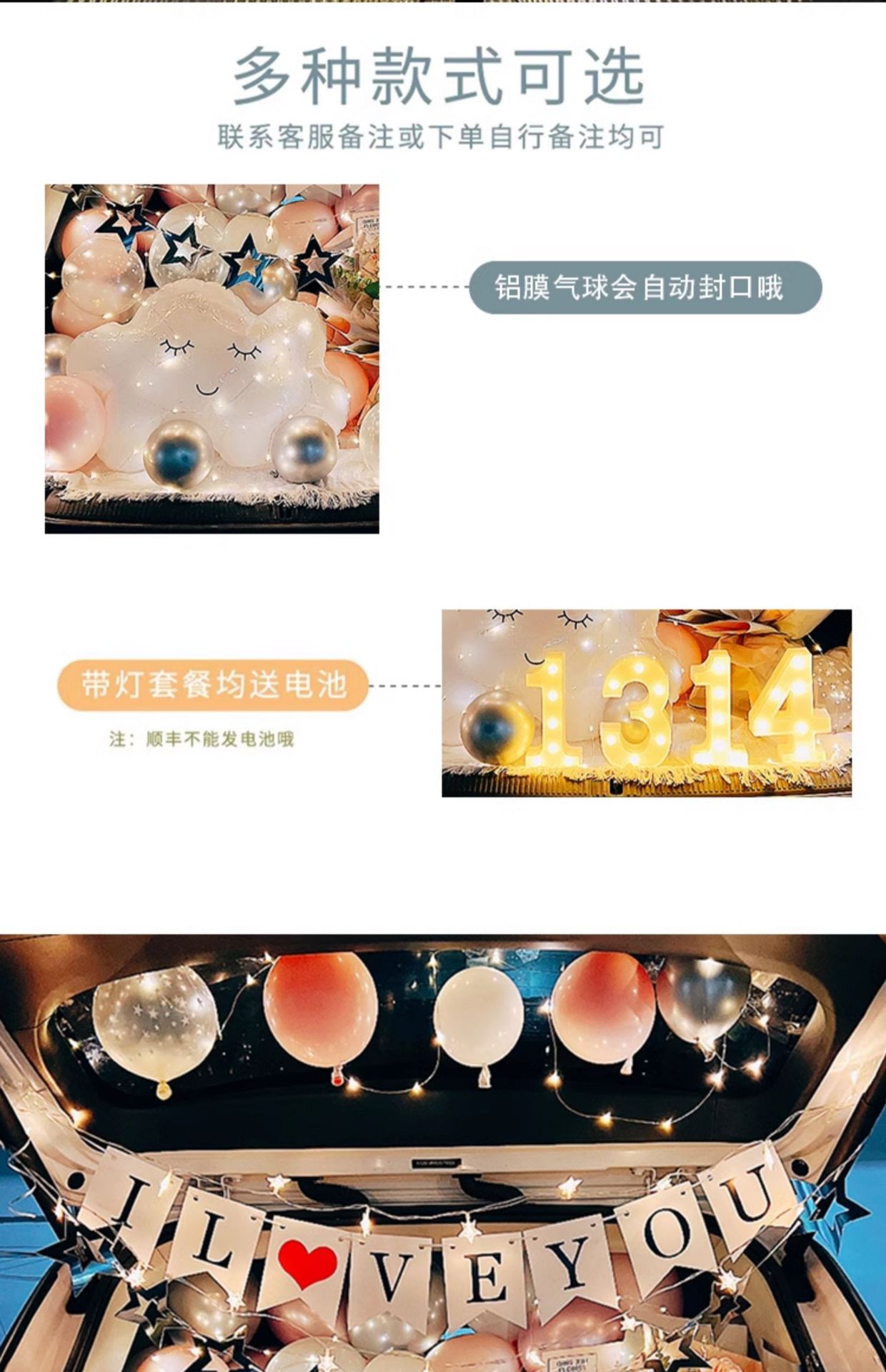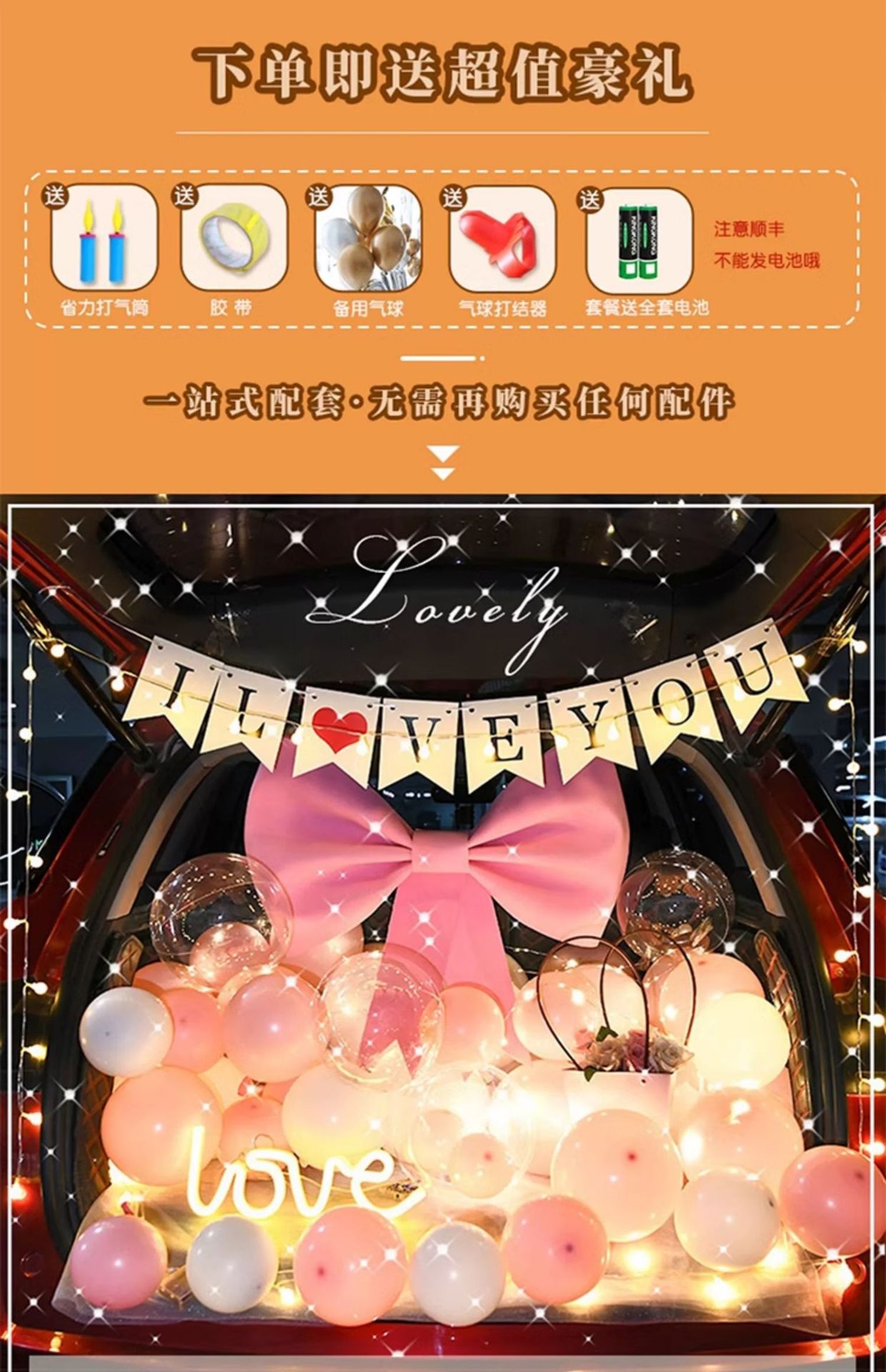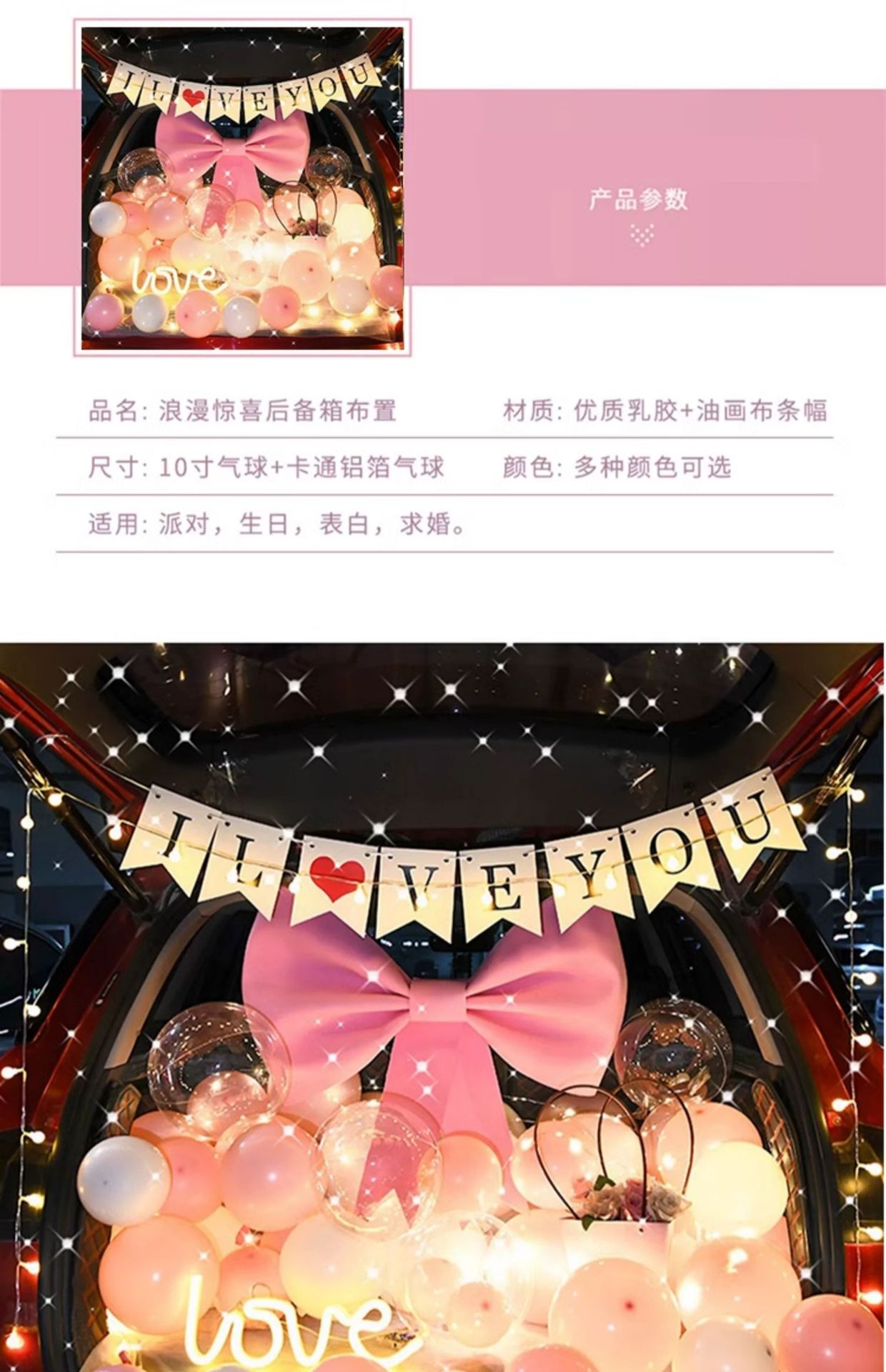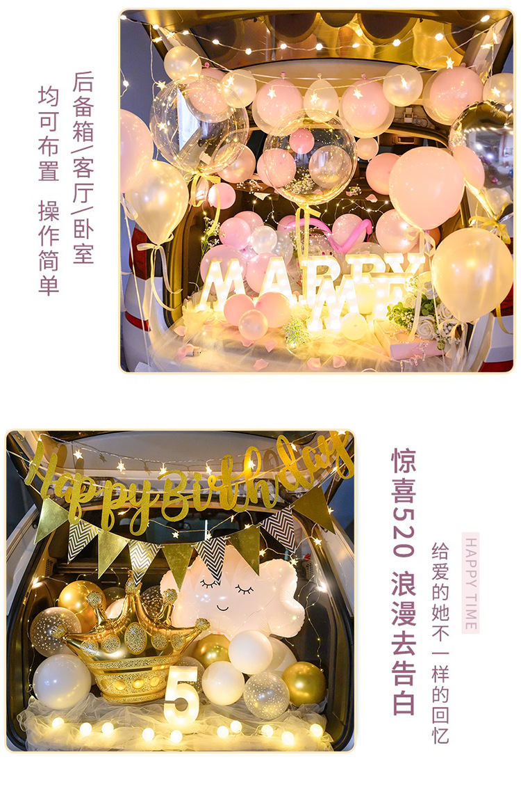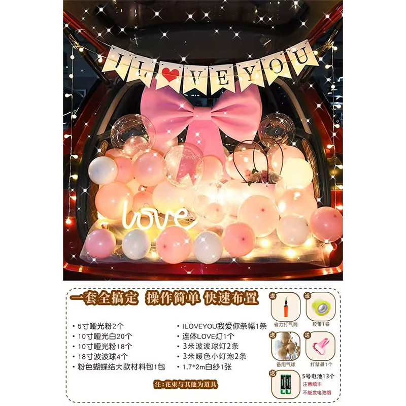 중국 발렌타인 데이 자동차 트렁크 깜짝 장식 생일 고백 로맨틱 프로포즈 소녀 자동차 트렁크스토어 가기