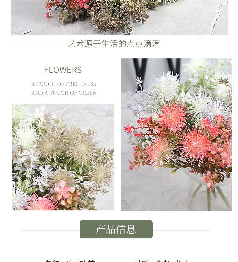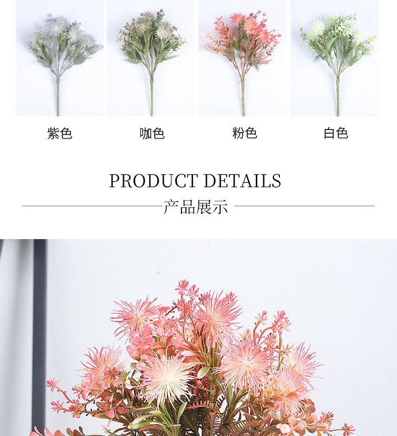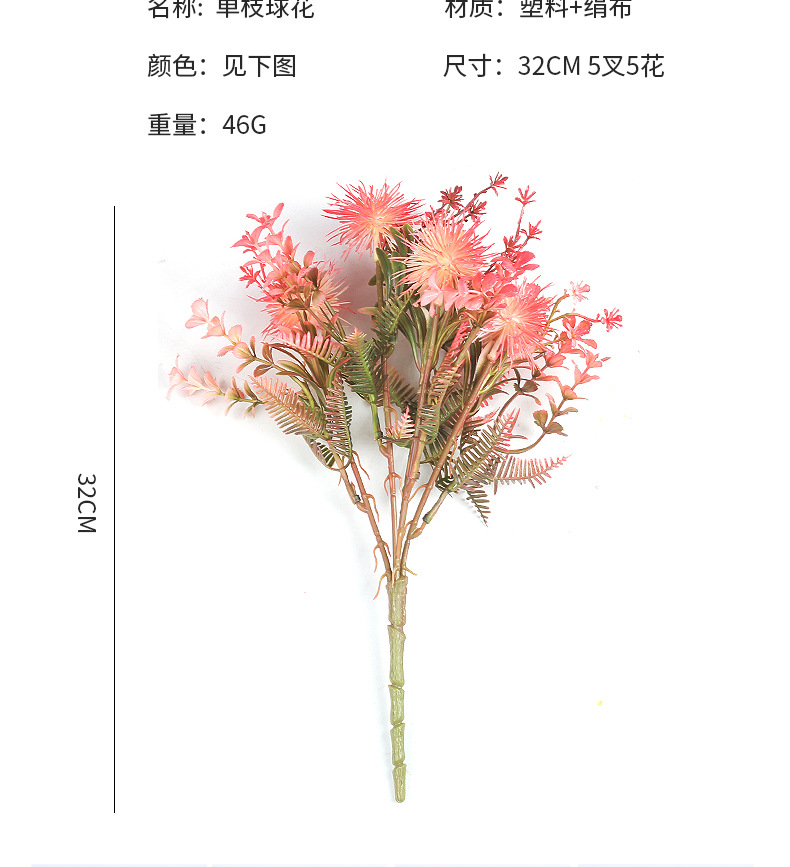 새로운 시뮬레이션 공 꽃 5 머리 공 홈 바탕 화면 장식 플라스틱 꽃 녹색 식물 결혼식 가짜 사진 소품스토어 가기