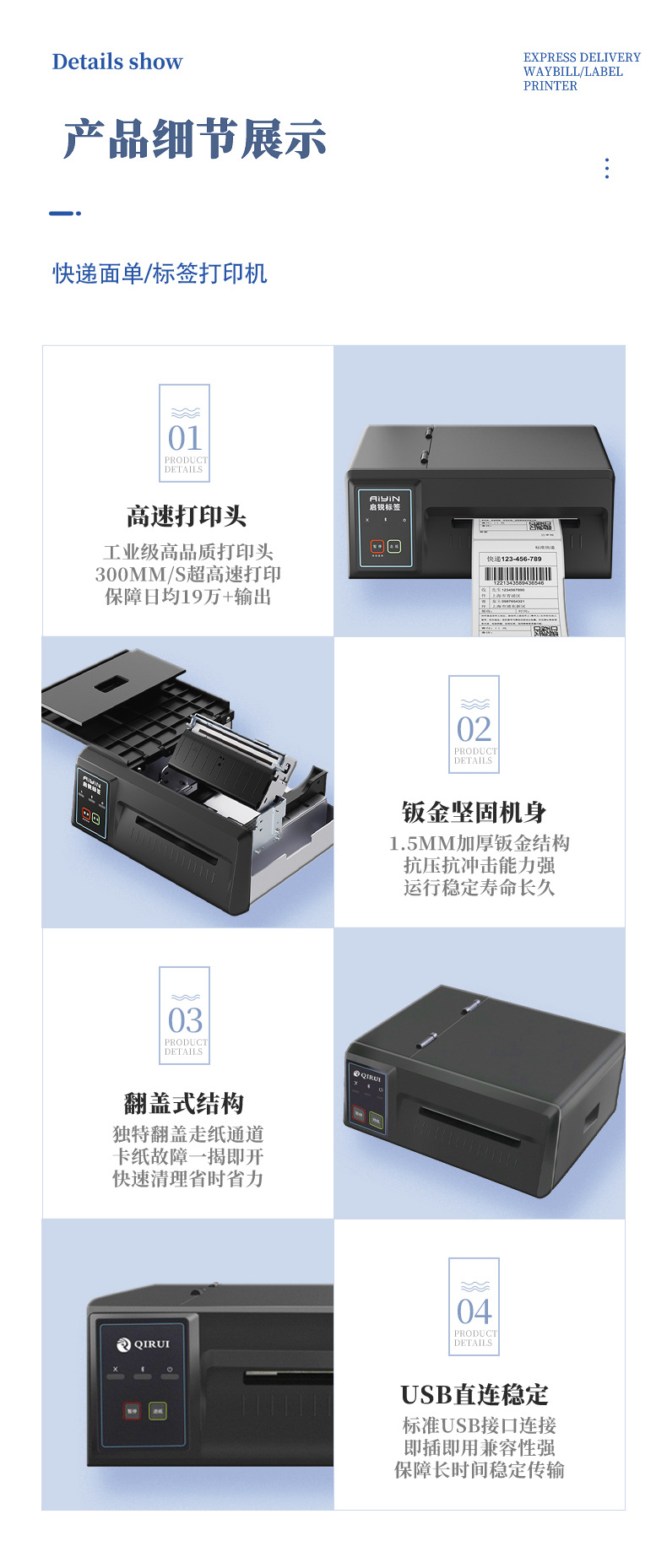 Qirui QR310S 산업용 등급 프린터 고속 전자 영수증 단일 기기 바코드 바코드 익스프레스 사무실스토어 가기