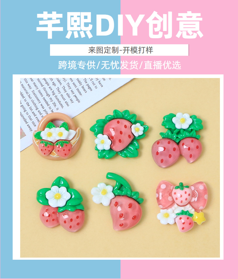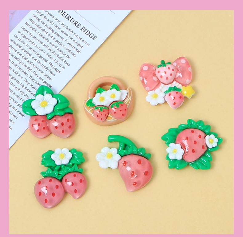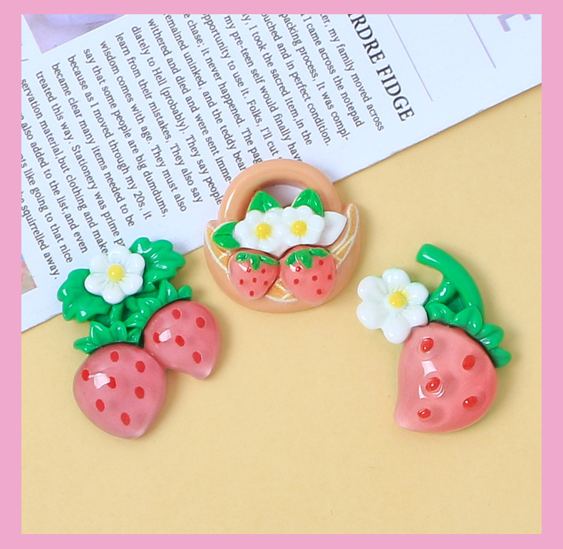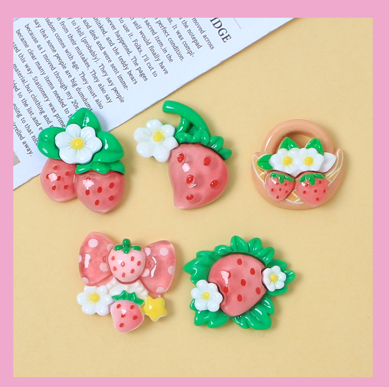 얼음 통해 딸기 만화 크림 접착제 액세서리 창조적 인 신발 버클 소재 수지 액세서리 diy 보석 머리핀 도매