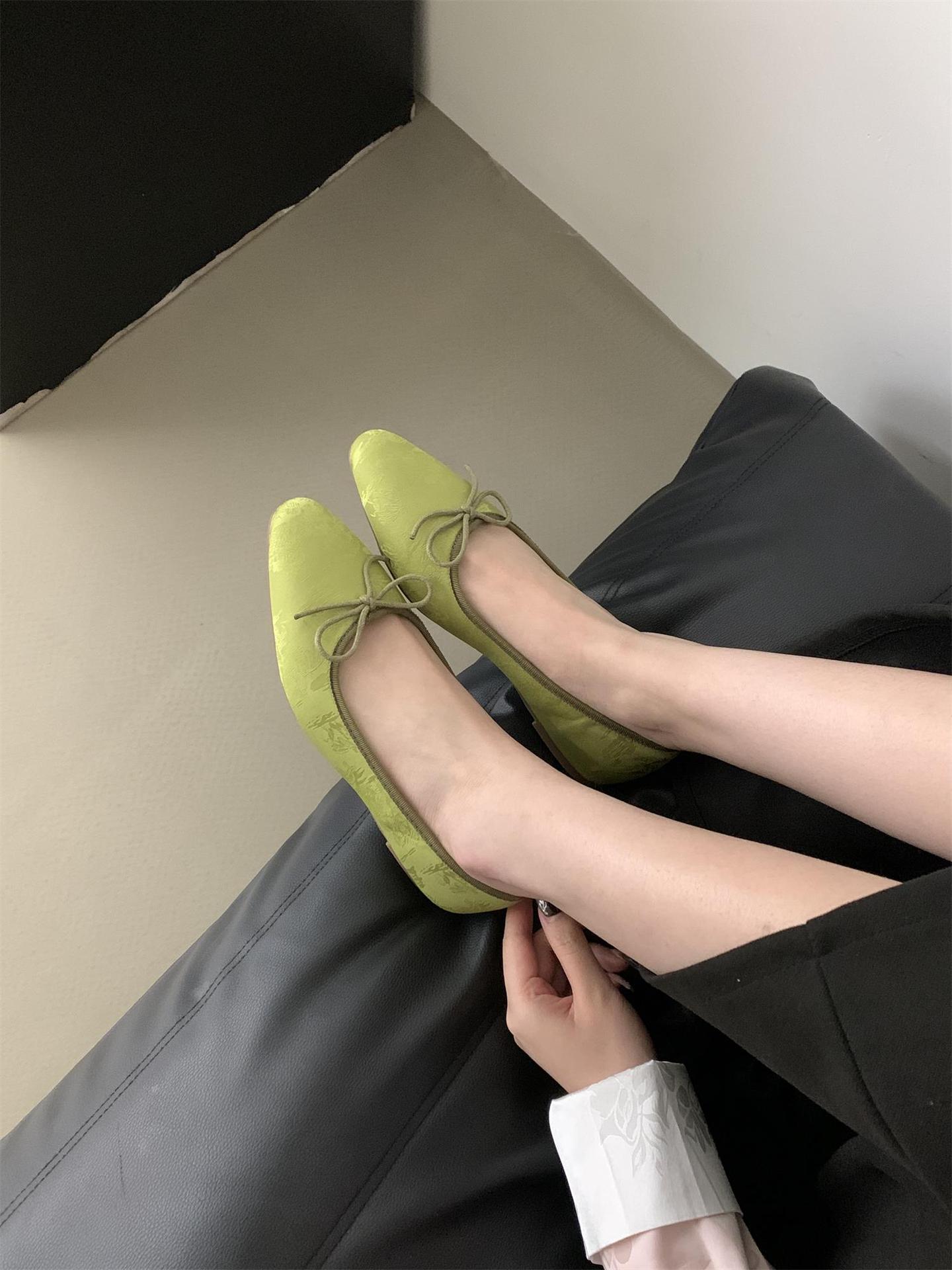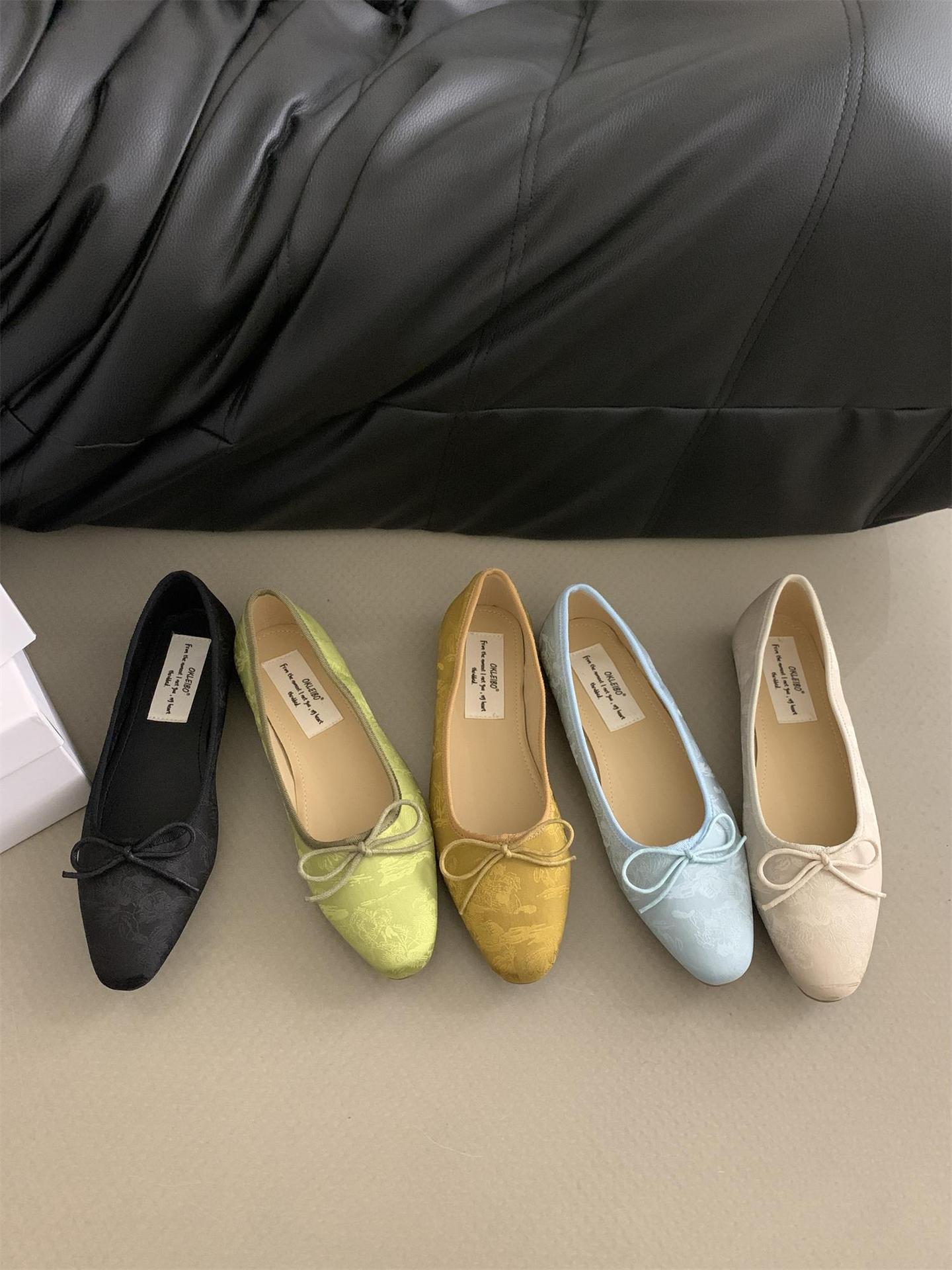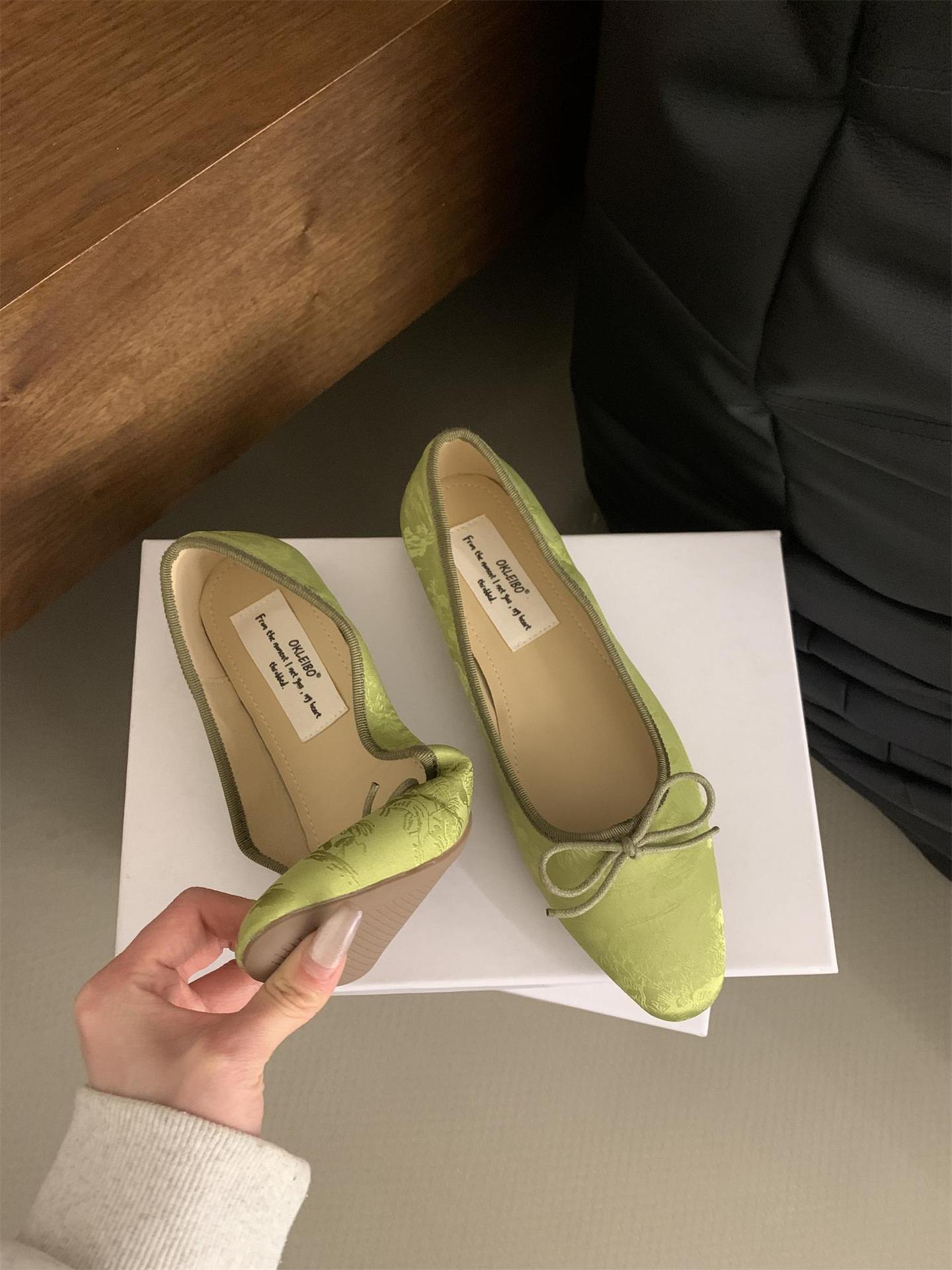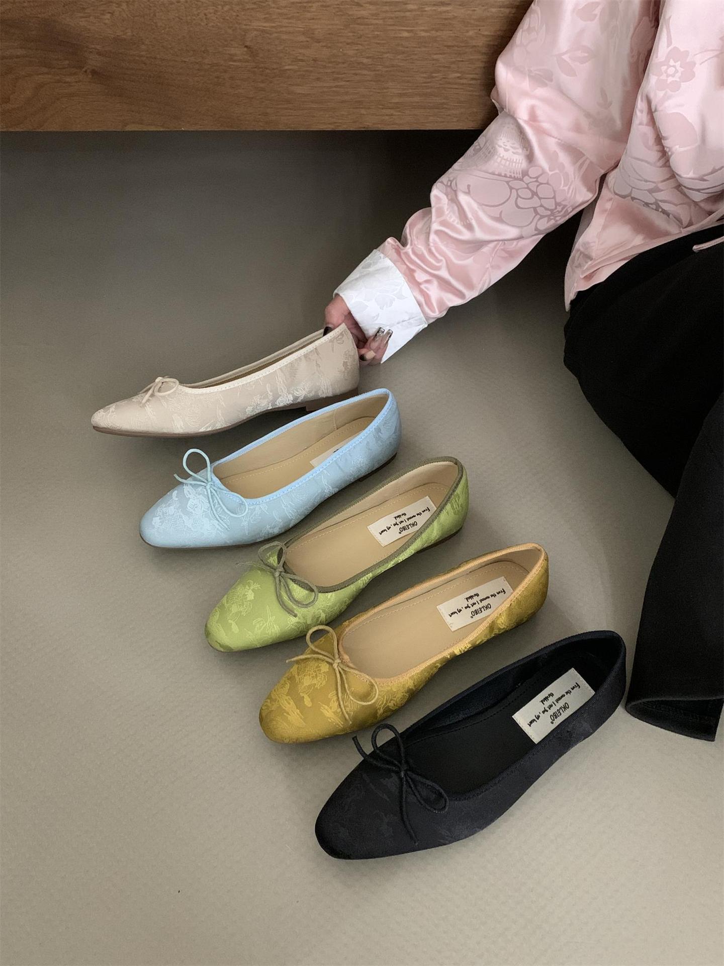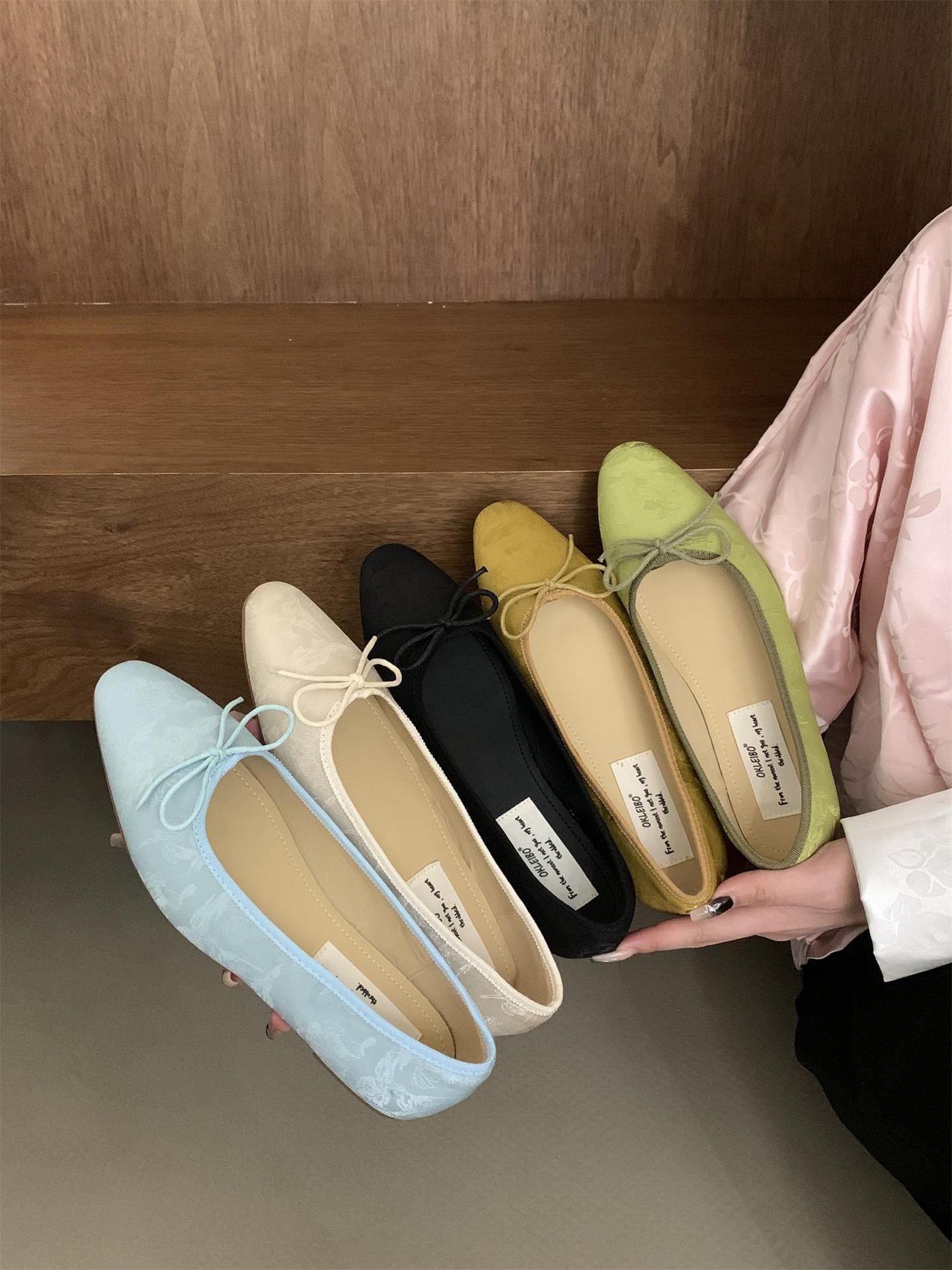 빈티지 우아한 새로운 중국 스타일 싱글 레이어 신발 여성의 2024 새로운 도착 활 새틴 자카드 소프트 단독 펌프
