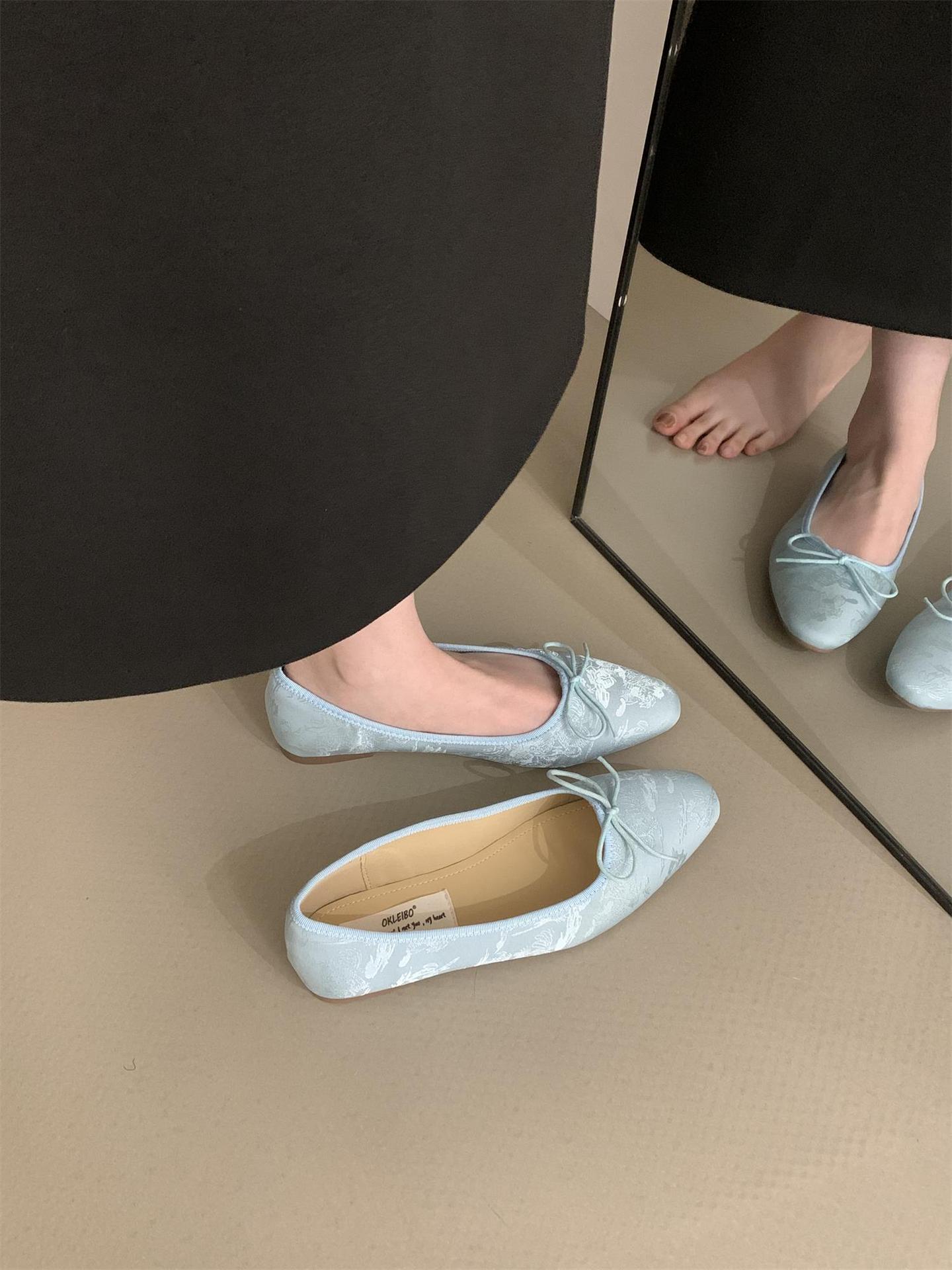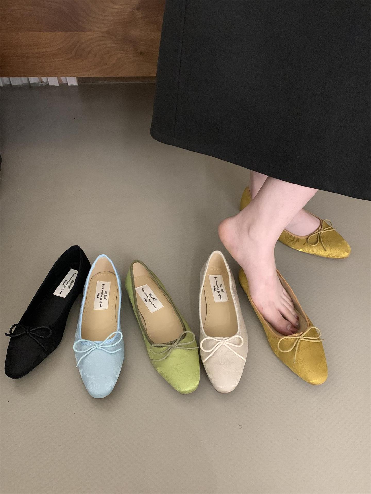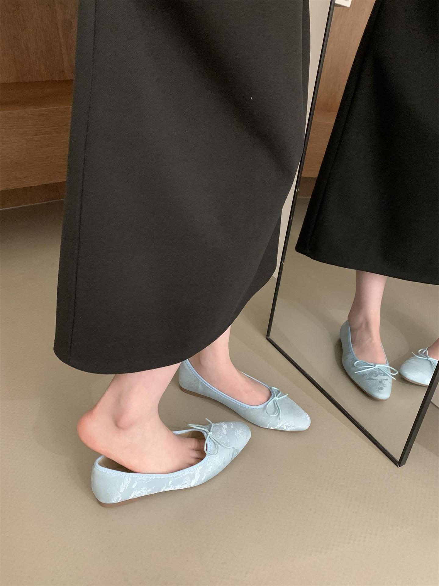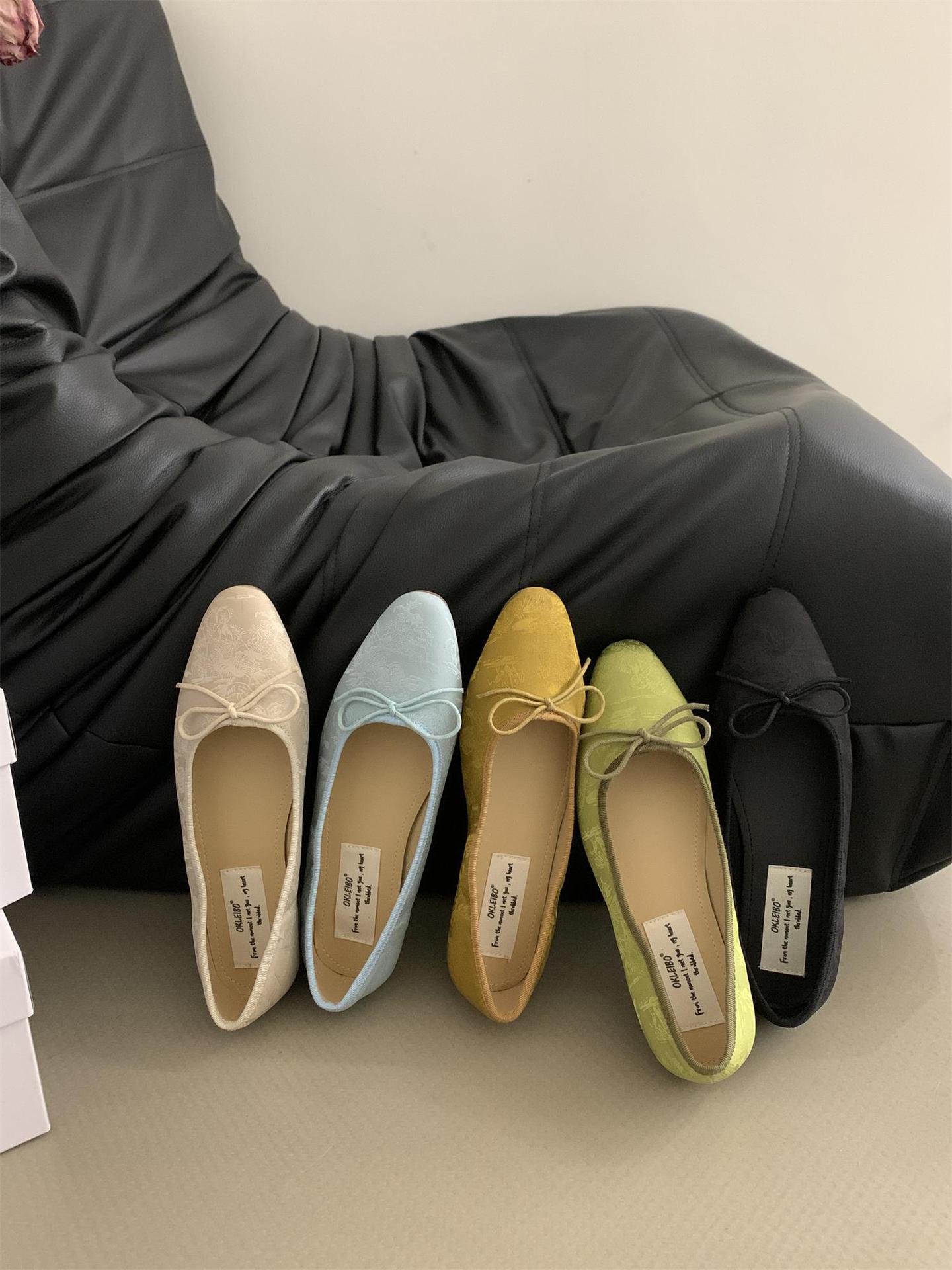빈티지 우아한 새로운 중국 스타일 싱글 레이어 신발 여성의 2024 새로운 도착 활 새틴 자카드 소프트 단독 펌프