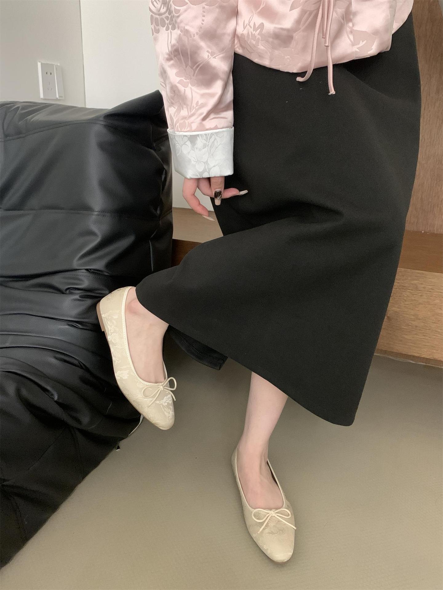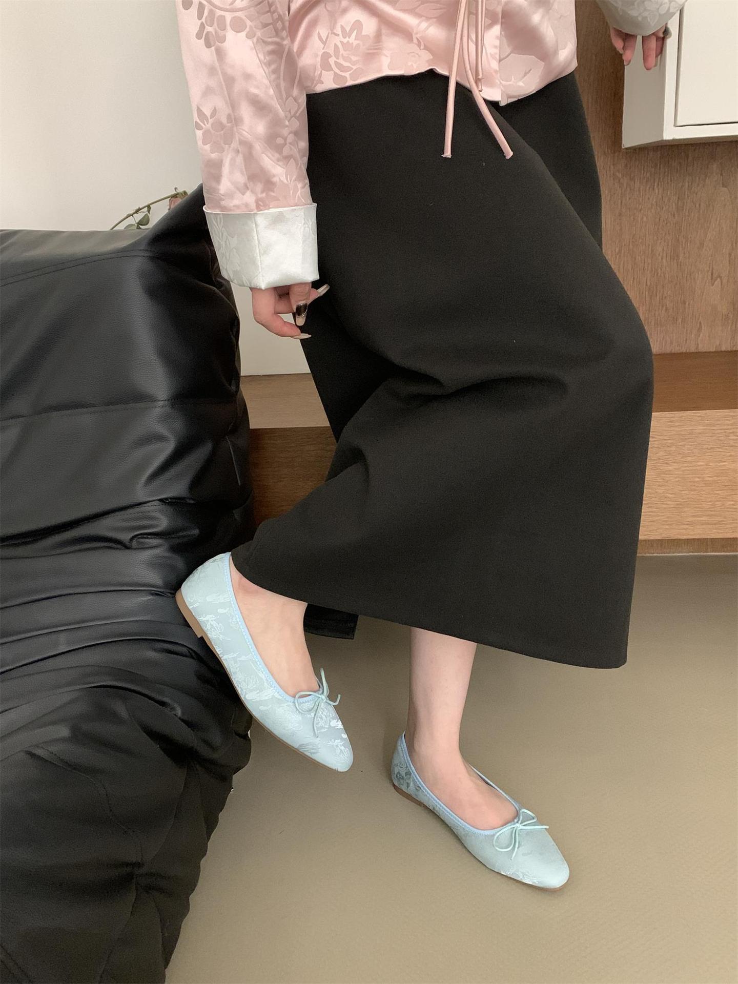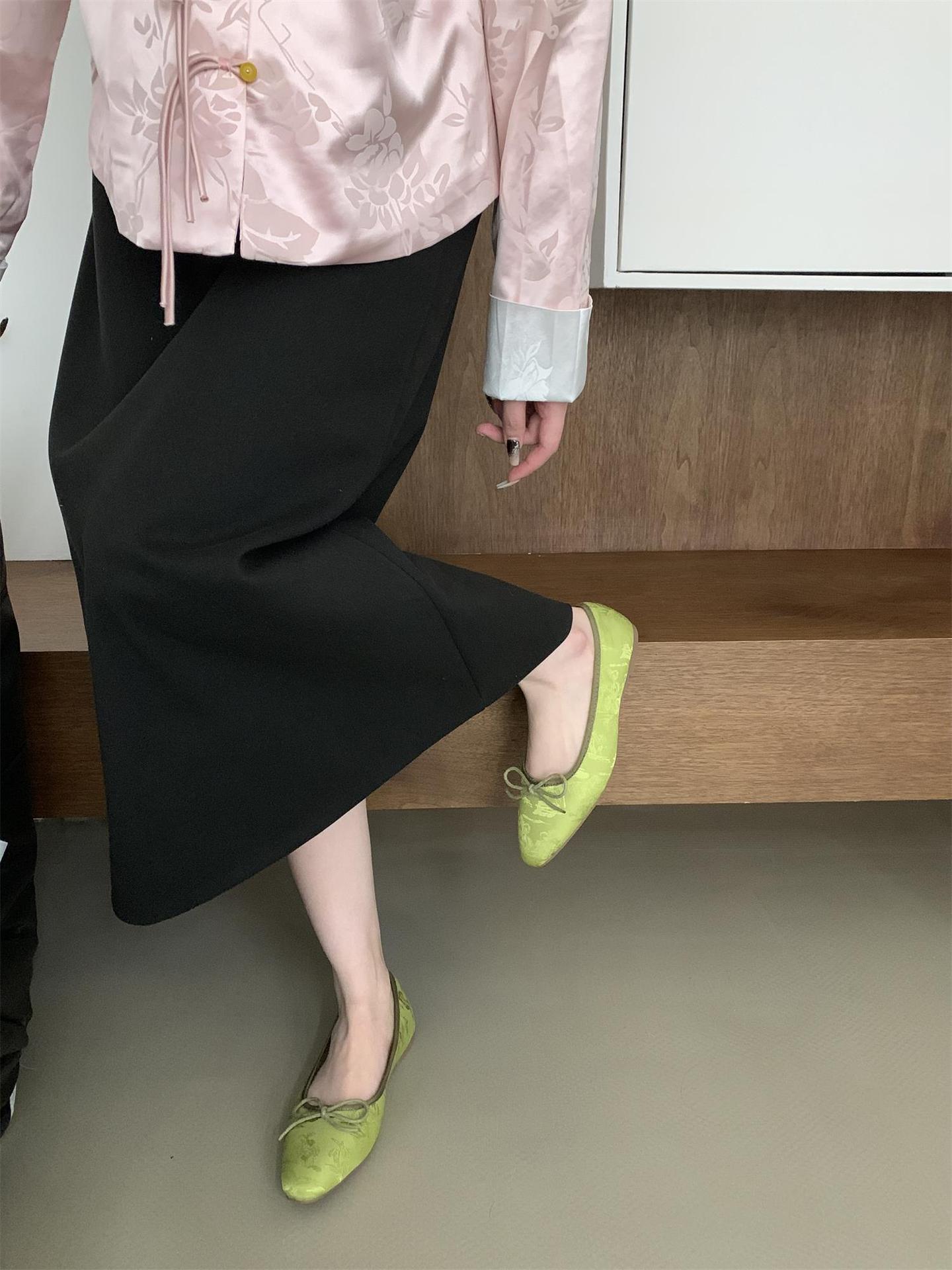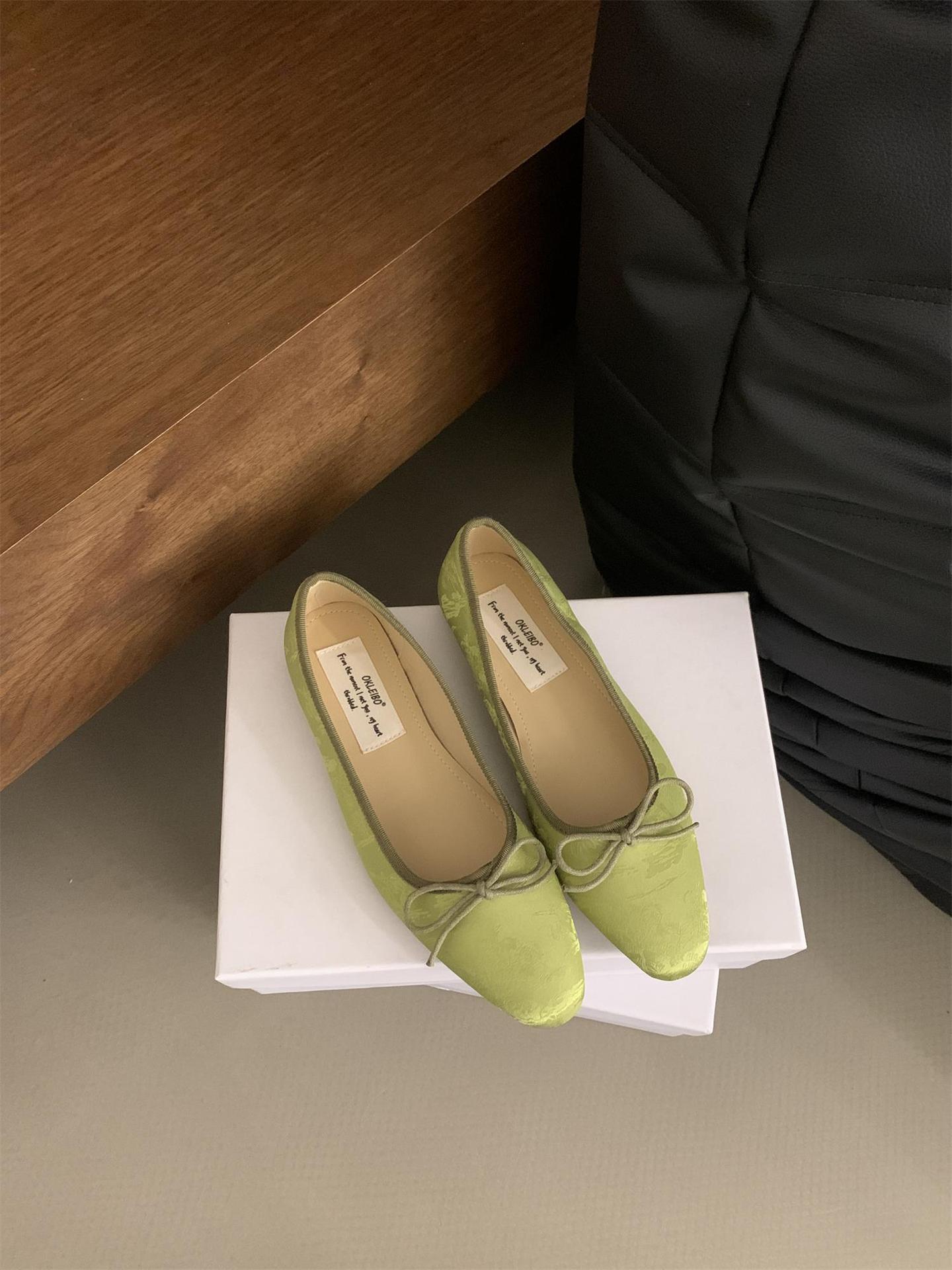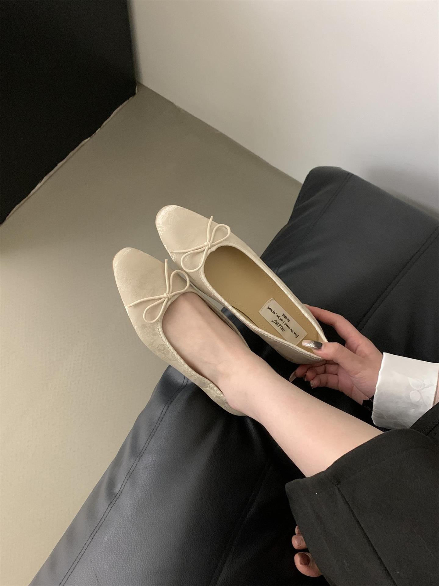 빈티지 우아한 새로운 중국 스타일 싱글 레이어 신발 여성의 2024 새로운 도착 활 새틴 자카드 소프트 단독 펌프