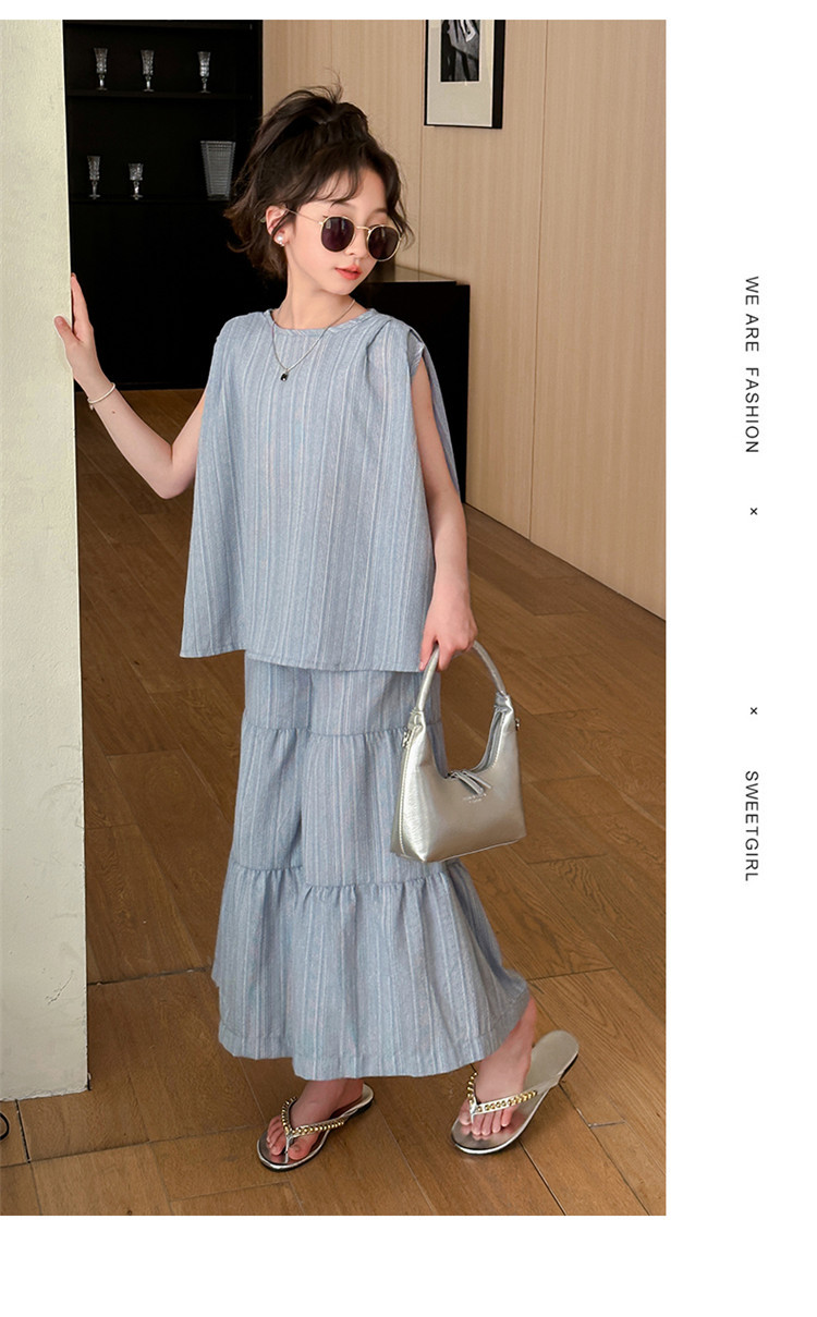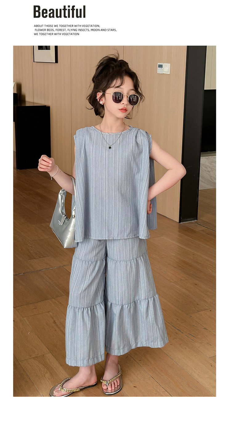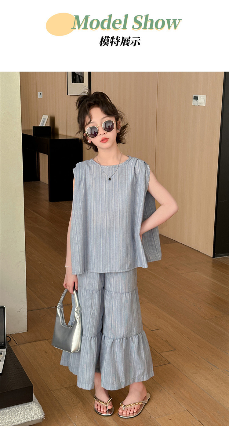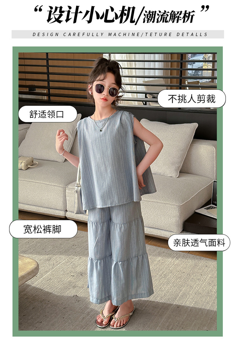 소녀 여름 세트 2024 새로운 어린이 인터넷 인기 유행 민소매 조끼 와이드 레그 바지 투피스 대외 무역 아동복스토어 가기