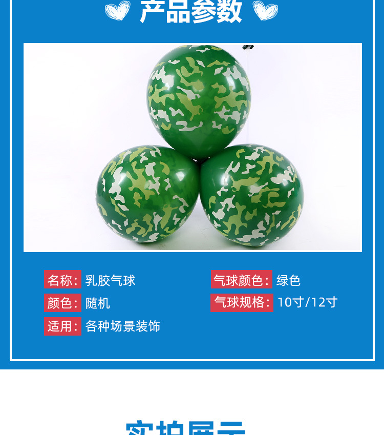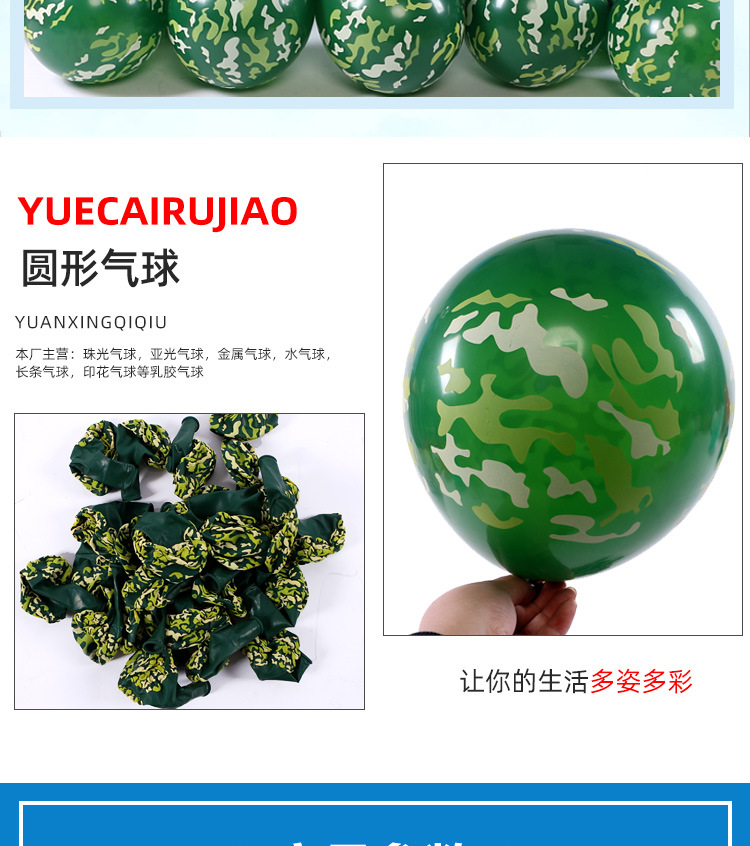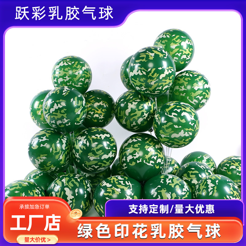 녹색 위장 라텍스 풍선 군사 훈련 테마 생일 파티 장면 레이아웃 풍선 녹색 풍선 5 면 인쇄
