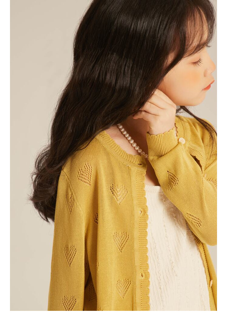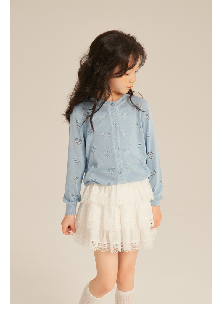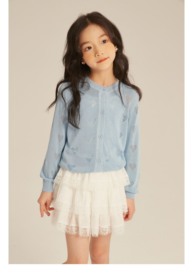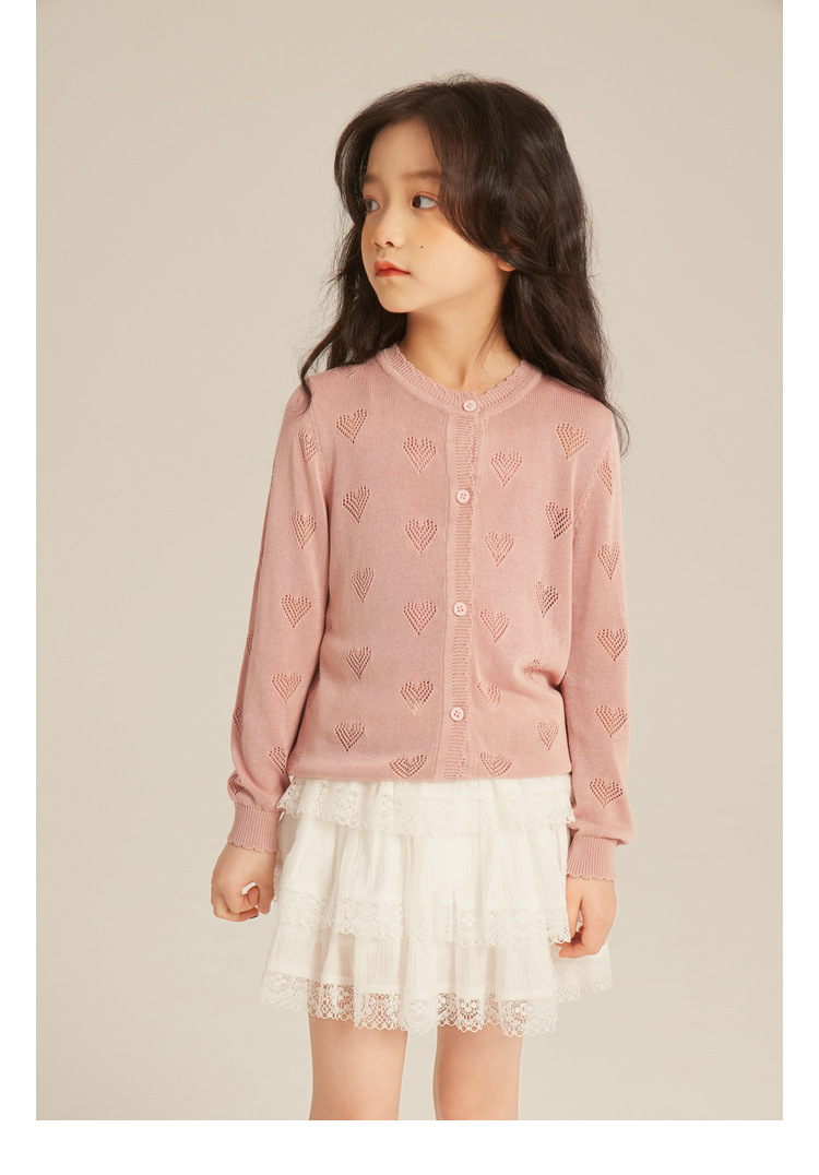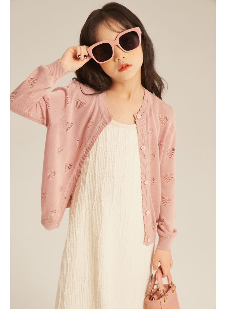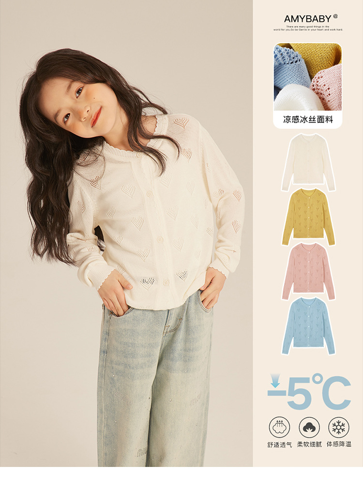 Amybaby Girl's Coat 2024 새로운 어린이 여름 얇은 니트 카디건 세련된 올 매치 탑