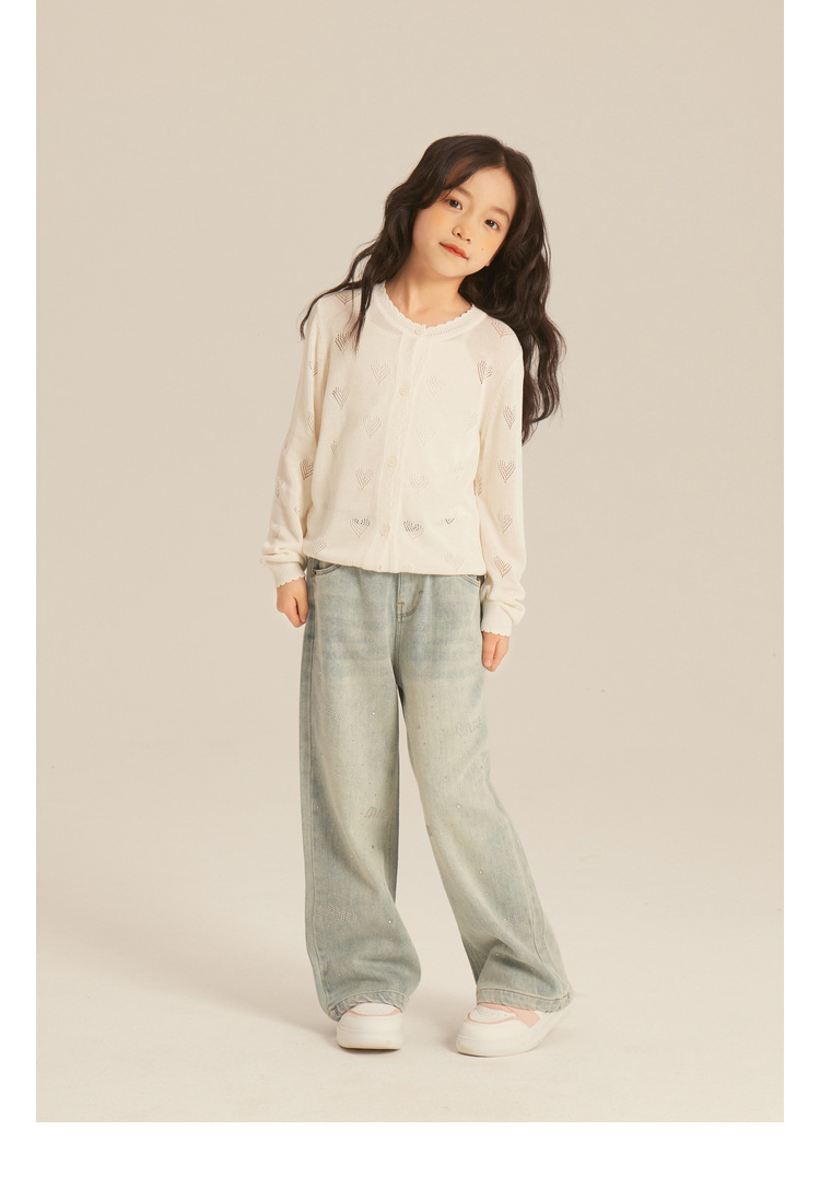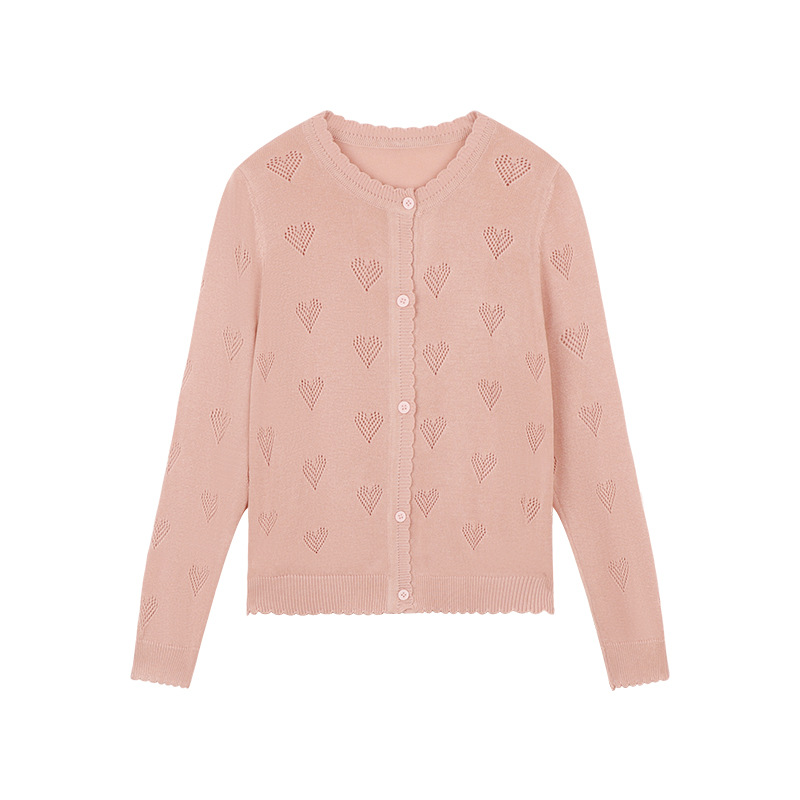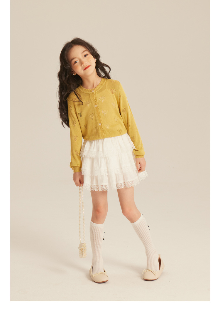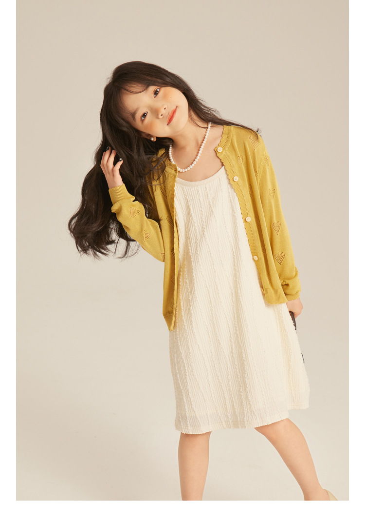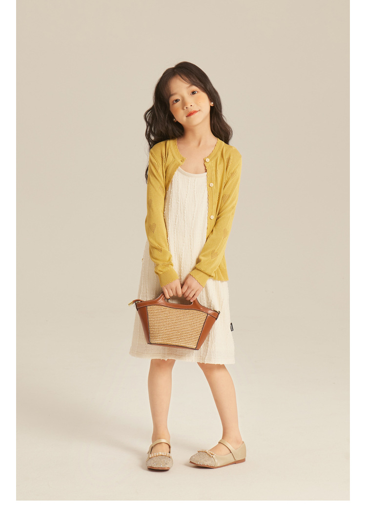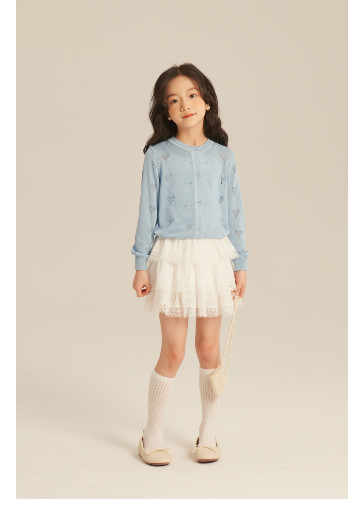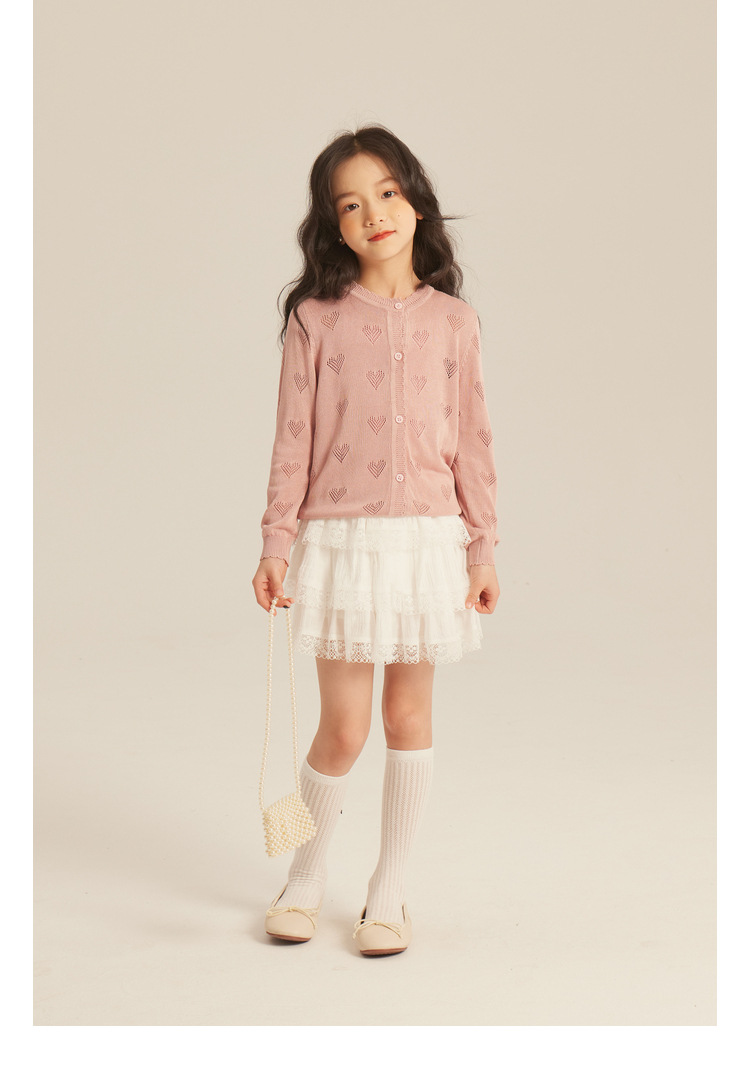 Amybaby Girl's Coat 2024 새로운 어린이 여름 얇은 니트 카디건 세련된 올 매치 탑