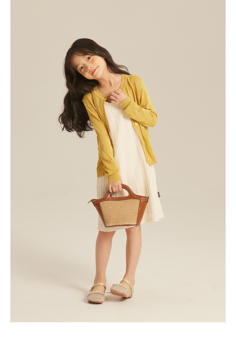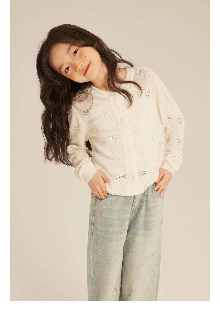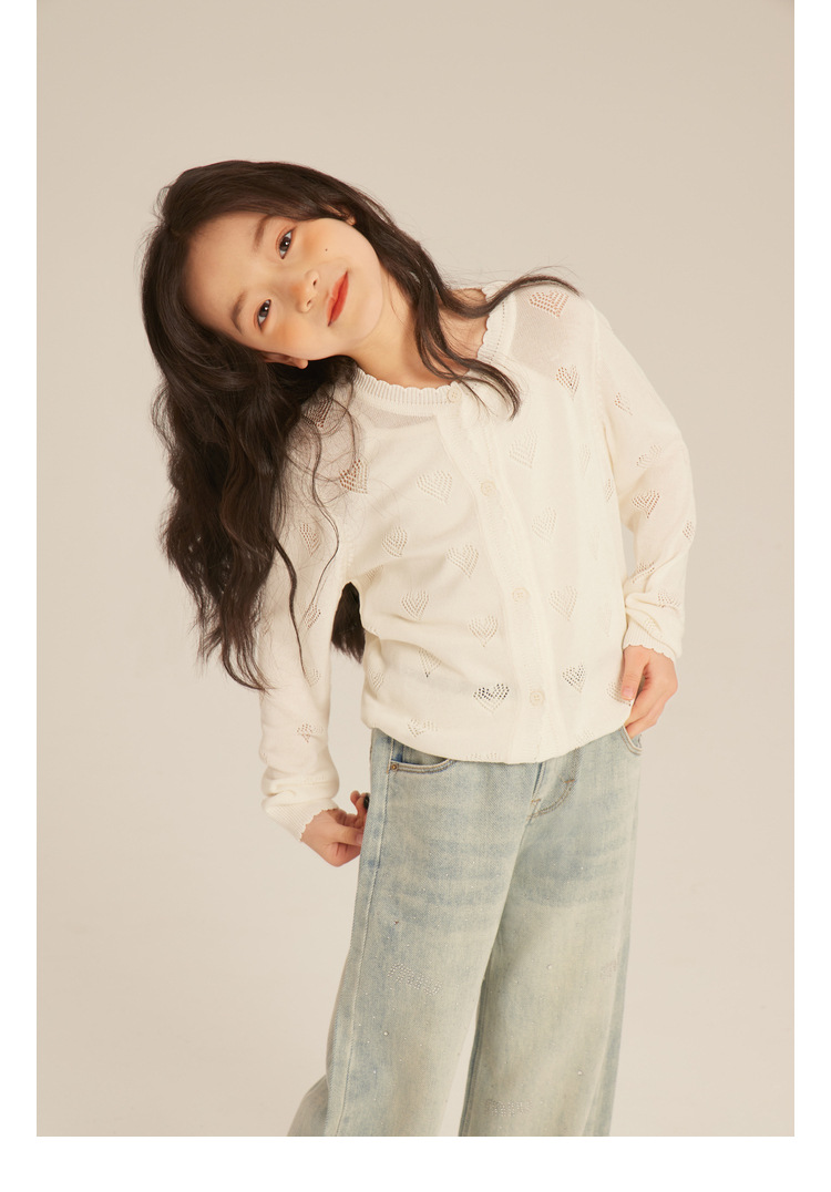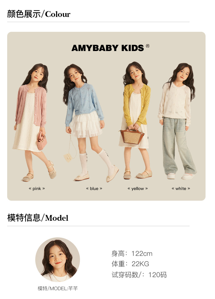 Amybaby Girl's Coat 2024 새로운 어린이 여름 얇은 니트 카디건 세련된 올 매치 탑스토어 가기