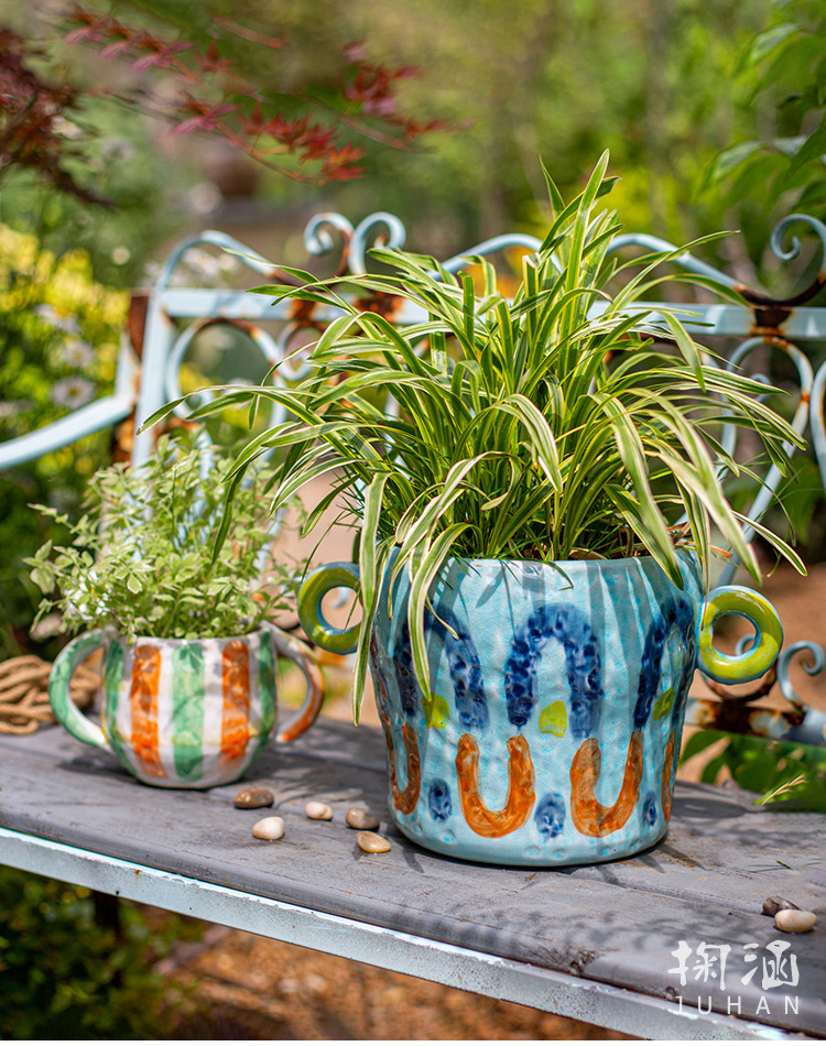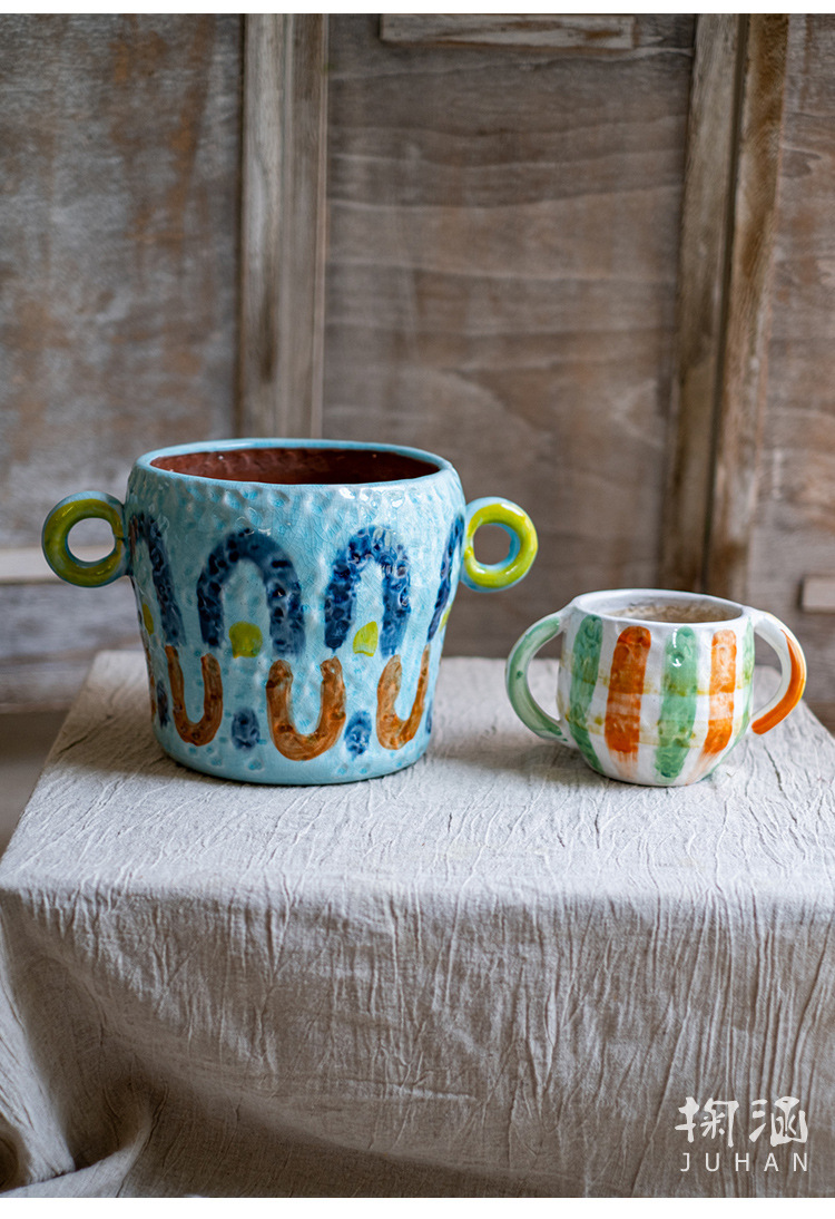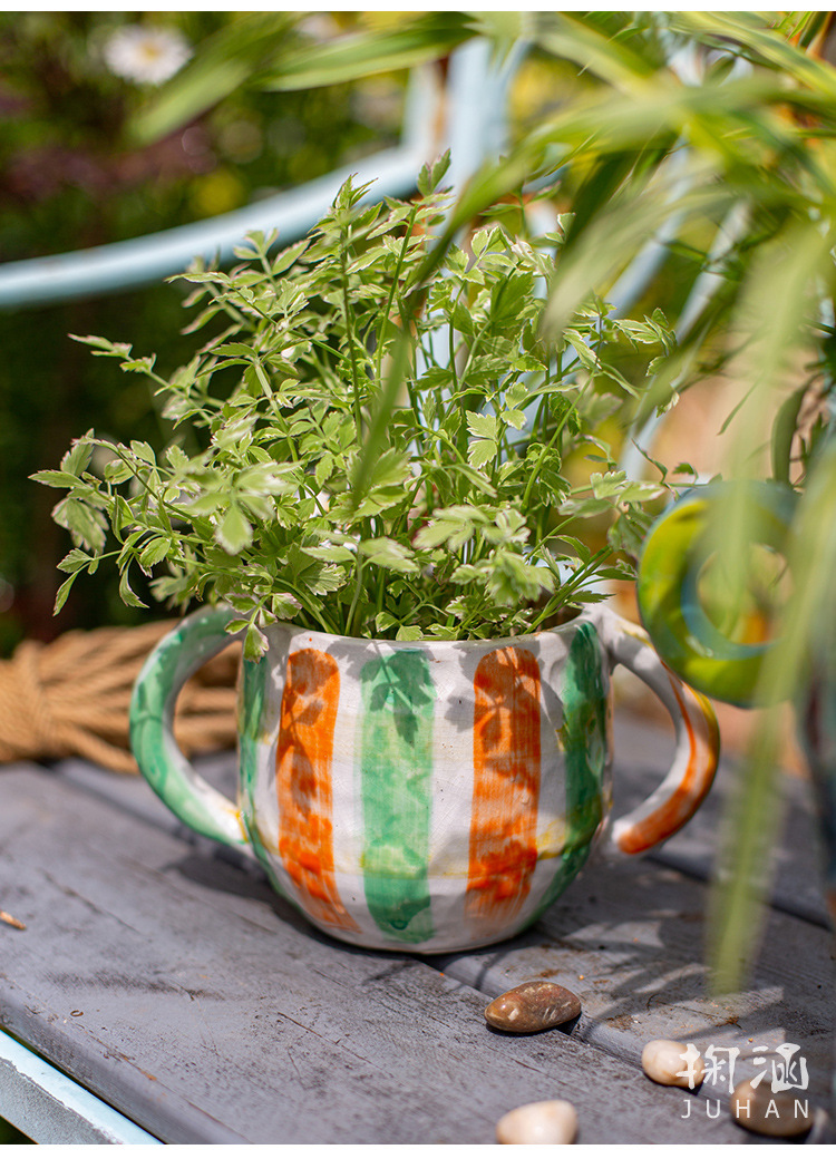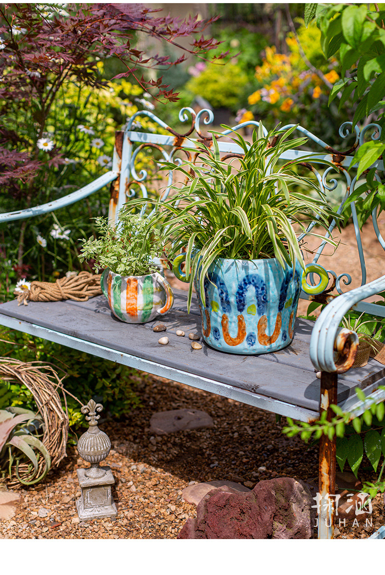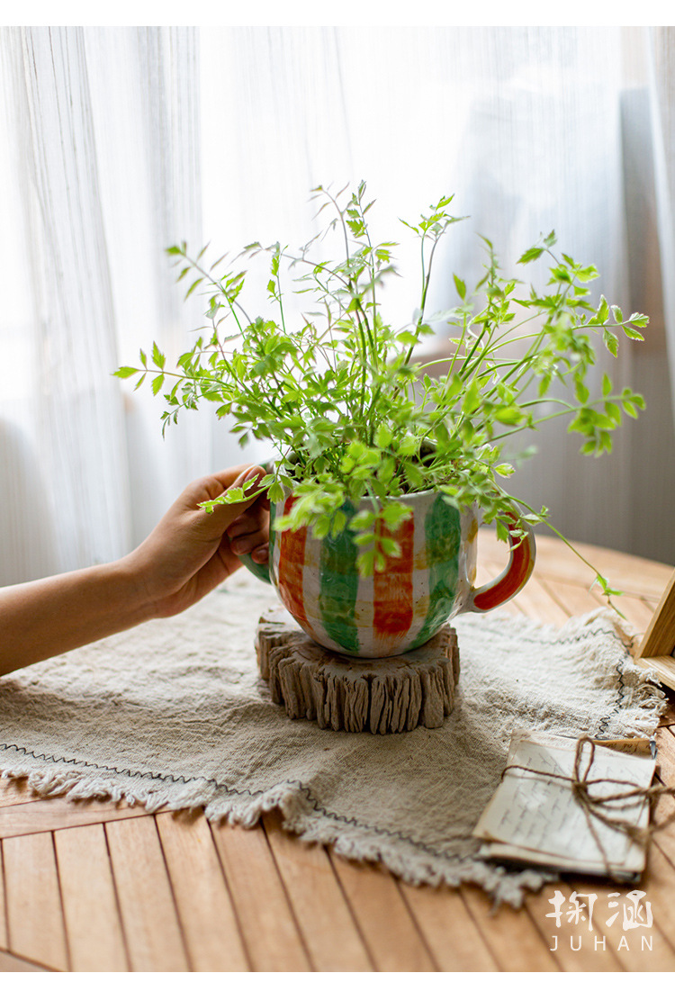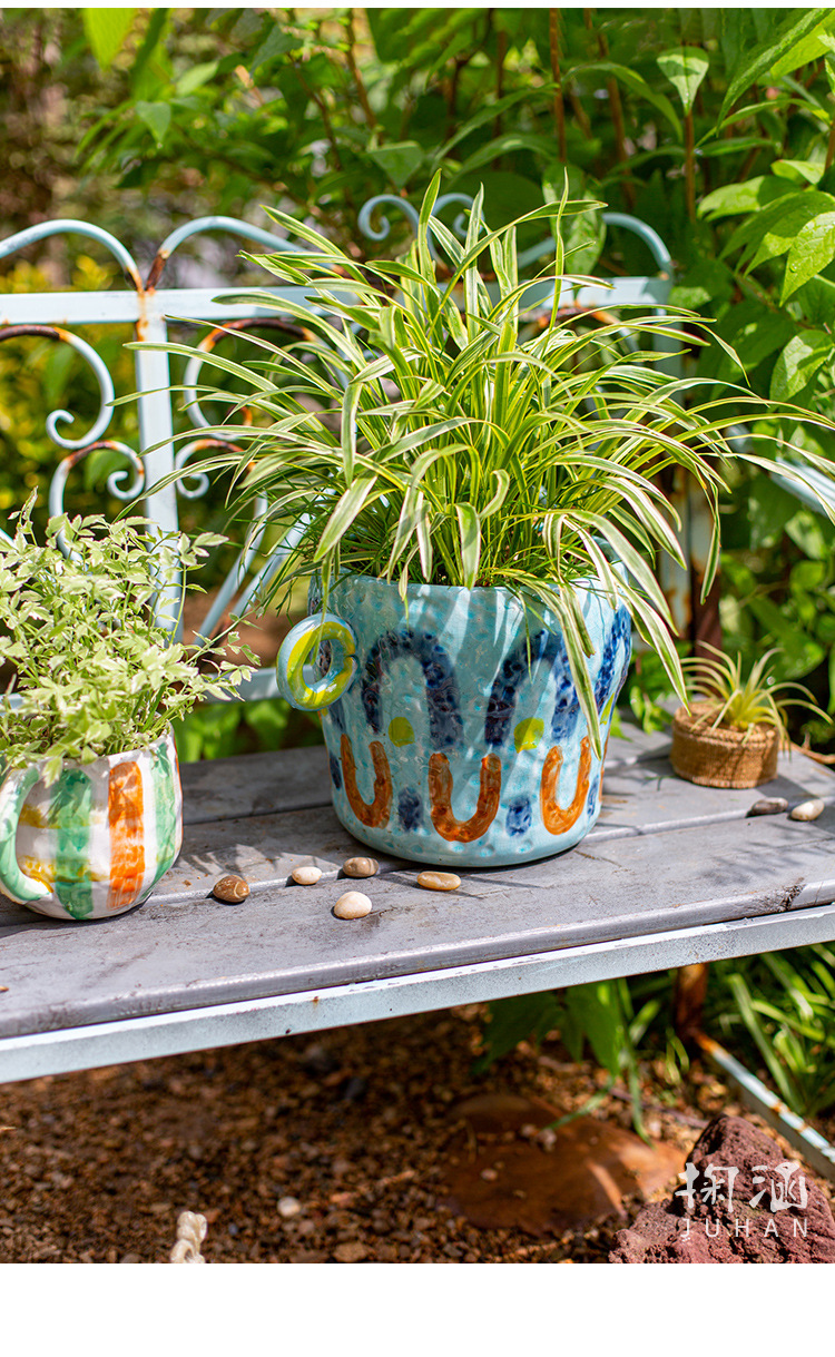 피카소 그린 꽃 냄비 레트로 붉은 도자기 다육 식물 예술 꽃 재미 귀여운 정원 일본 스타일 하이 엔드 감각스토어 가기