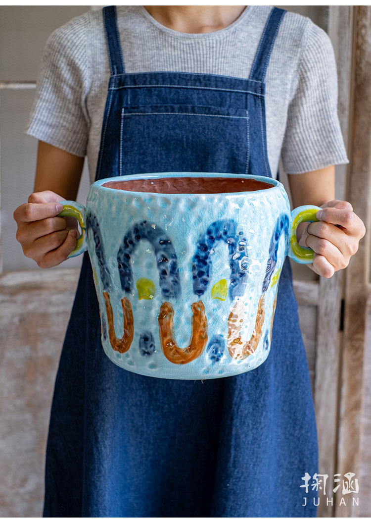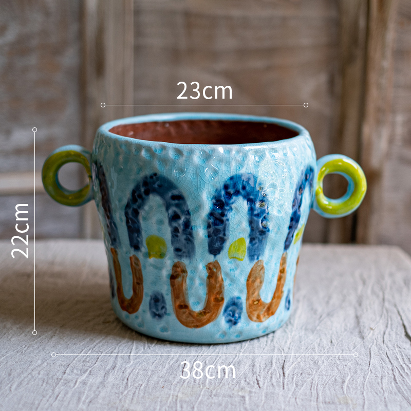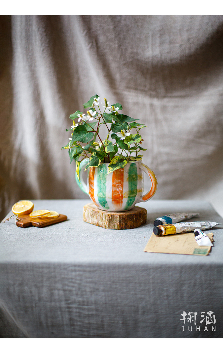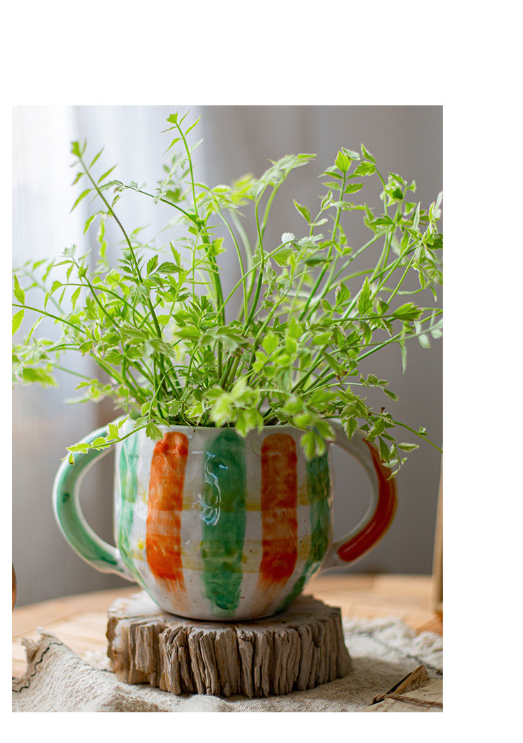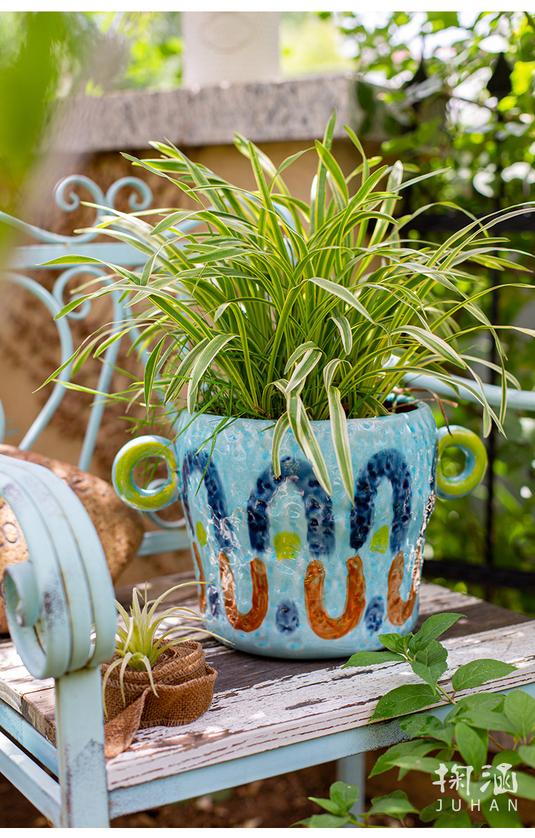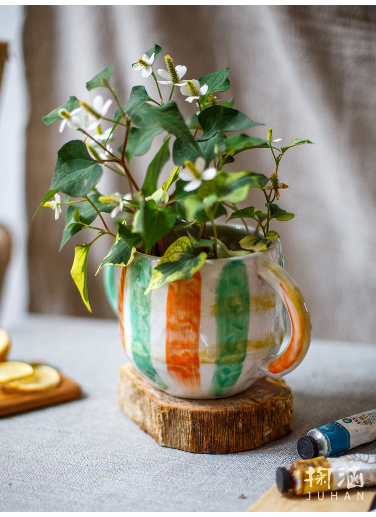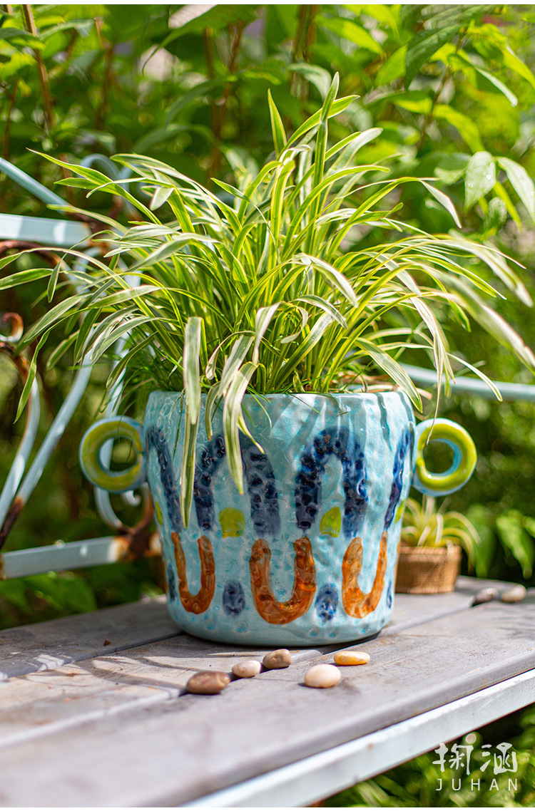 피카소 그린 꽃 냄비 레트로 붉은 도자기 다육 식물 예술 꽃 재미 귀여운 정원 일본 스타일 하이 엔드 감각스토어 가기