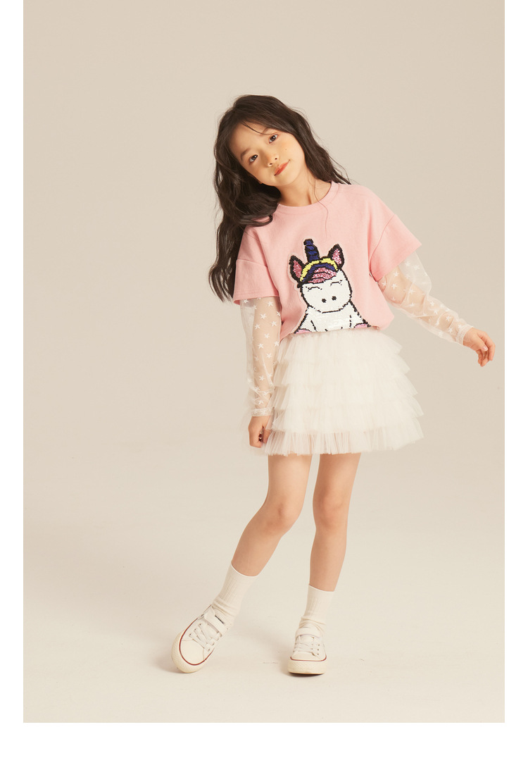 Amybaby 소녀의 치마 여름 새로운 한국 스타일 단색 케이크 스커트 메쉬 공주 스커트 미끄럼 방지 스커트