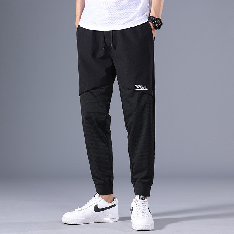 여름 초박형 회색 스포츠 바지 남성 캐주얼 바지 발가락 9 점 올 매치 메쉬 아이스 실크 바지 통기성스토어 가기