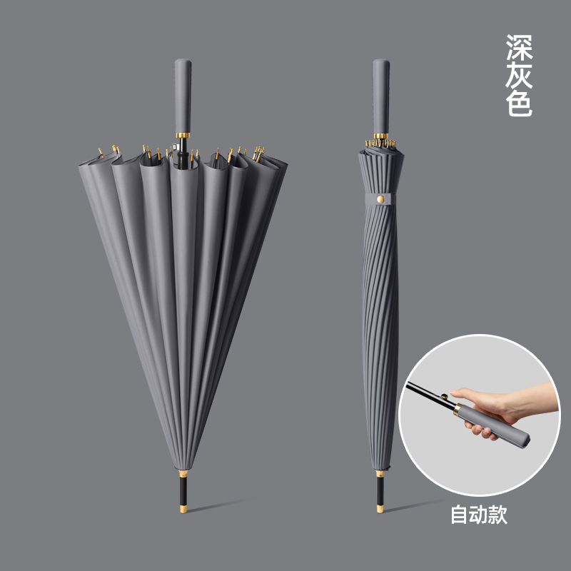 • 24 뼈 자동 [다크 그레이] 섬유 우산 뼈 피부 직선 핸들 우산 소매