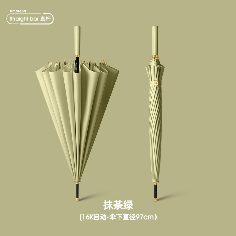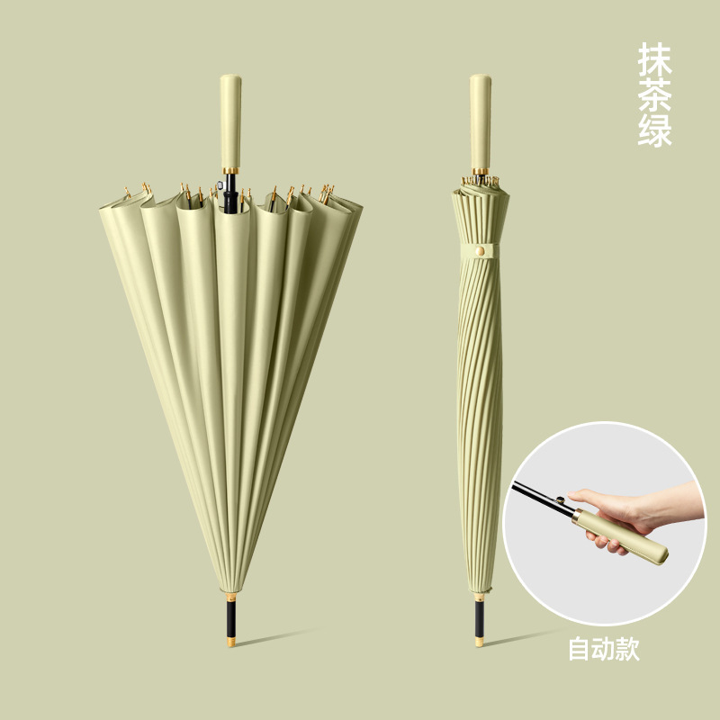 • 24 뼈 자동 [말차 녹색] 섬유 우산 뼈 피부 직선 핸들 우산 커버 보내기