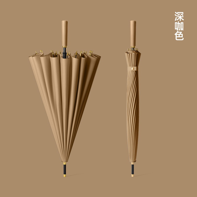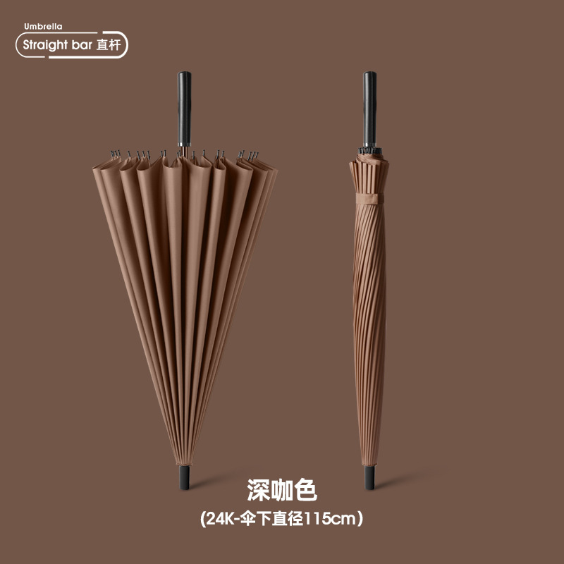 • 24 뼈 수동 [깊은 카레 색상] 섬유 우산 뼈 피부 직선 핸들 우산 커버 보내기